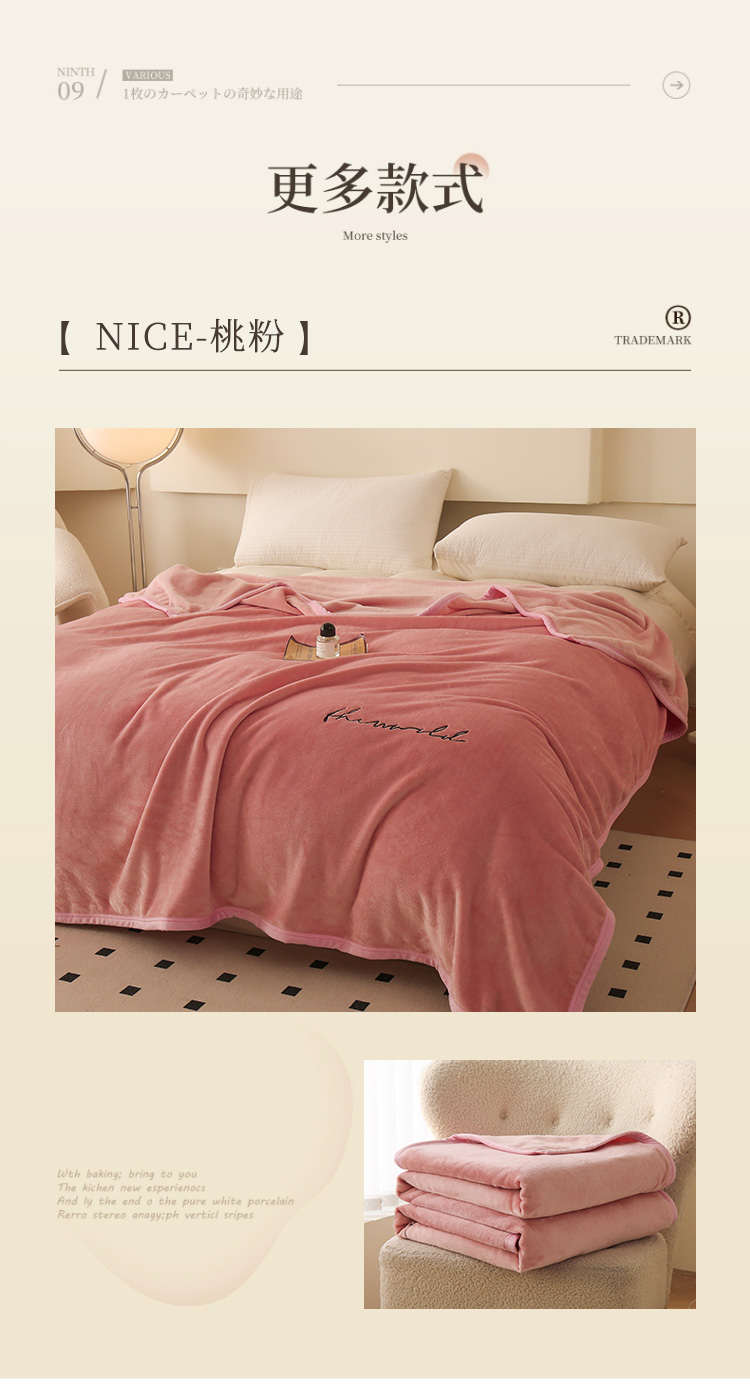 商品名称:合纵跨境工厂 2025新品绣花牛奶绒毛毯法莱绒雪花绒贝贝绒双面绒毛毯跨境外贸JIT一件代发TEMU亚马逊希音包过核价nice nice桃粉
