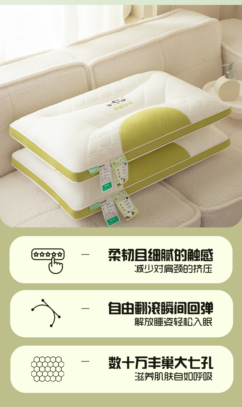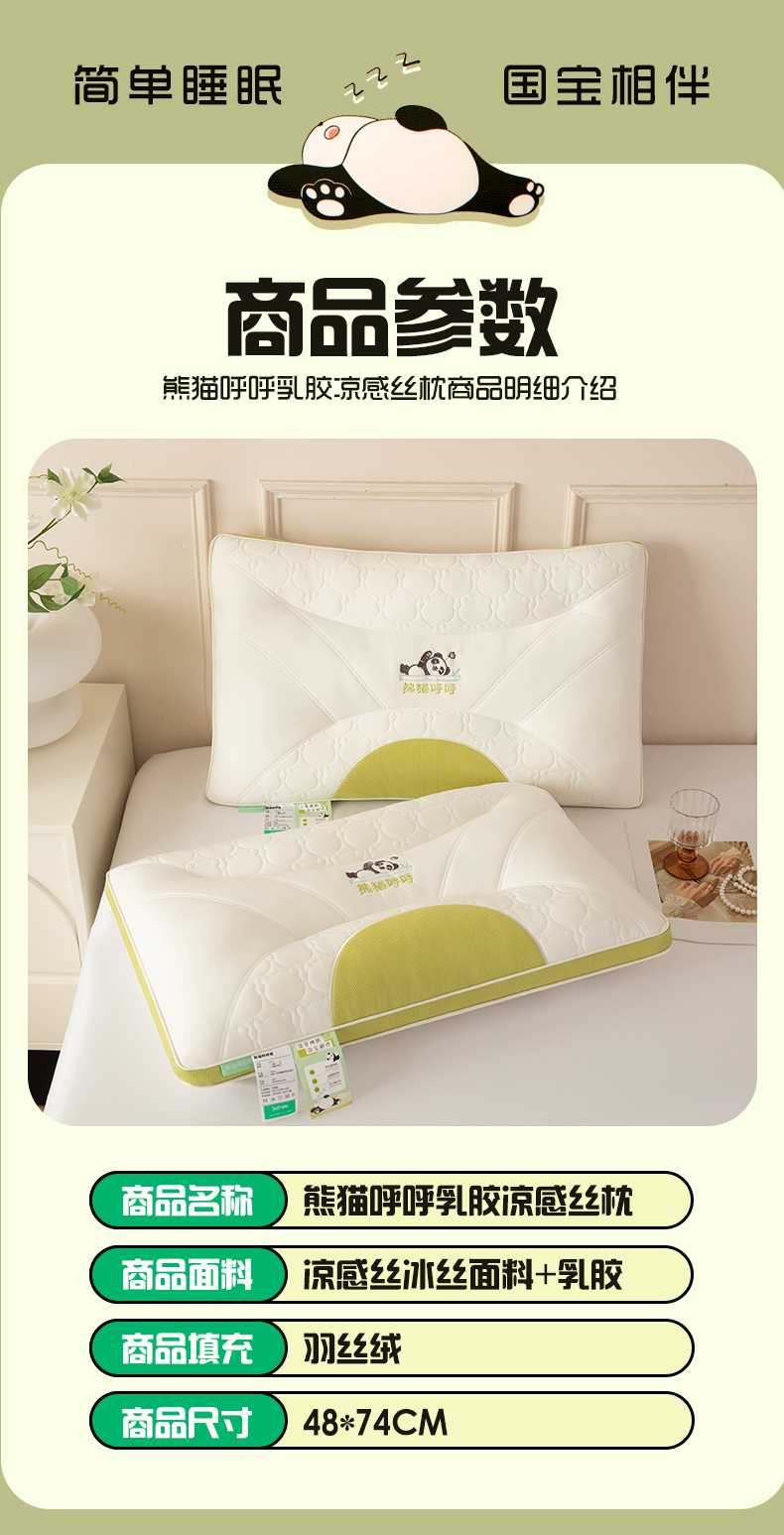 当前位置: 91家纺网 > 商品网购 > 枕头/枕芯/保健枕/颈椎枕 > 珍贝家纺 2024新款A类凉感丝熊猫呼呼枕芯护颈枕头 组合图仅供展示 48x74cm/只