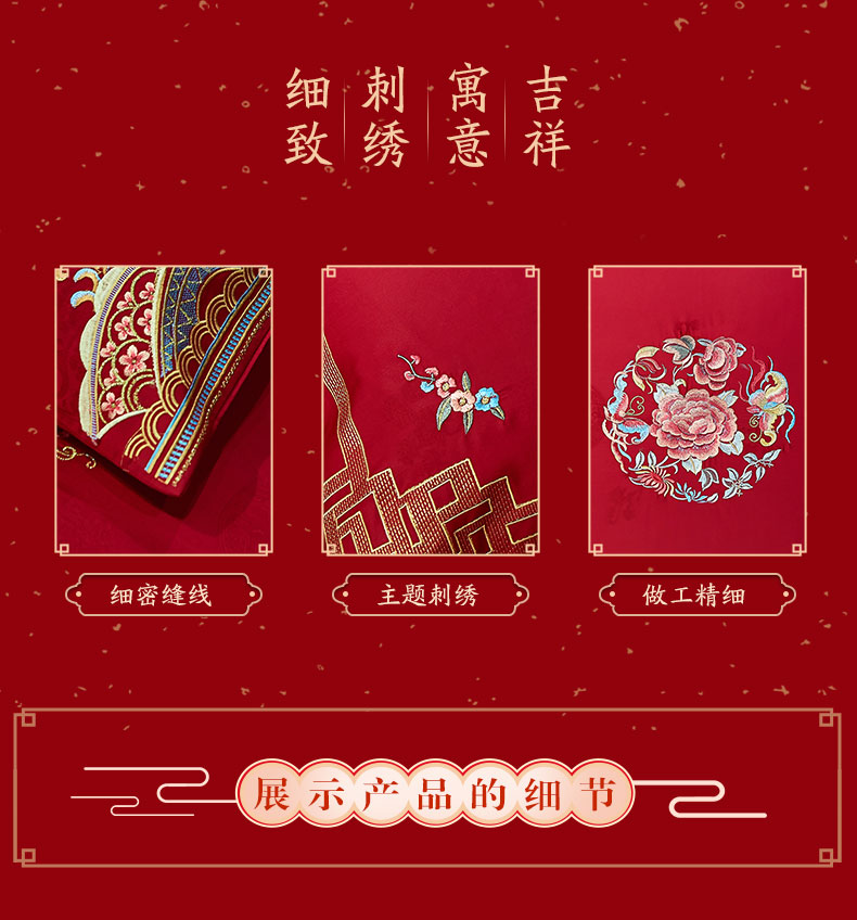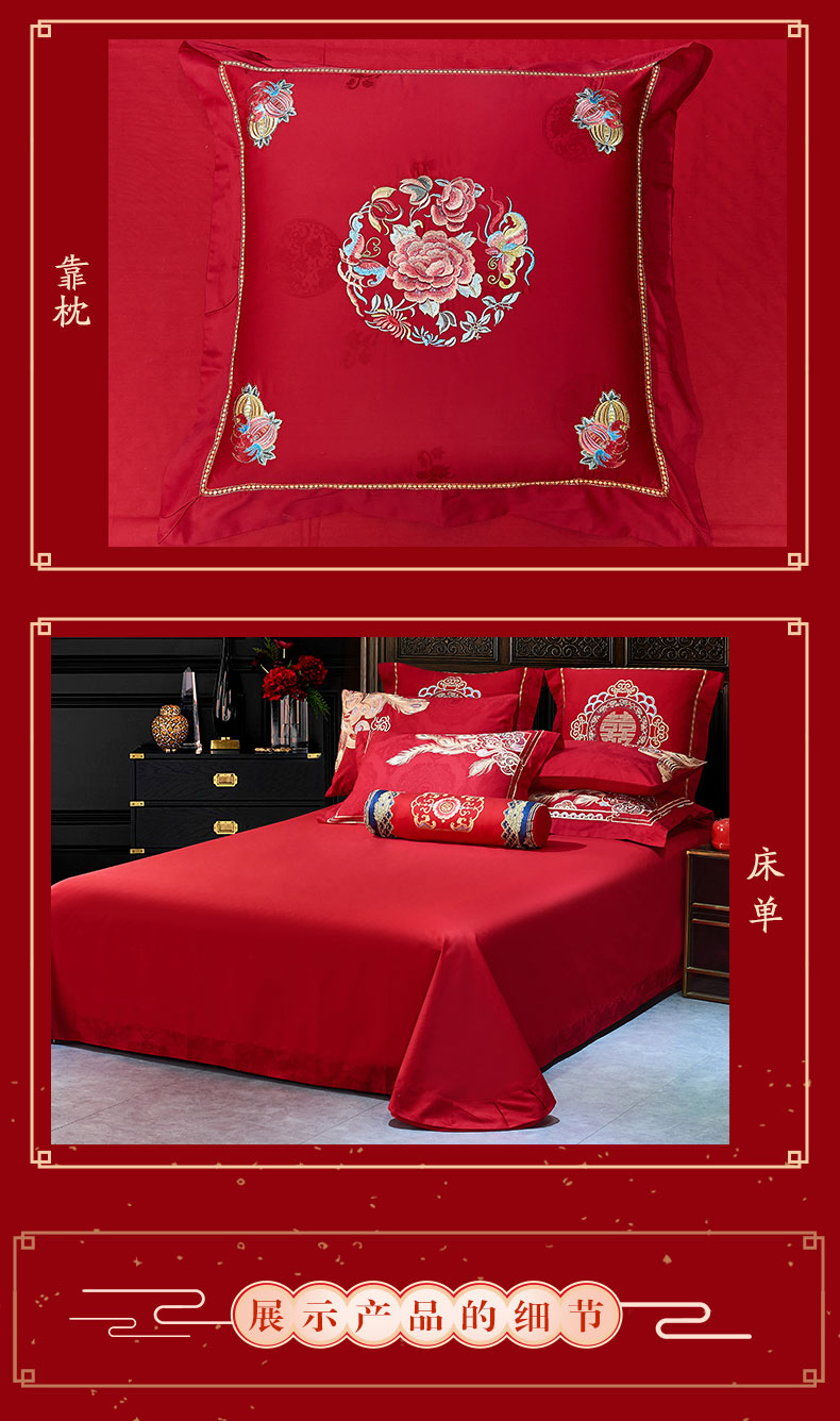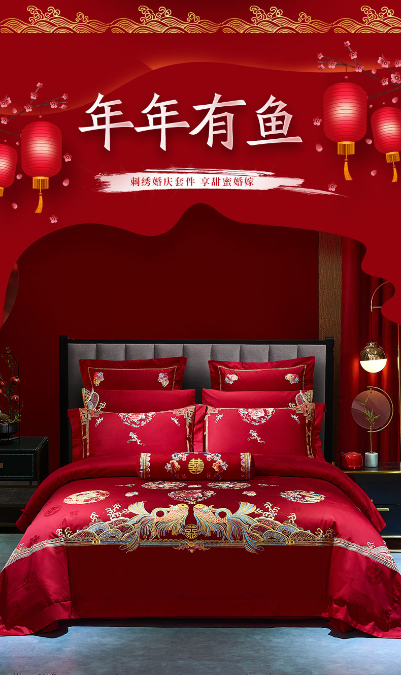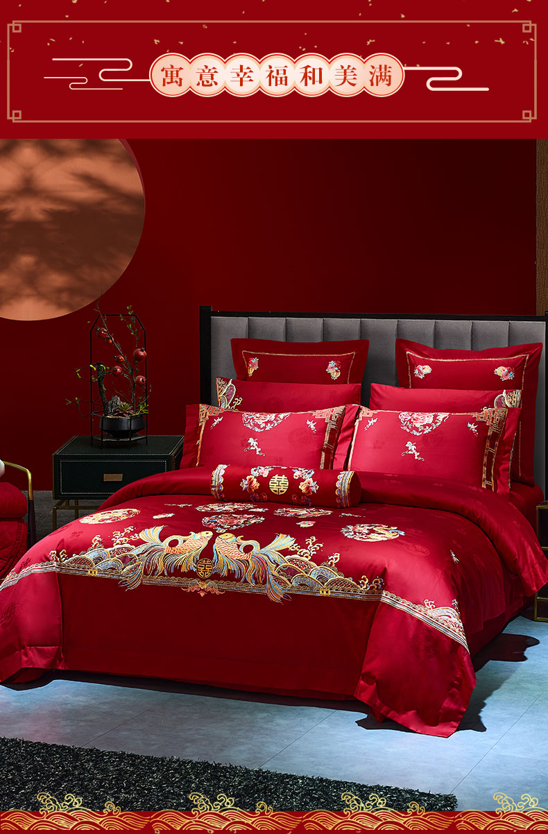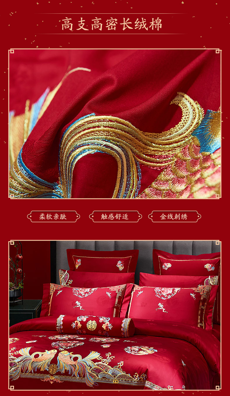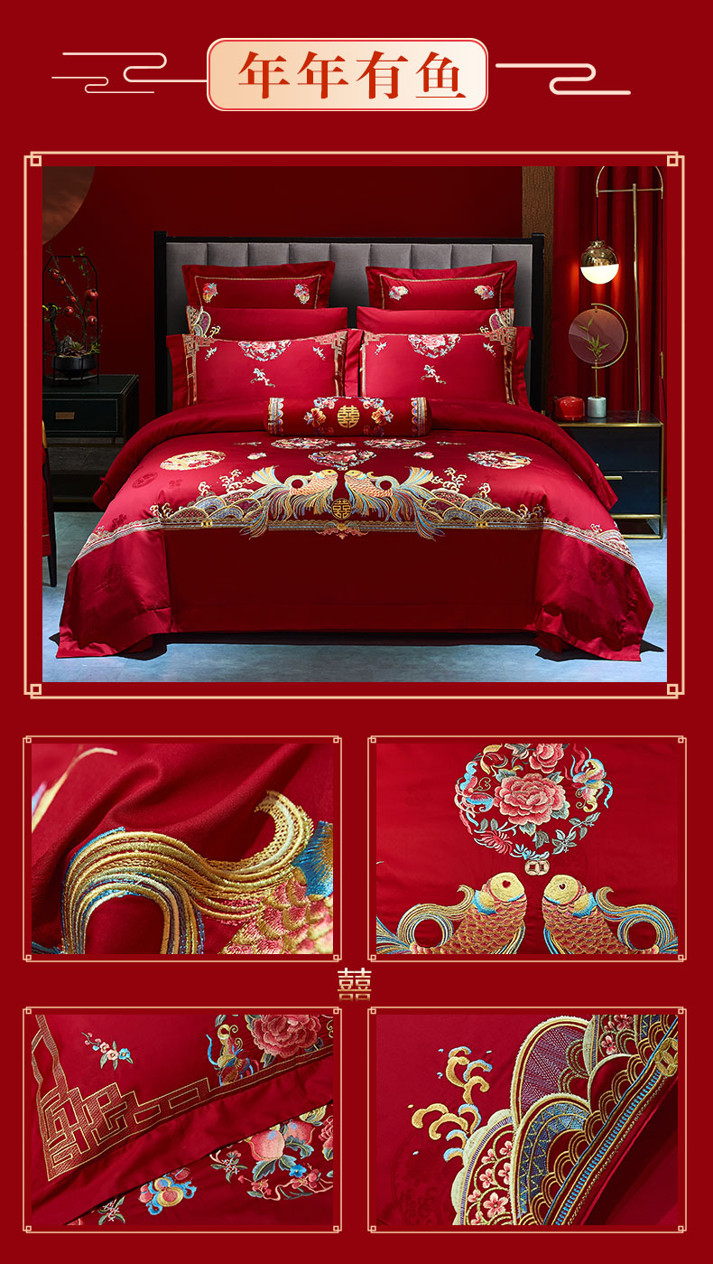 当前位置: 91家纺网 > 商品网购 > 床品套件 > 四件套 > 婚庆四件套 > 洽想家 2025新款120支双面新疆长绒棉刺绣工艺款婚庆四件套多件套 年年有鱼