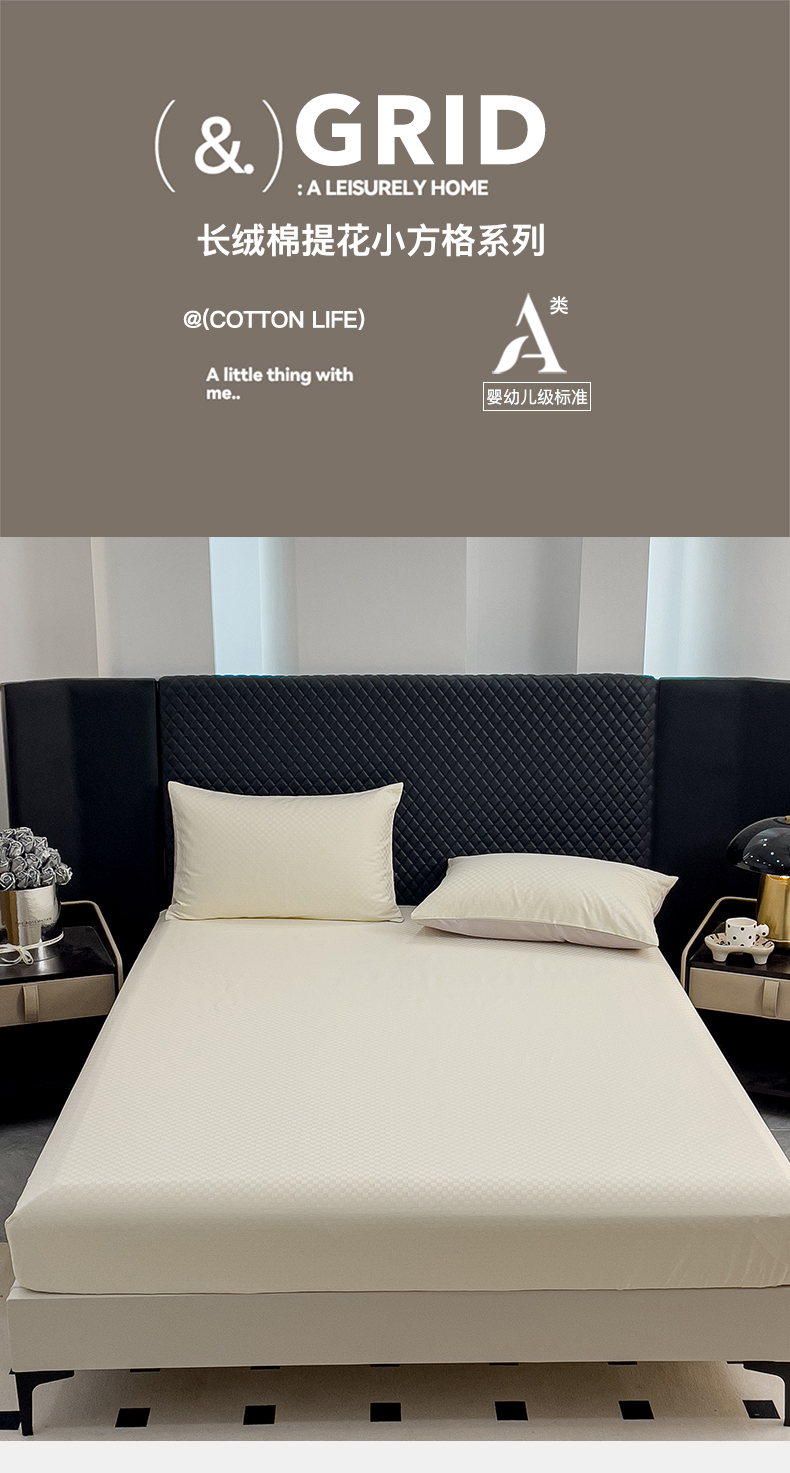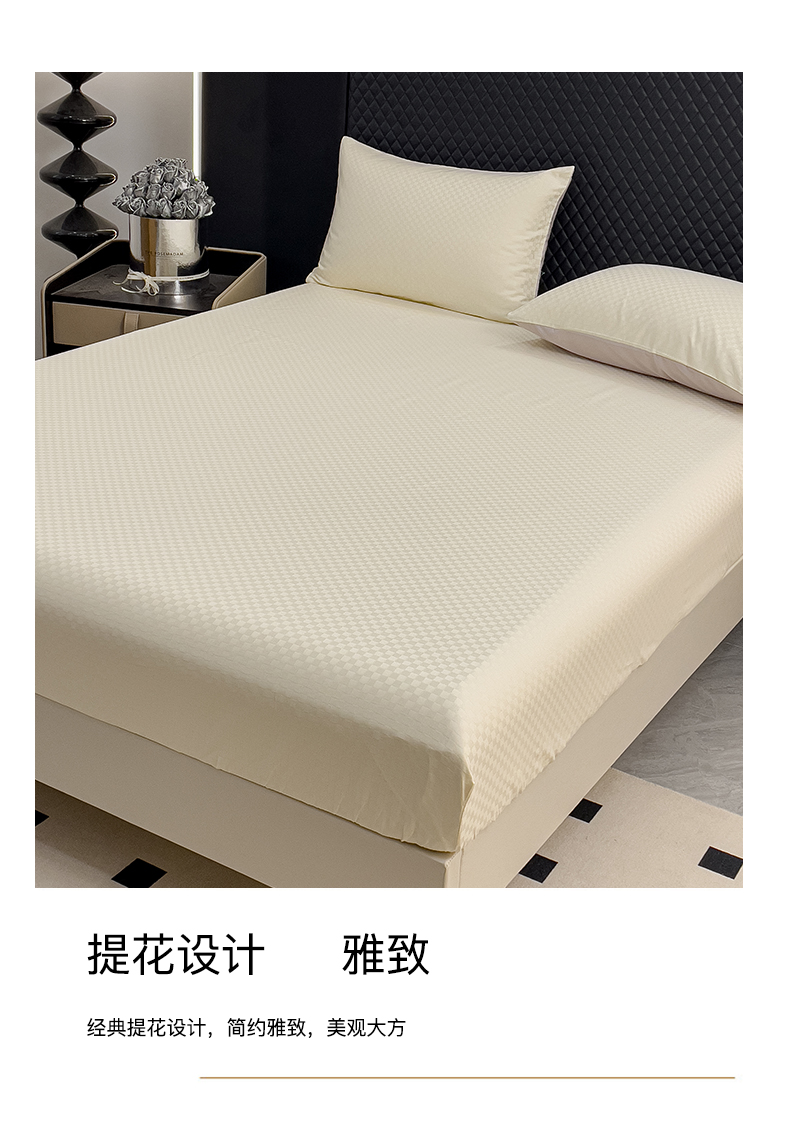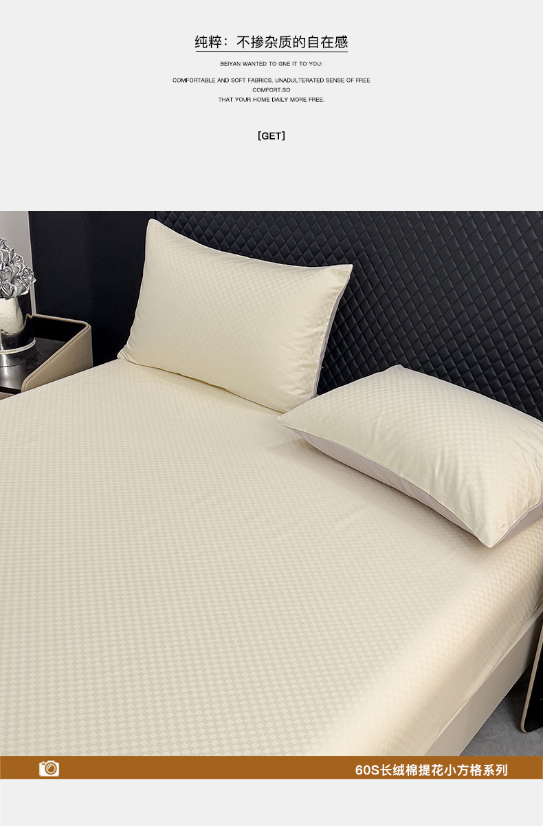 金鑫汇家纺 2024新款长绒棉提花小方格系列四件套单品系列-单床笠 奶昔白-淡紫