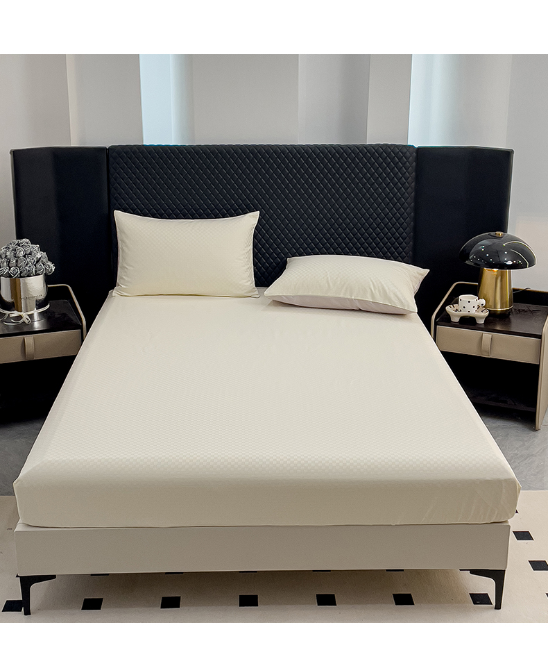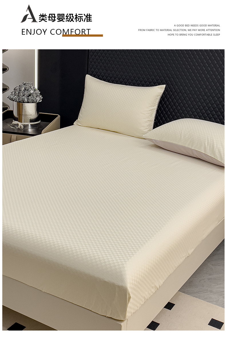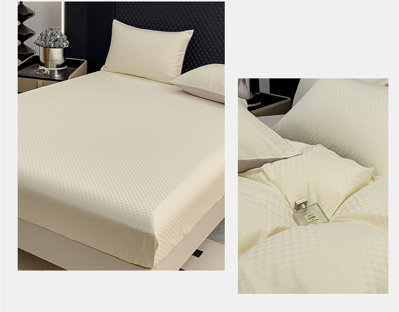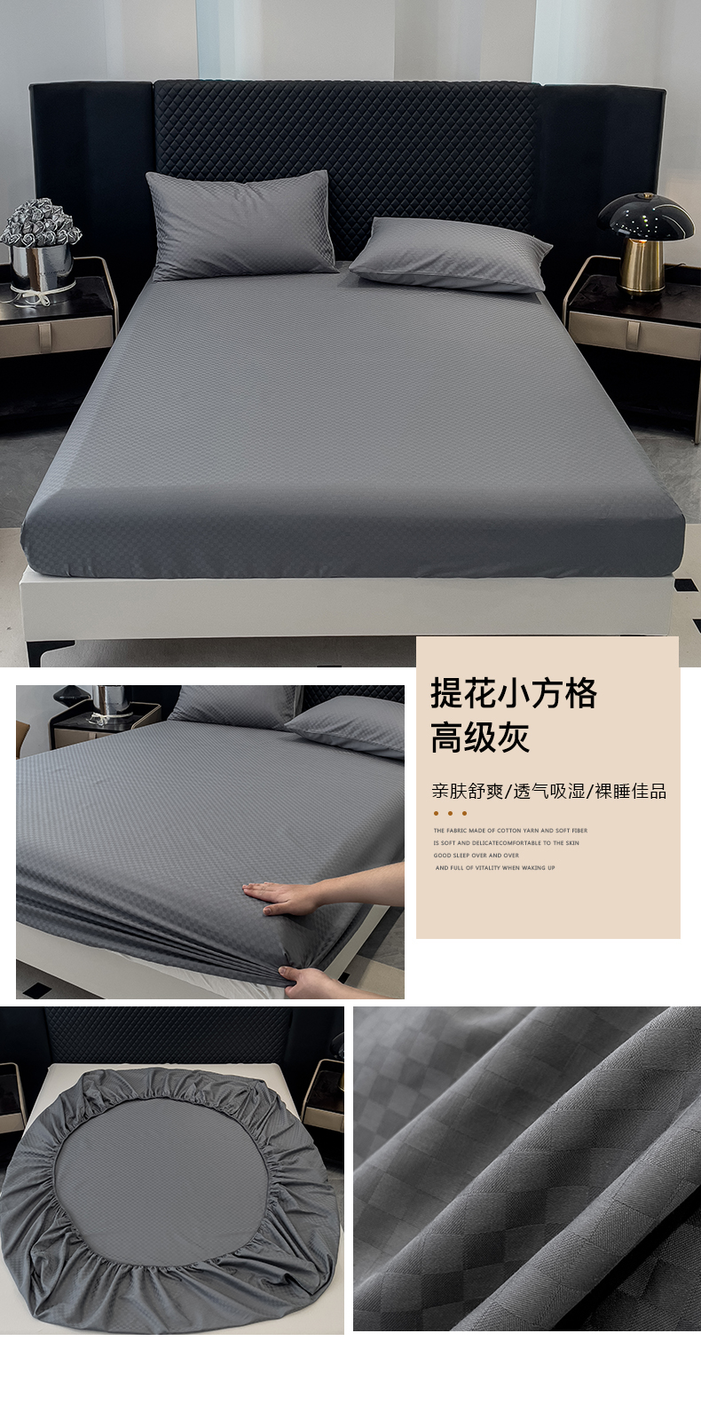 金鑫汇家纺 2024新款长绒棉提花小方格系列四件套单品系列-单床笠 奶昔白-淡紫