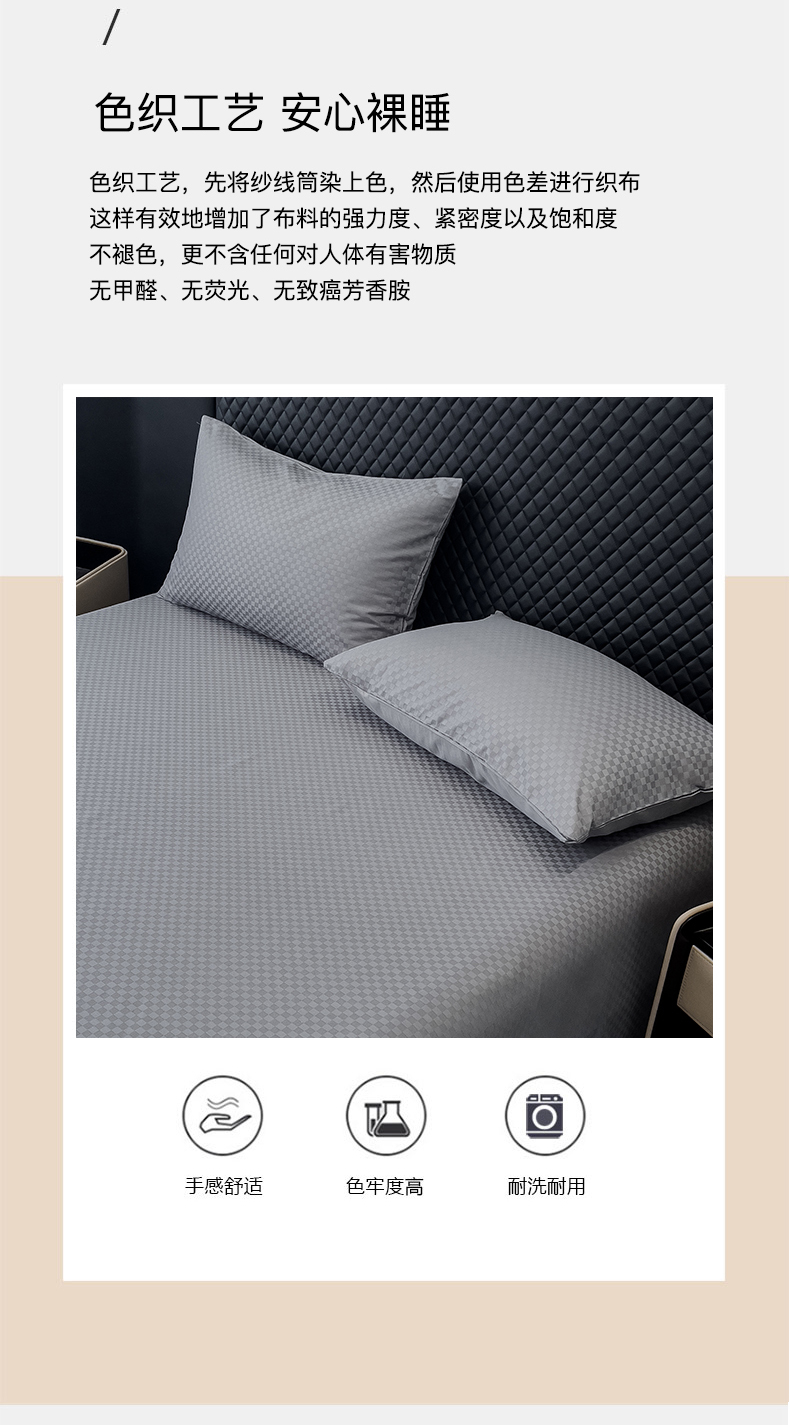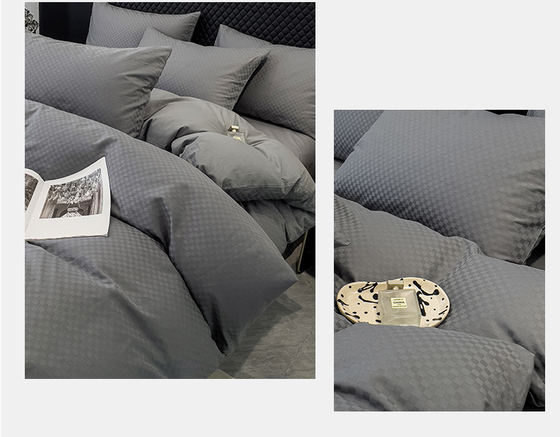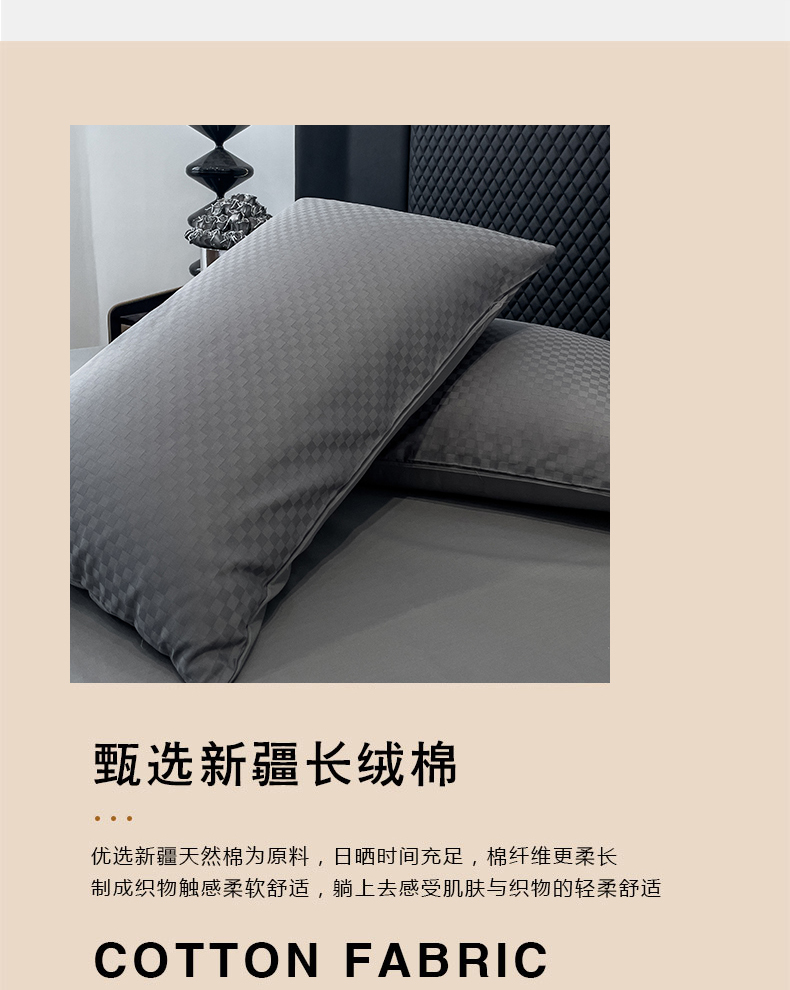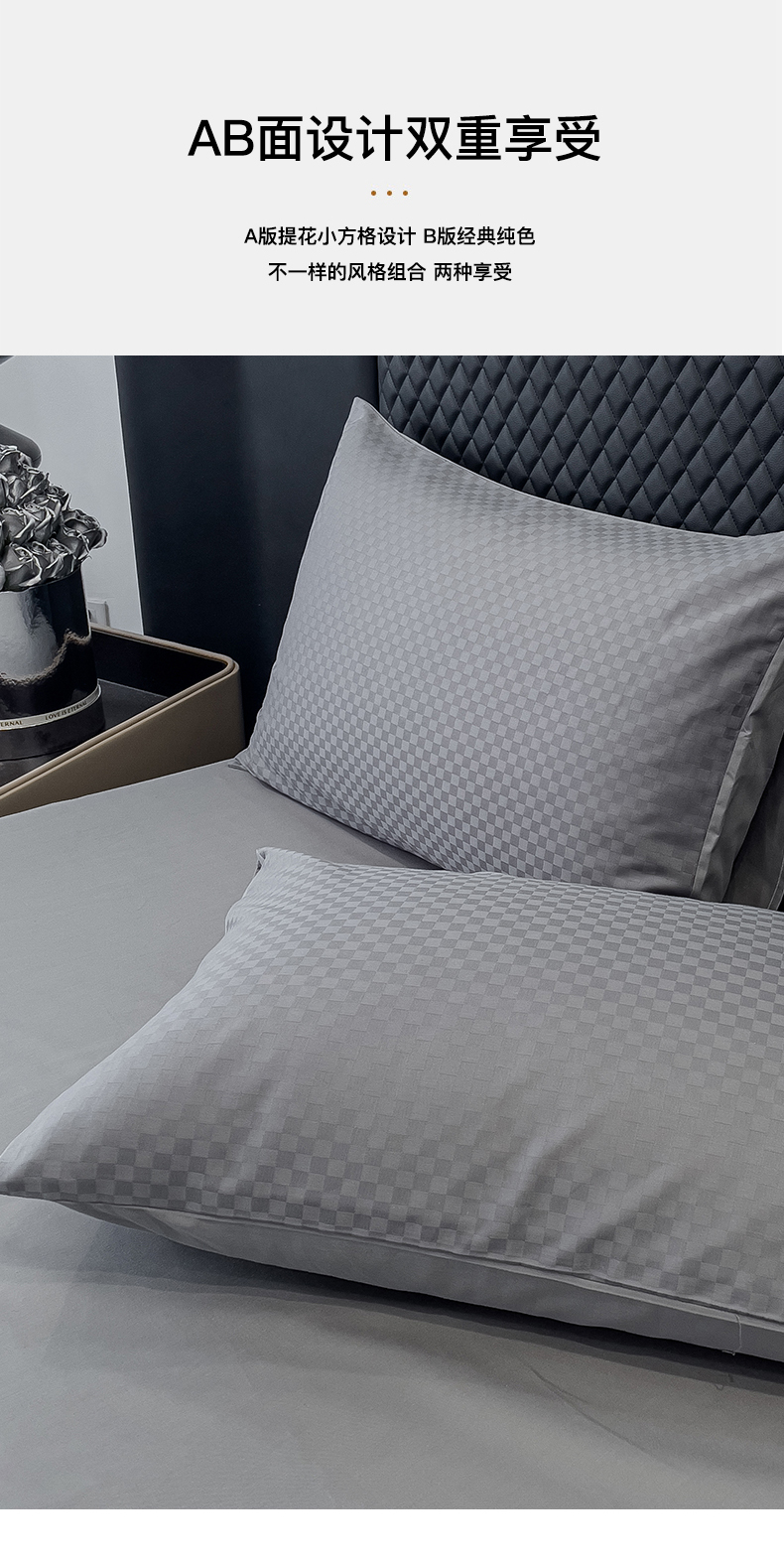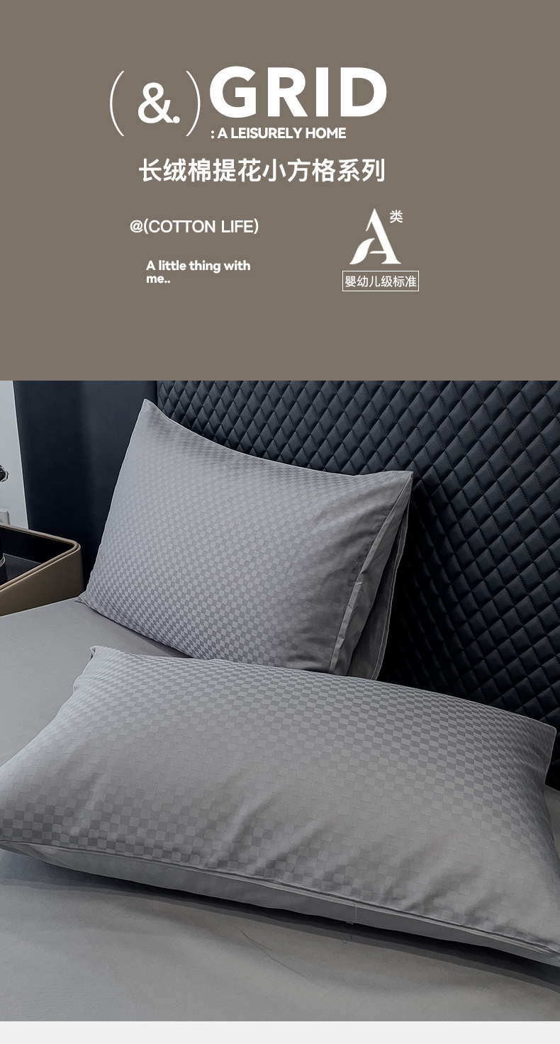 金鑫汇家纺 2024新款长绒棉提花小方格系列四件套单品系列-单枕套 深灰