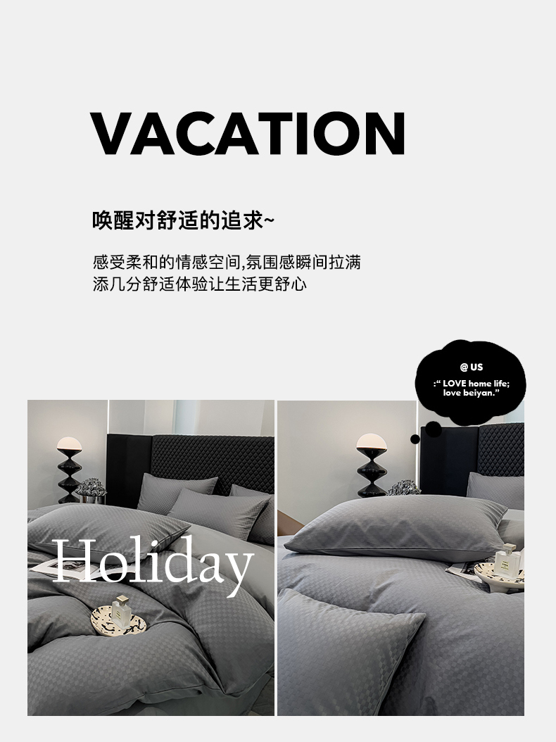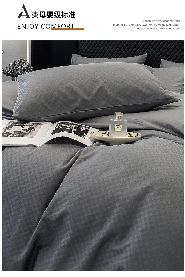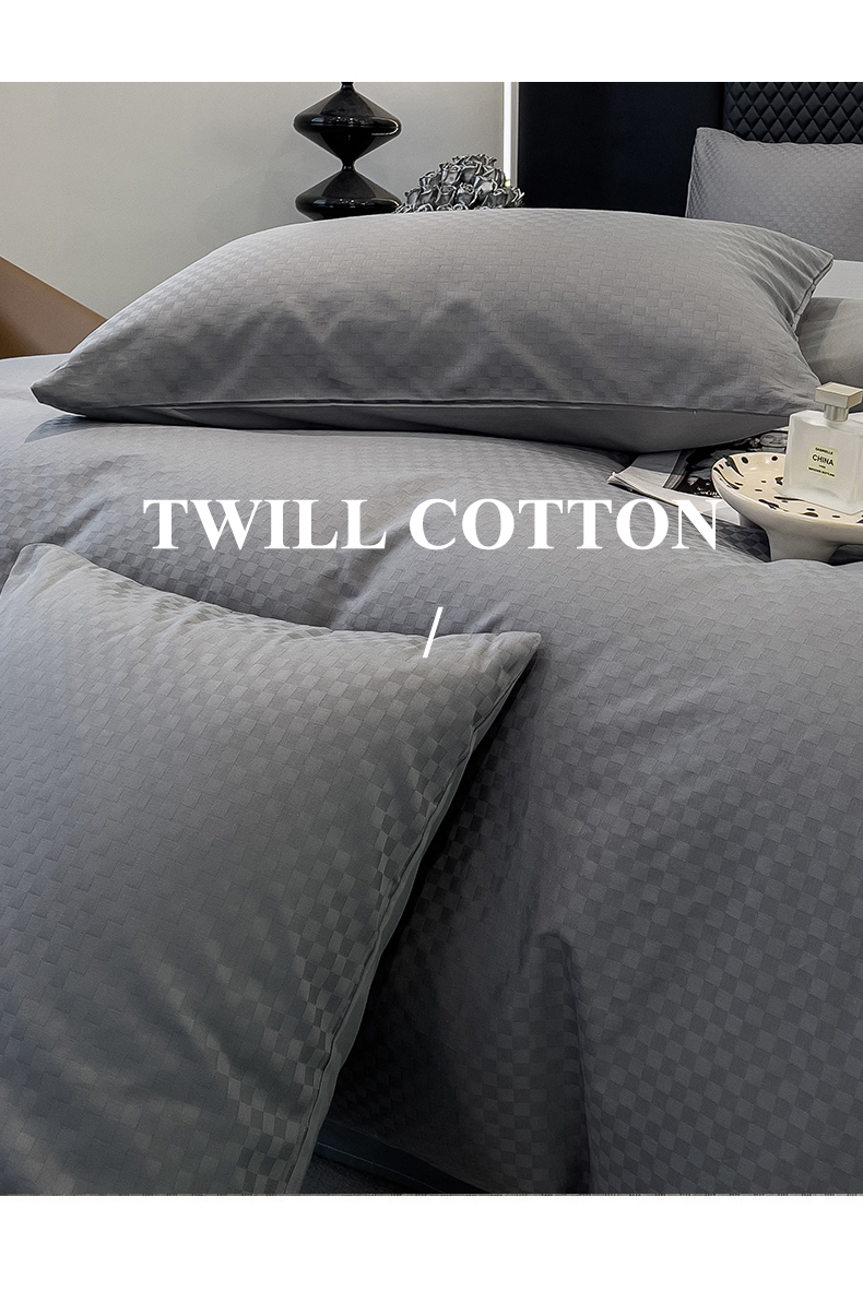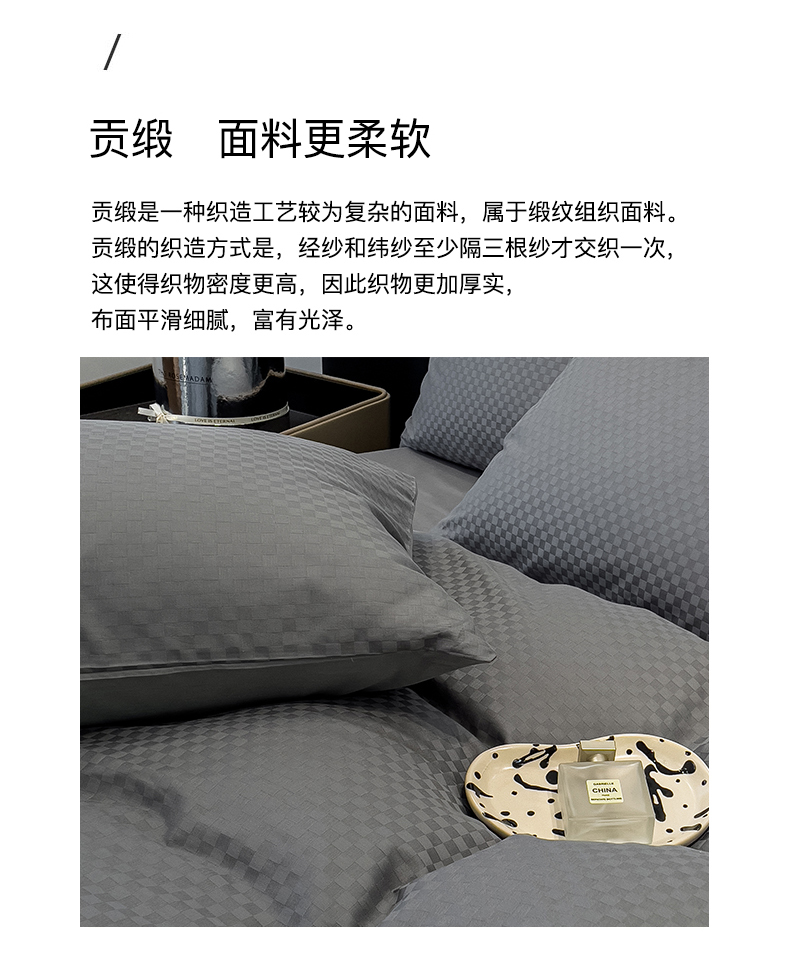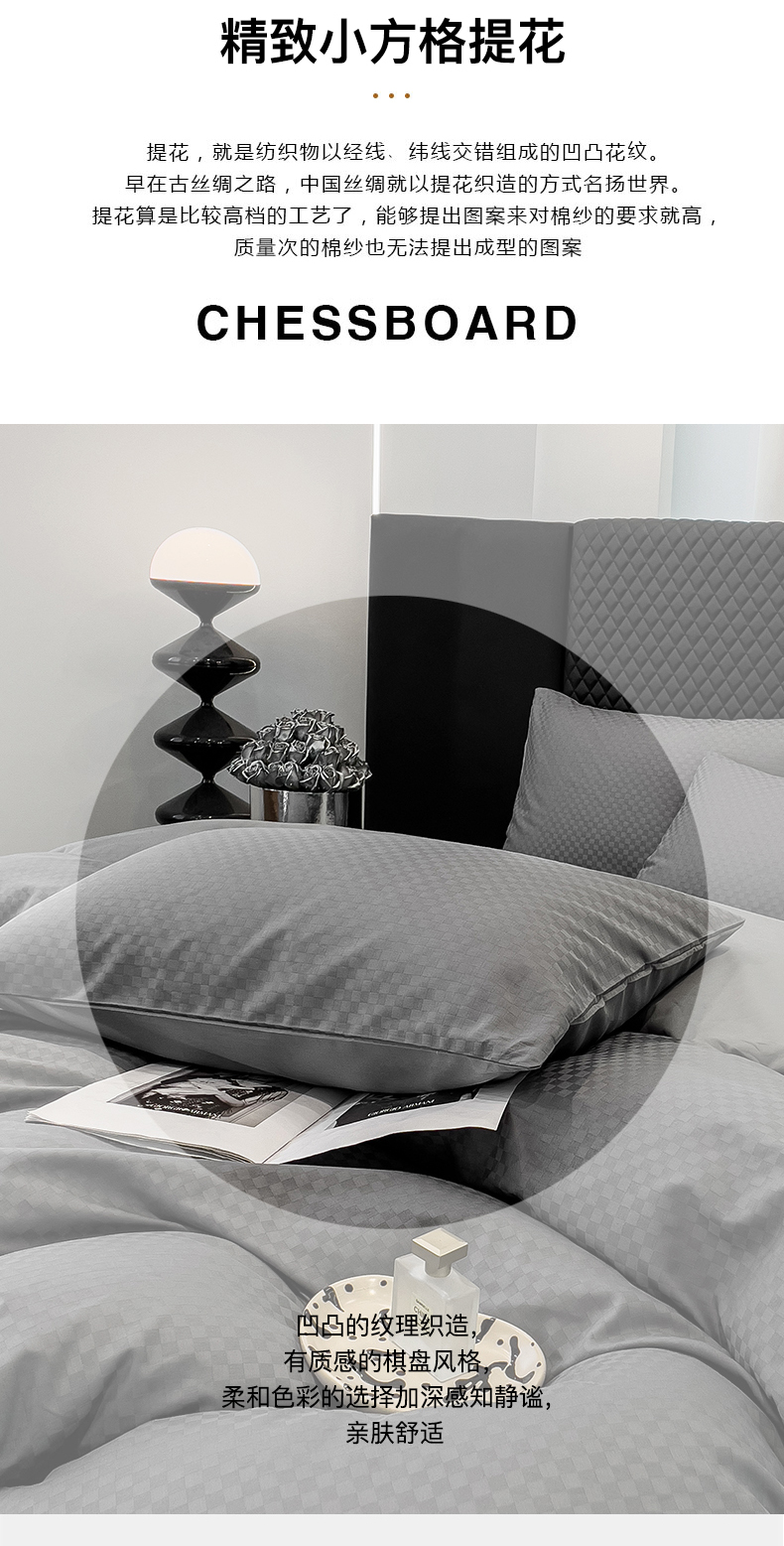 金鑫汇家纺 2024新款长绒棉提花小方格系列四件套单品系列-单枕套 深灰