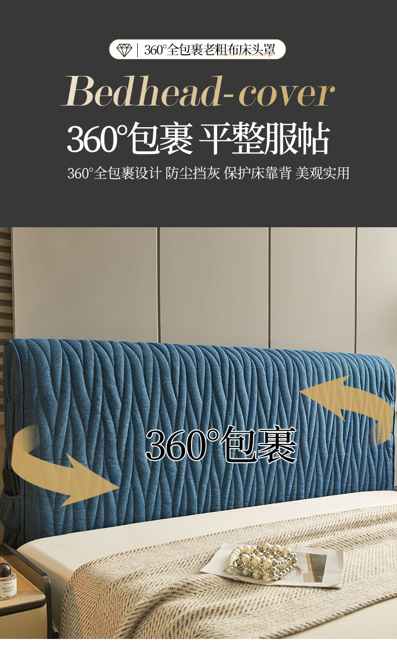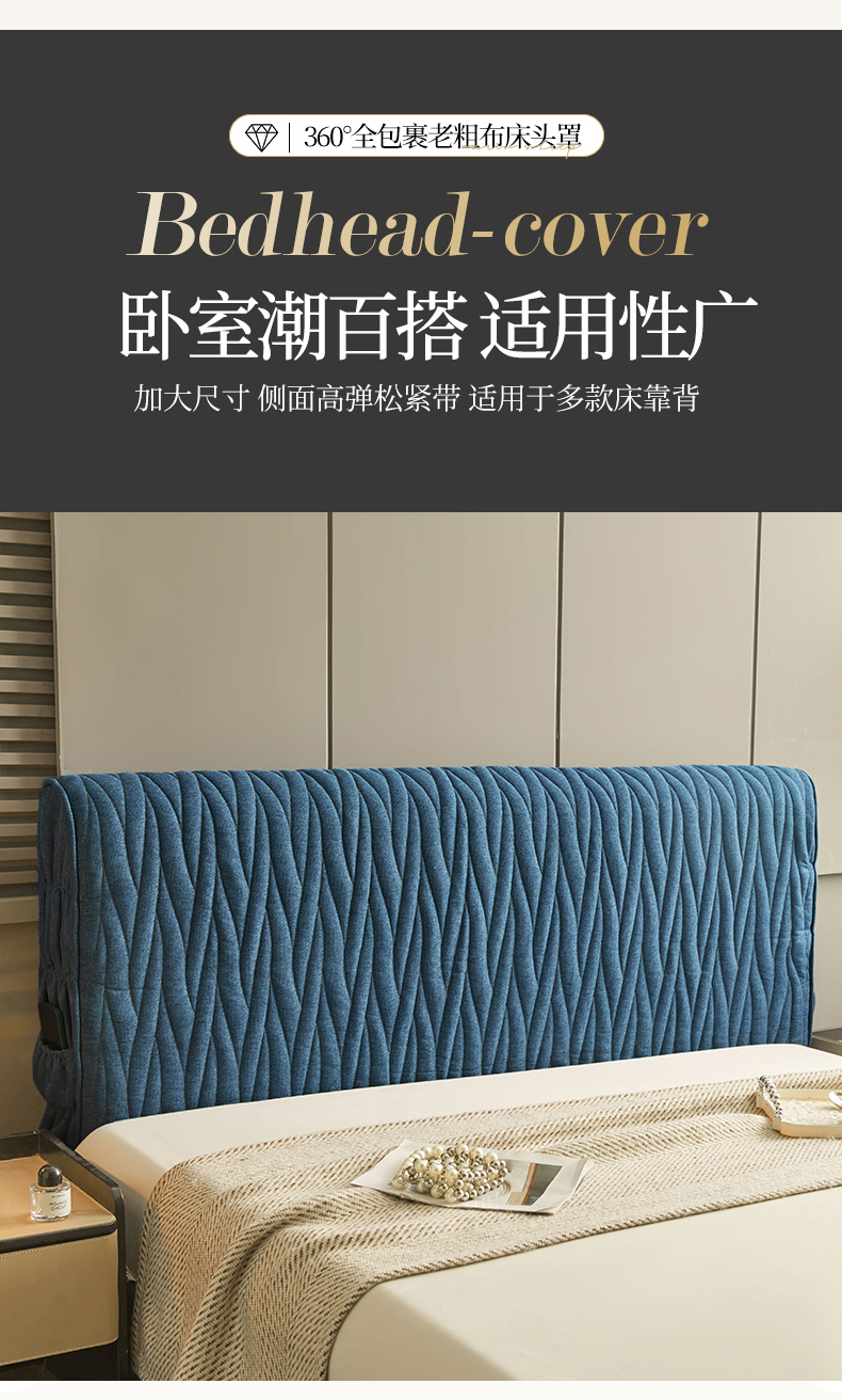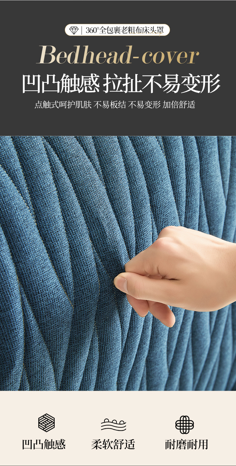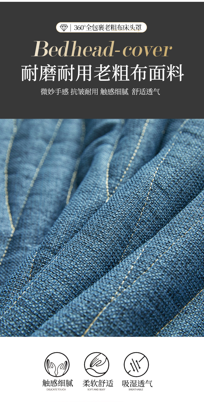 • 91家纺网 家纺一手货源 找家纺 情恒家纺 2025新款老粗布加厚双面可用全包床头罩 老粗布-海洋蓝