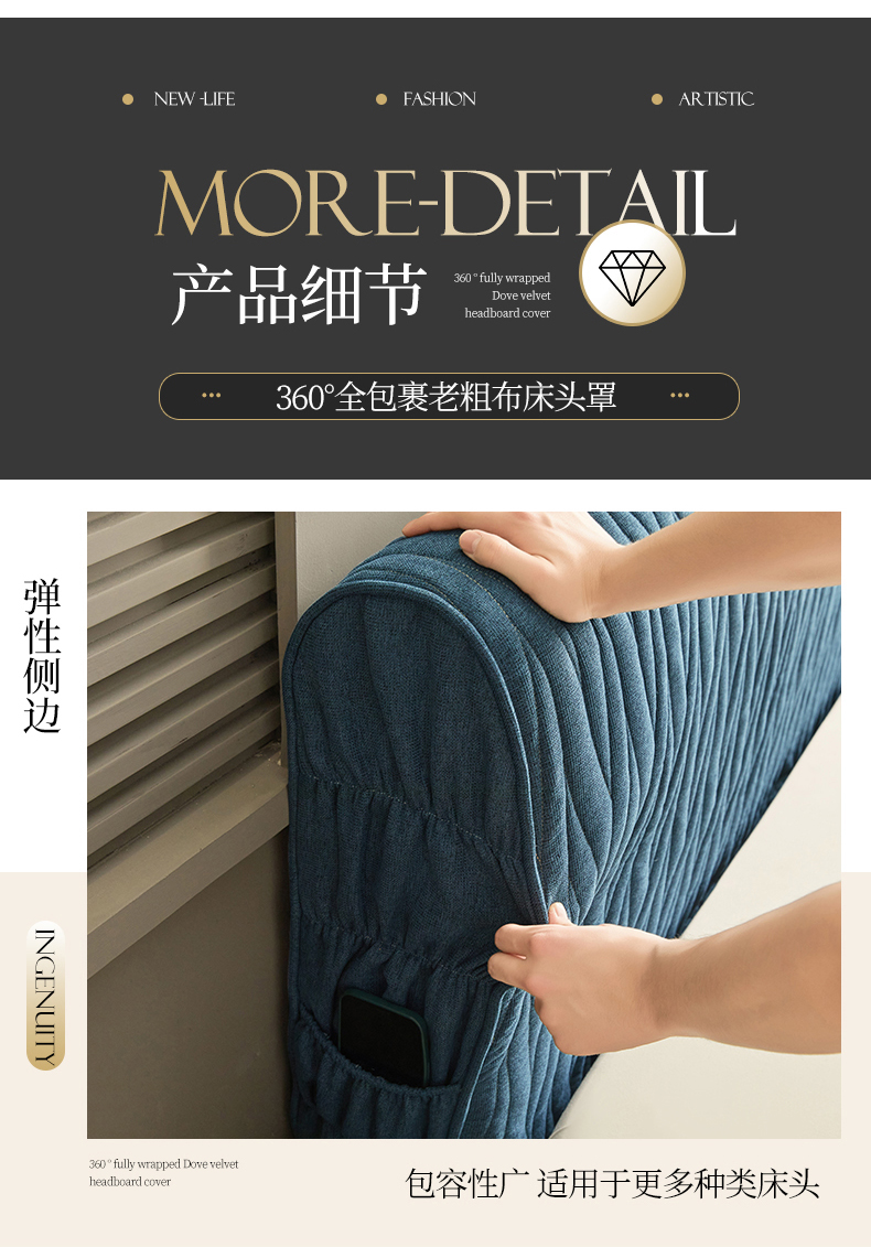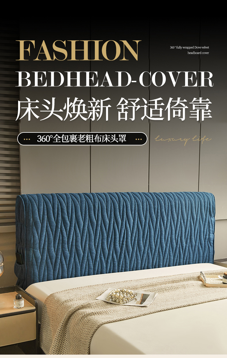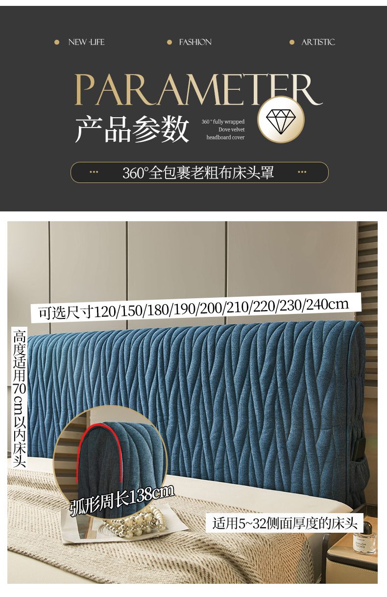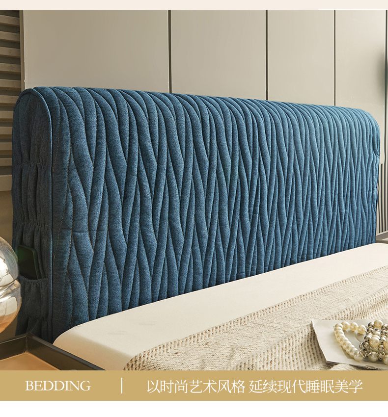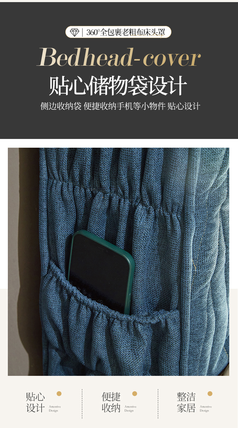 • 91家纺网 家纺一手货源 找家纺 情恒家纺 2025新款老粗布加厚双面可用全包床头罩 老粗布-海洋蓝