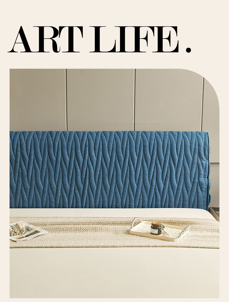 情恒家纺 2025新款老粗布加厚双面可用全包床头罩 老粗布-海洋蓝
