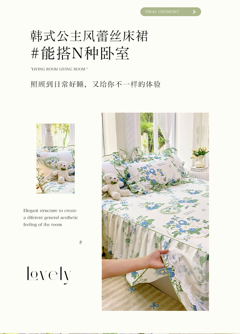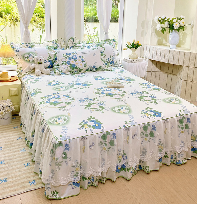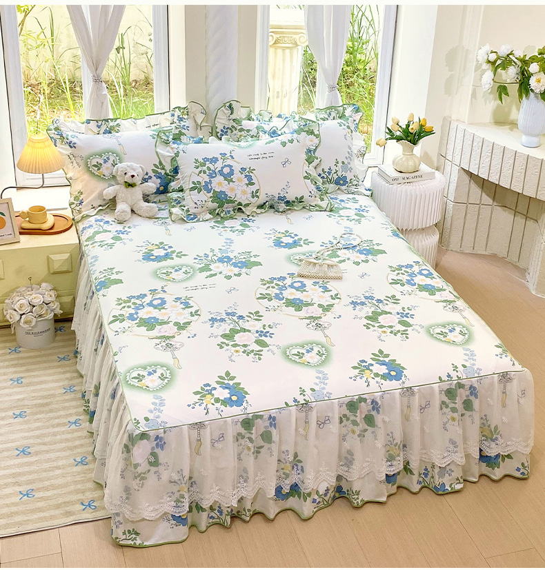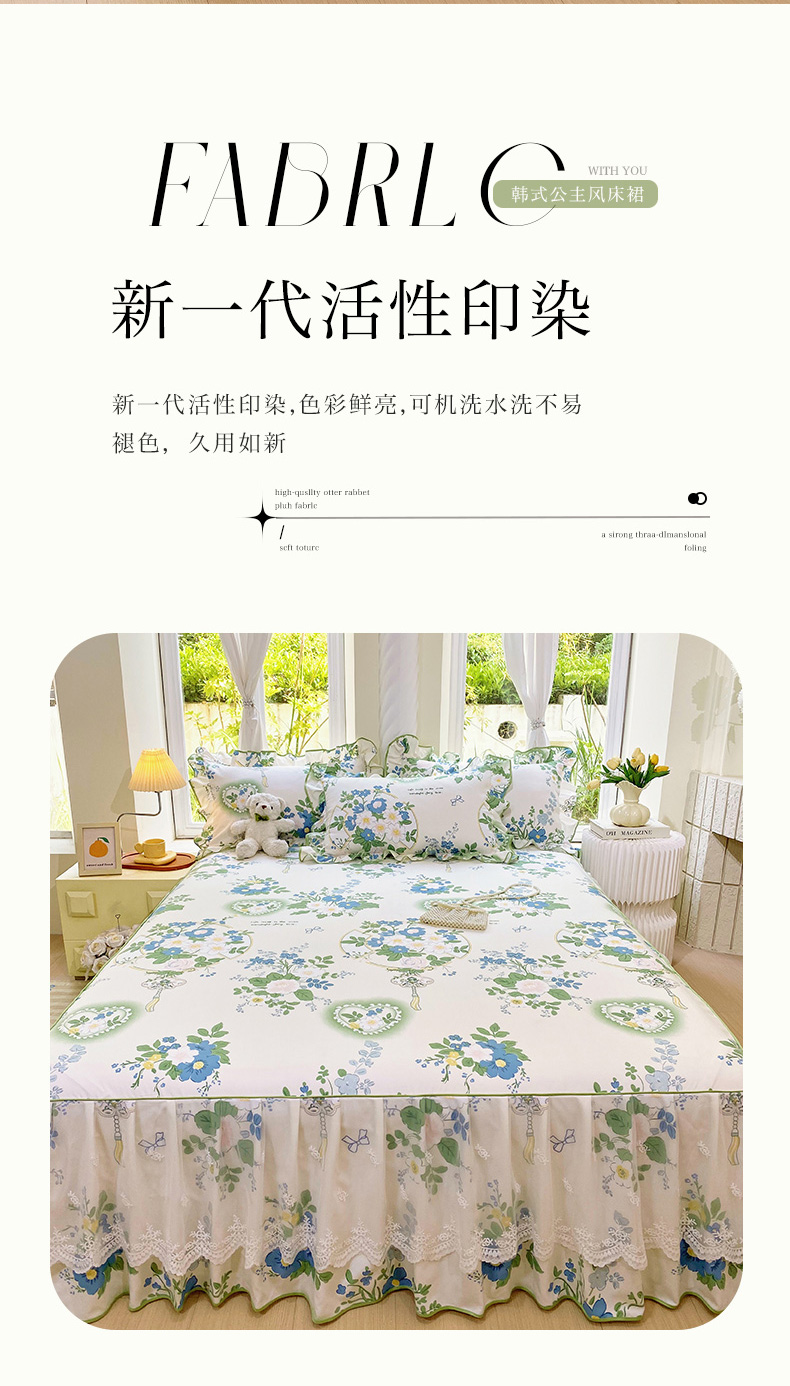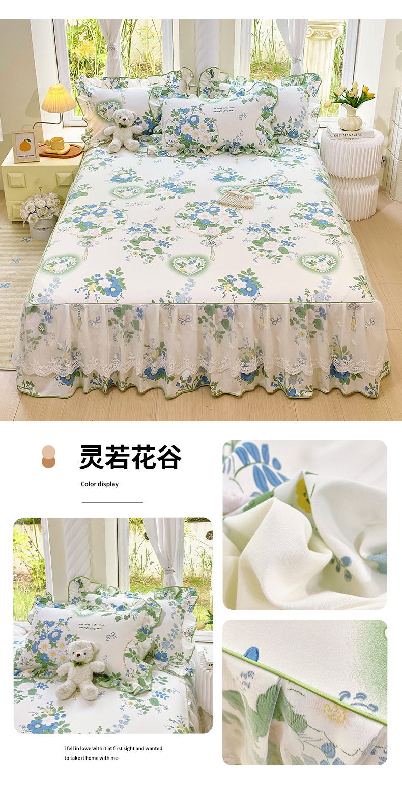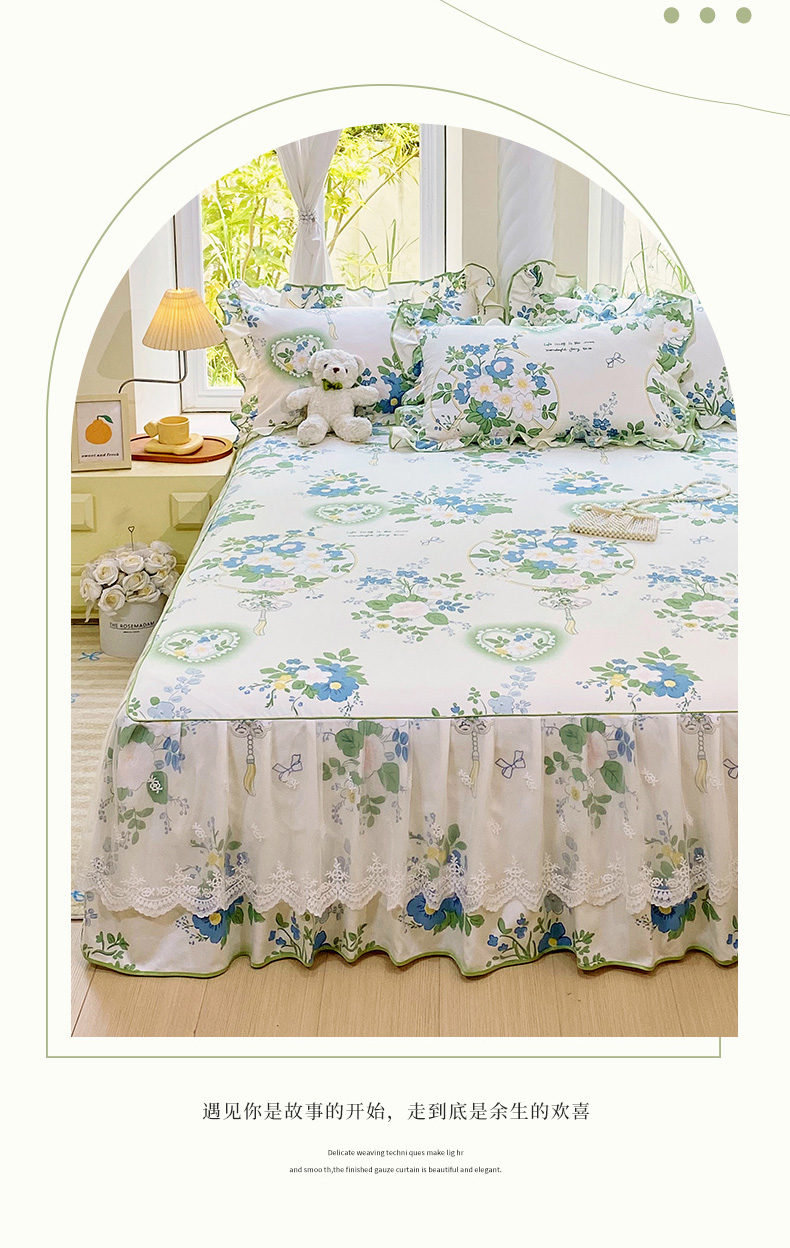 • 91家纺网 家纺一手货源 找家纺 雨彤家纺 2025新款高克重韩式公主风亲肤斜纹床裙单品床裙床裙单件 灵若花谷-公主风