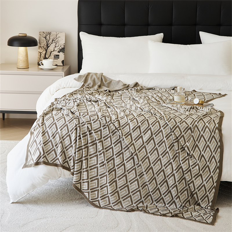 (总)暖绵绵家纺 2025新款针织盖毯--弗罗瑟,弗罗瑟-驼色,弗罗瑟-银灰