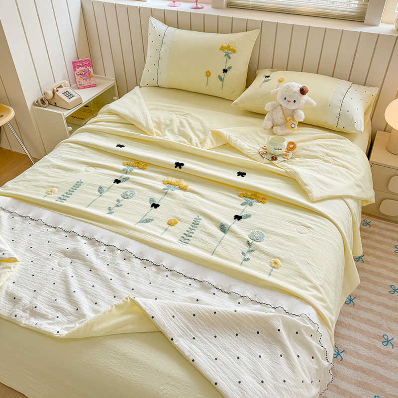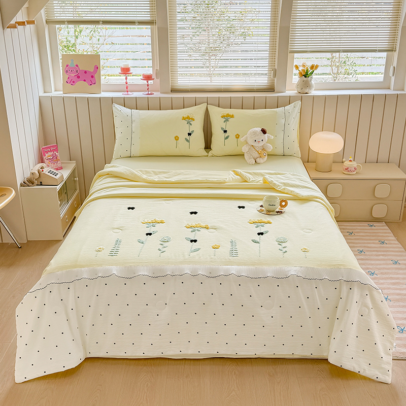 (总)梧桐家居 2025爆款小清新绣花蕾丝边全棉夏被夏凉被空调被四件套 安娜花园