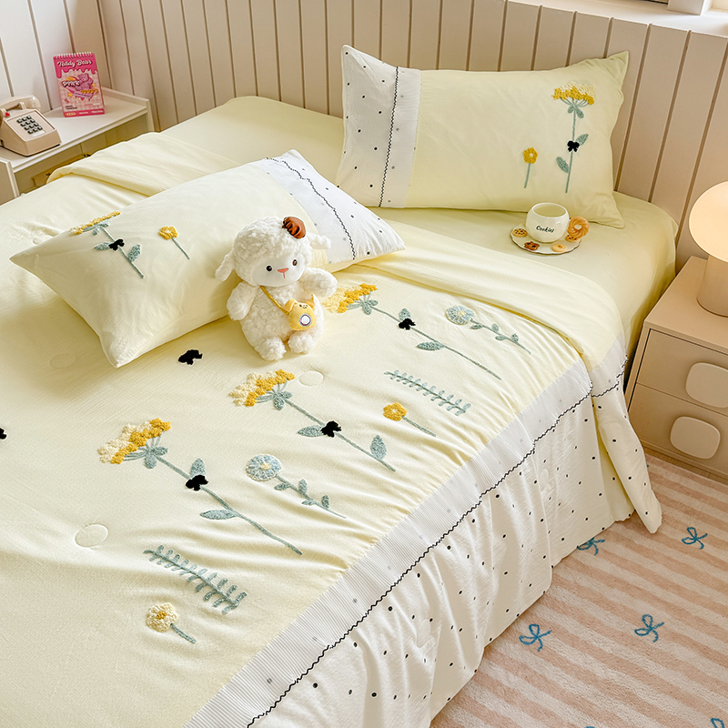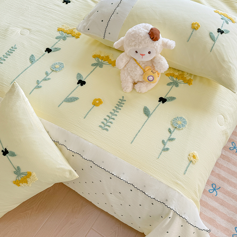 (总)梧桐家居 2025爆款毛巾绣皱皱双层纱四件套安娜花园安娜花园系列,安娜花园-鹅黄,安娜花园-天蓝,安娜花园-浅绿