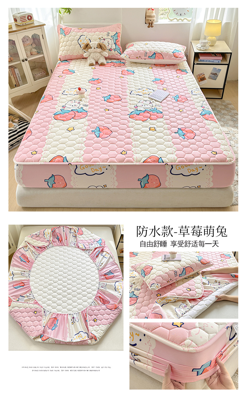 九亭家纺 2025新款A类全棉夹棉防水床笠 防水款-草莓萌兔