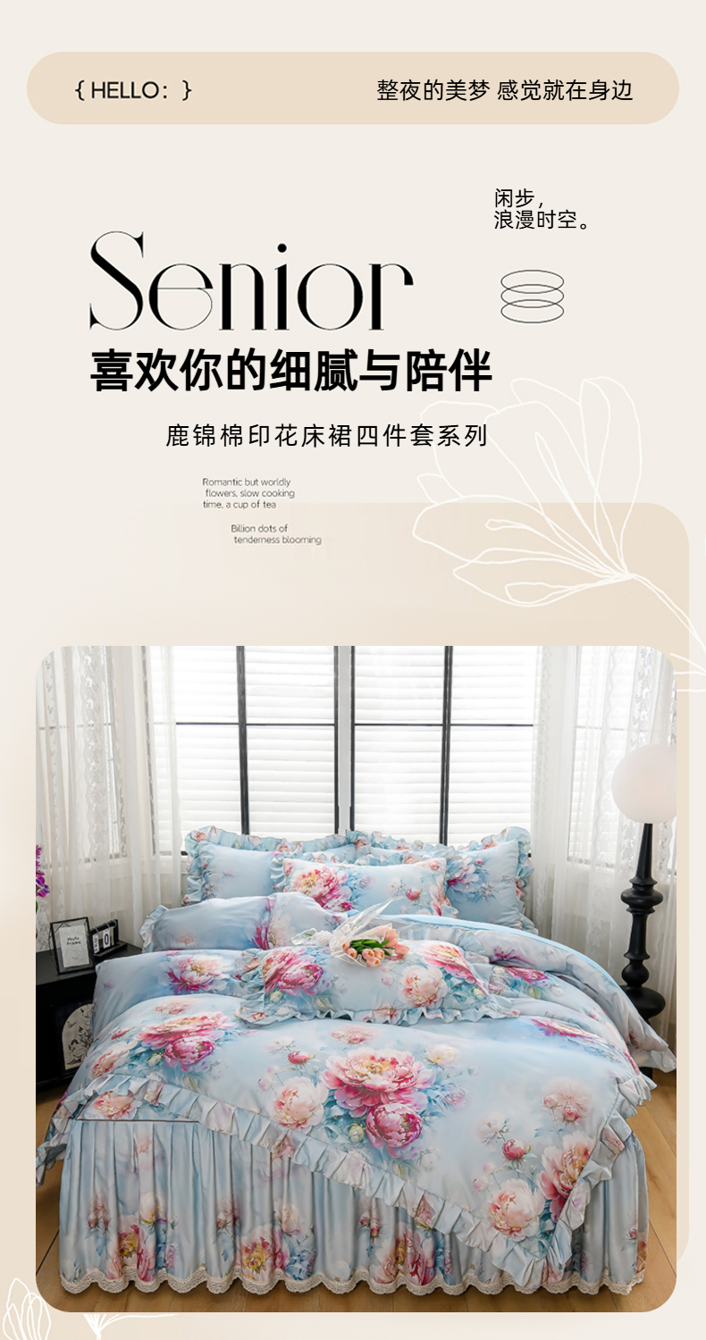 当前位置: 91家纺网 > 商品网购 > 床品套件 > 四件套 > 其它四件套 > 家之硕家纺 2025春夏新款床裙款四件套繁花似锦系列 苍穹雀语