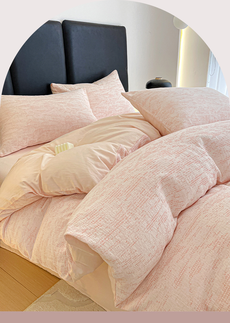 (总)静家居-简约原创家纺 四季款三层纱本色加厚提花四件套,本色-海盐蓝,本色-灰,本色-米咖,本色-松弛粉