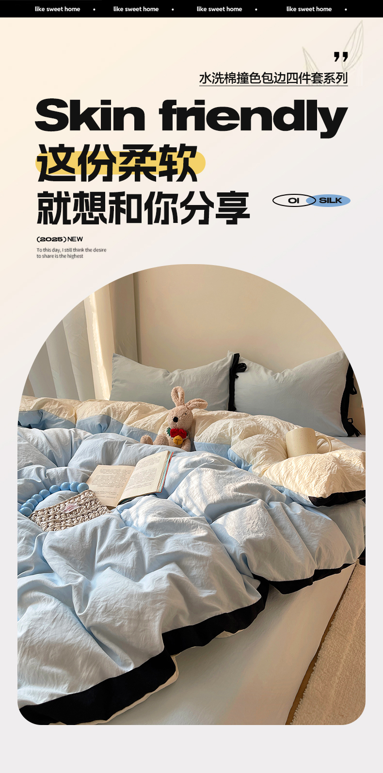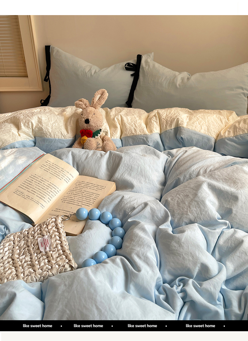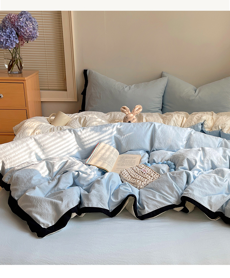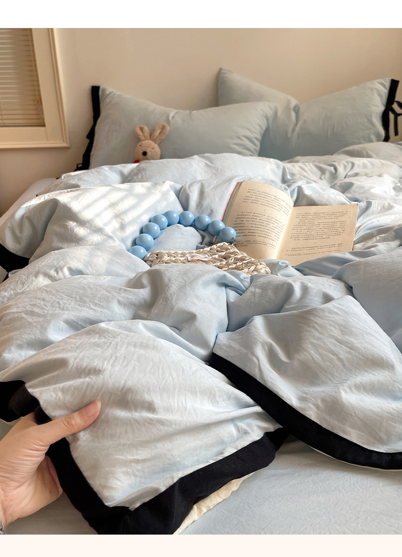 (总)轻奢坊 2025新款水洗棉纯色撞色包边绑带款四件套