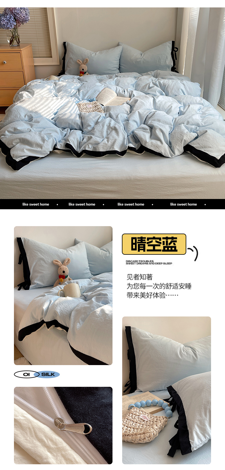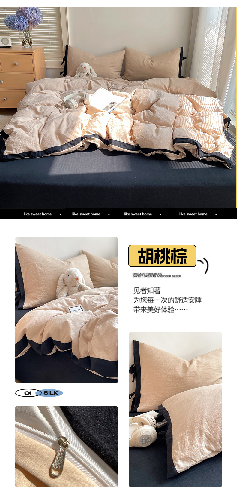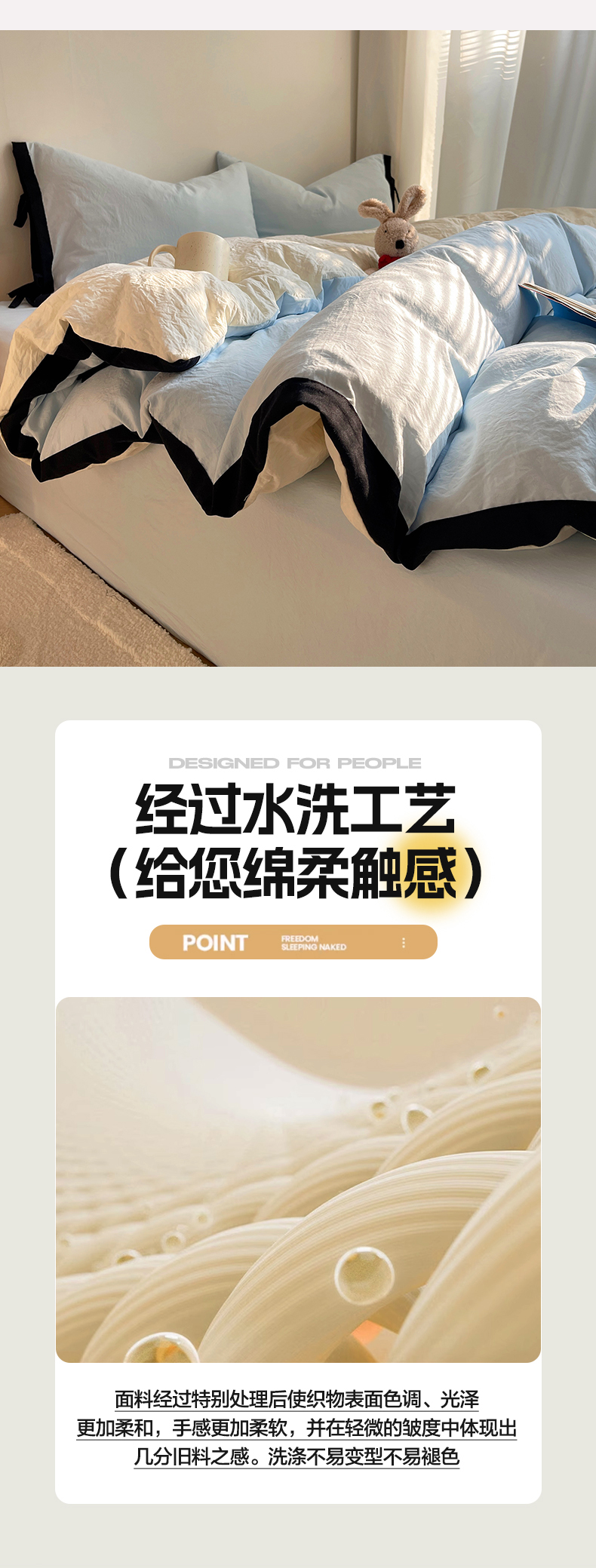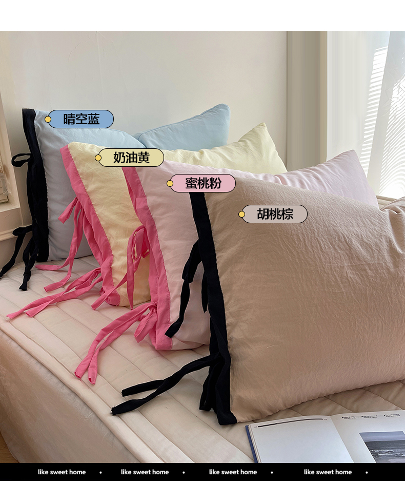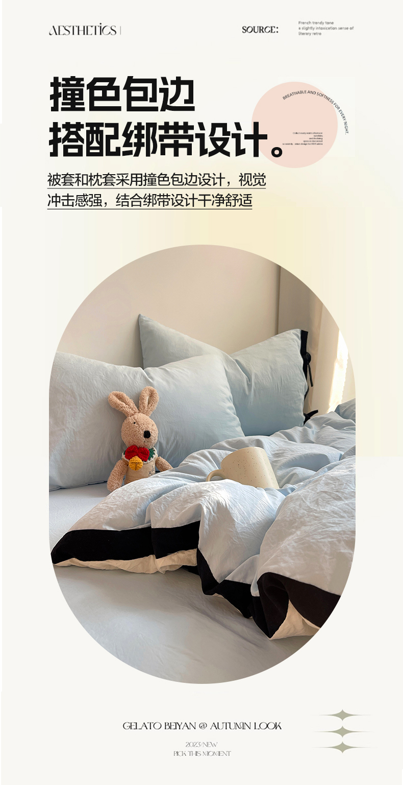 商品名称:(总)轻奢坊 2025新款水洗棉纯色撞色包边绑带款四件套