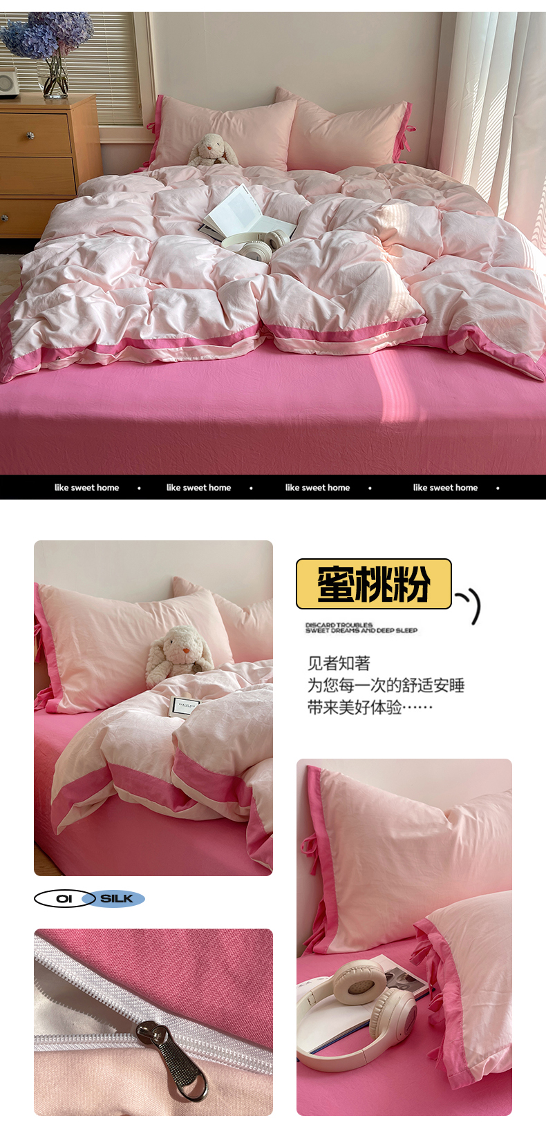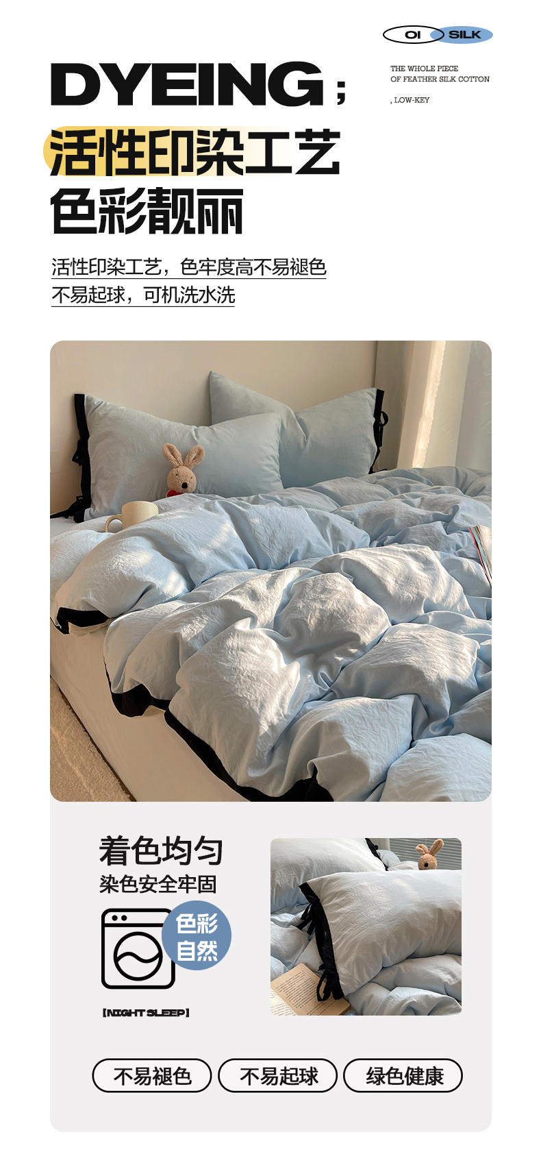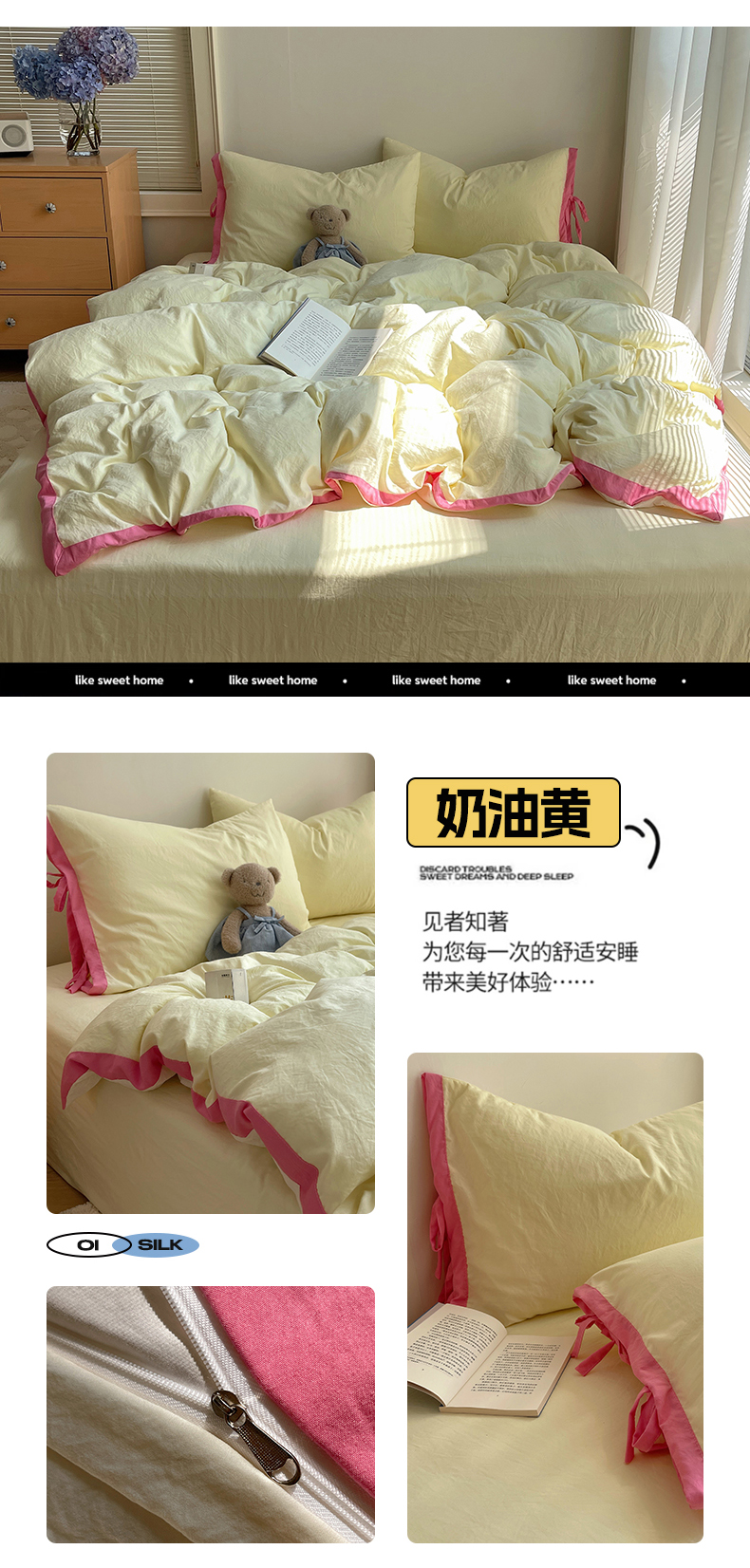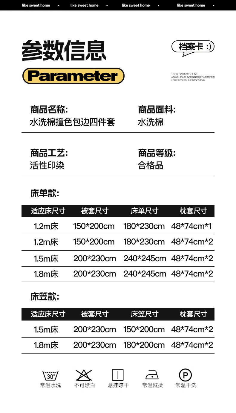 商品名称:(总)轻奢坊 2025新款水洗棉纯色撞色包边绑带款四件套