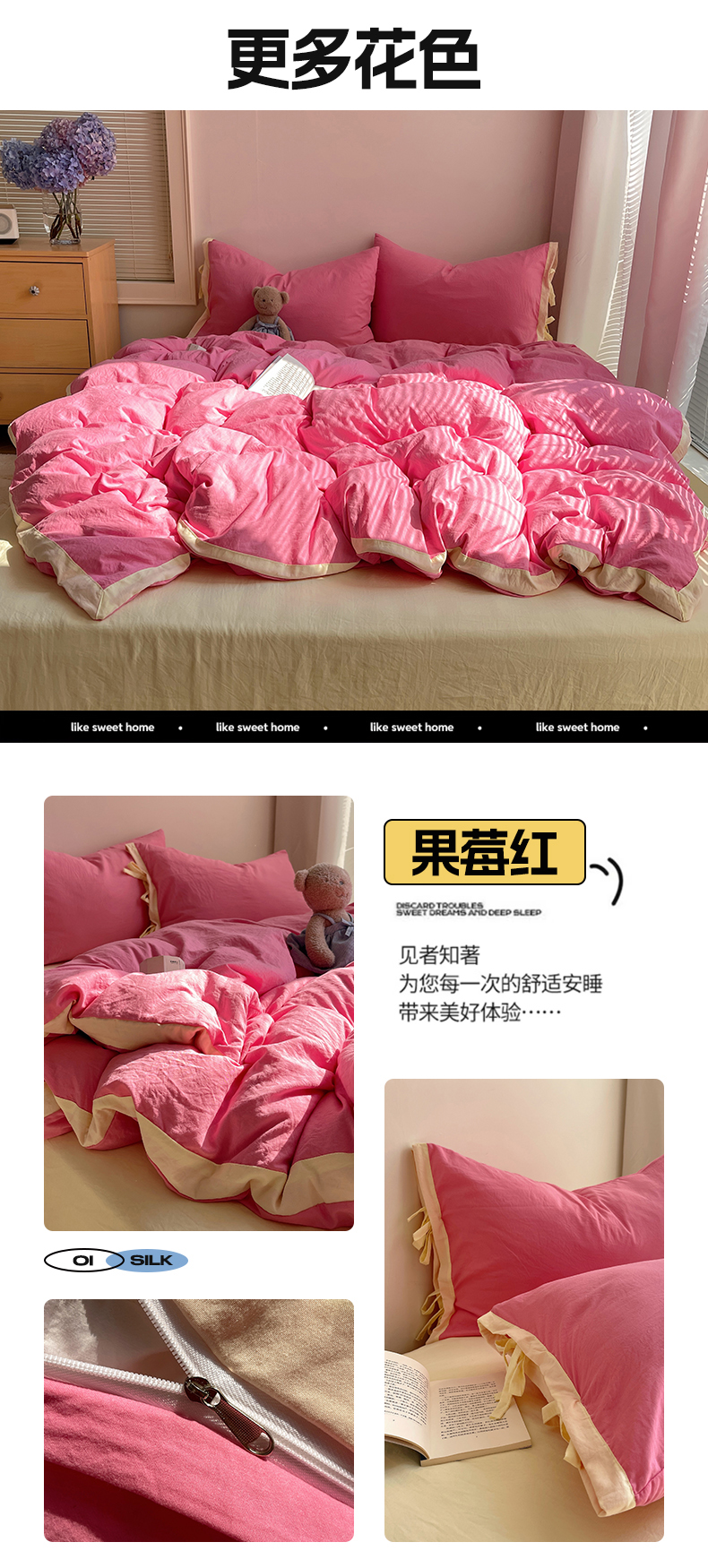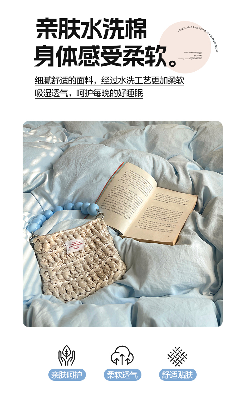 (总)轻奢坊2023新款水洗棉简约款纯色四件套,简约白,简约黑莓,简约黑紫,简约灰,简约蓝,简约绿,简约柔粉,简约树莓红,简约胭粉