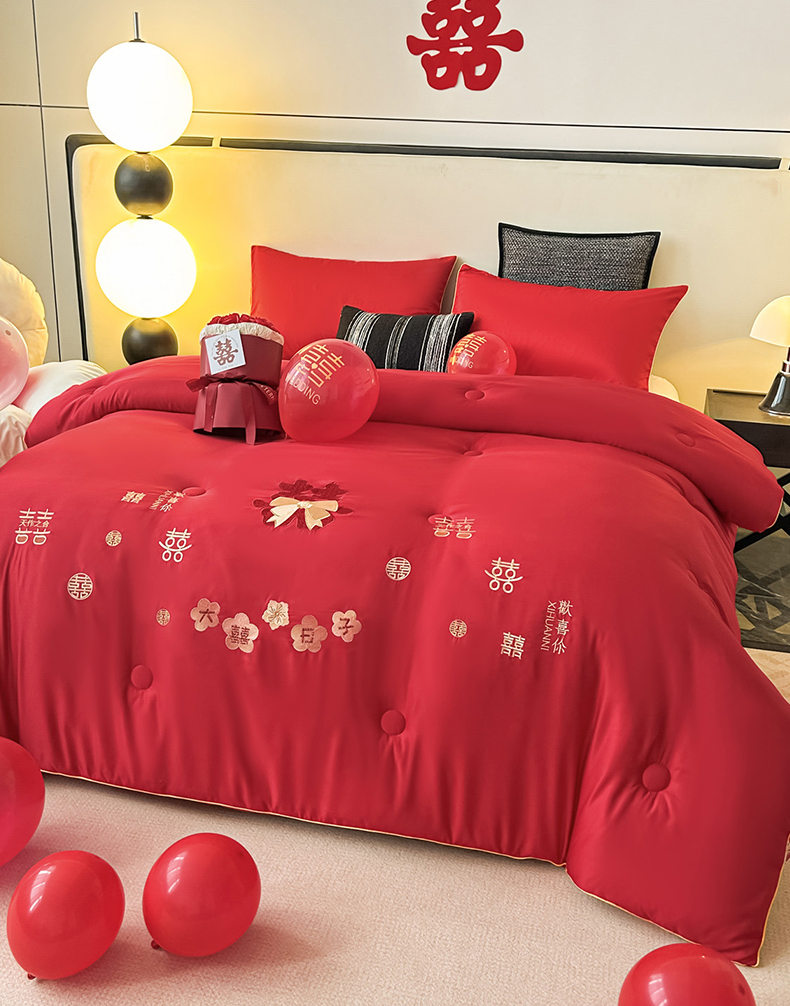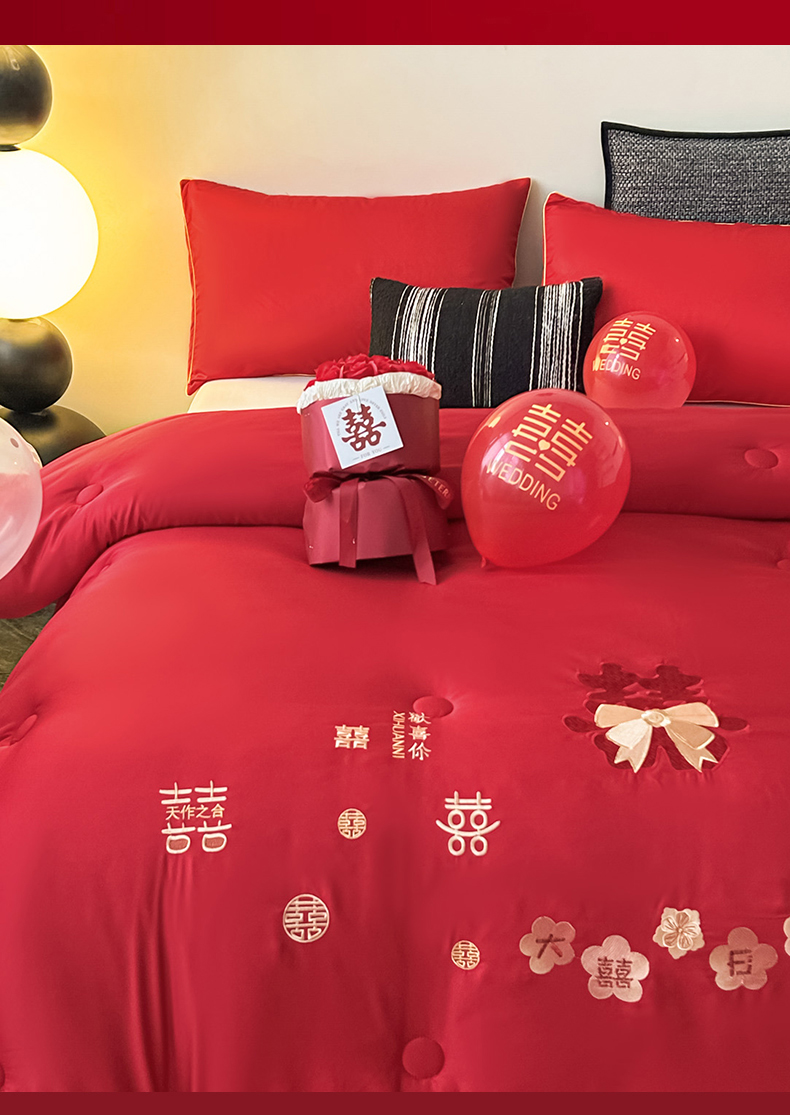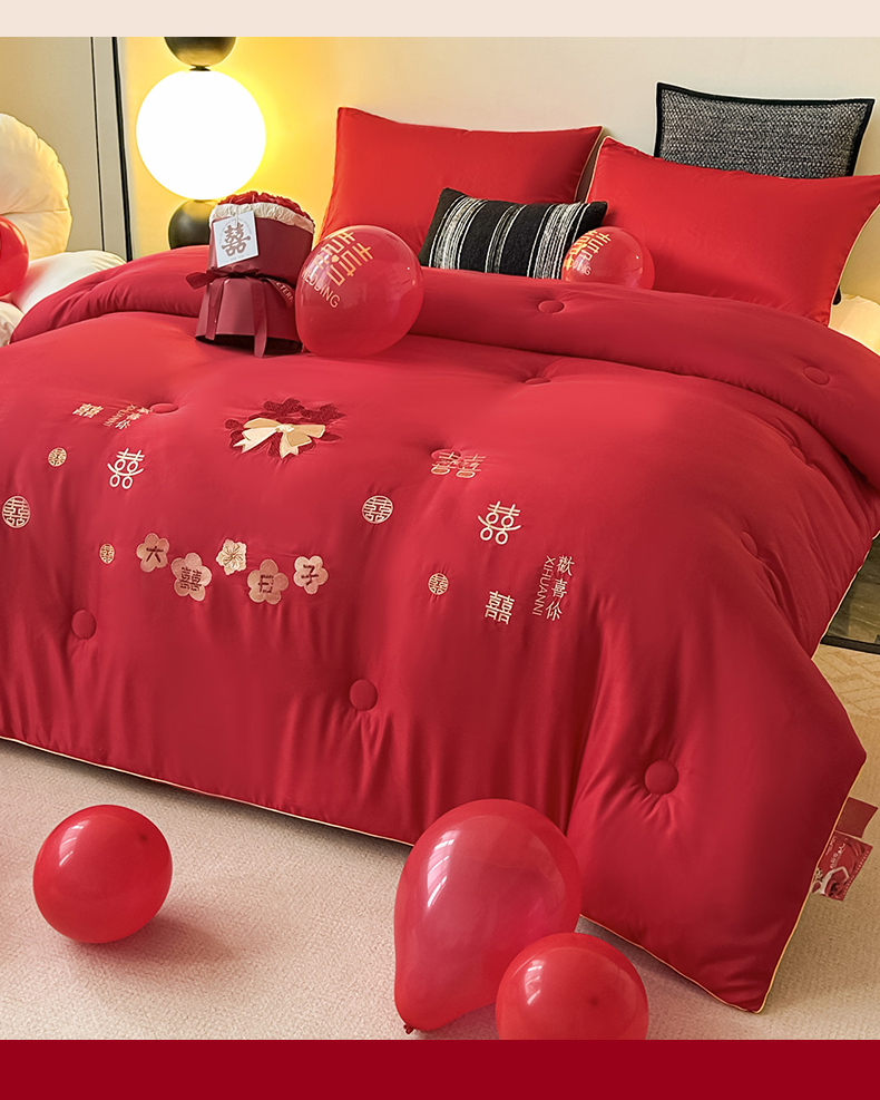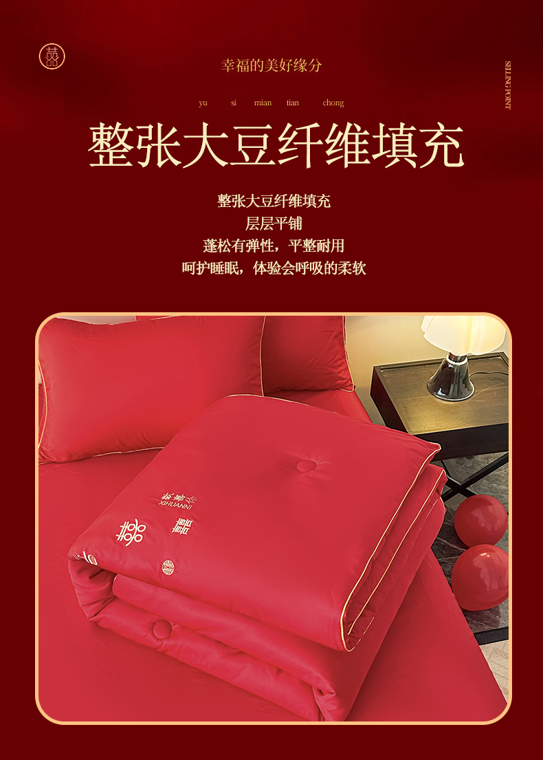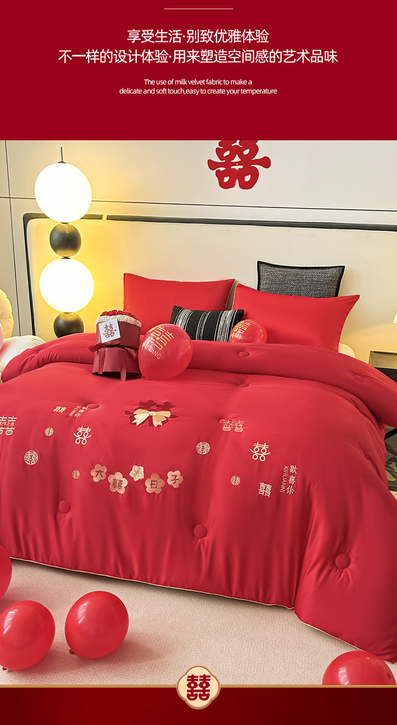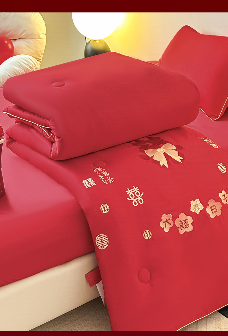 (总)壹张床2025新款婚庆水洗棉大豆冬被,大喜日子