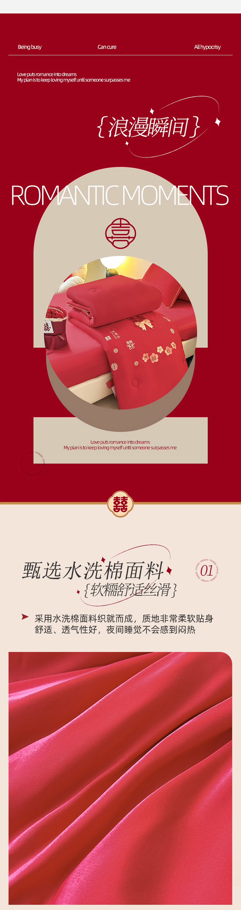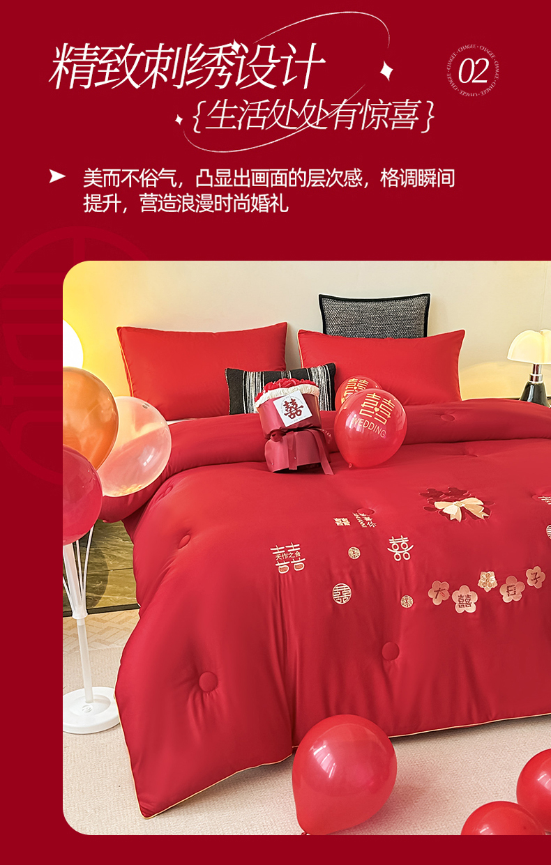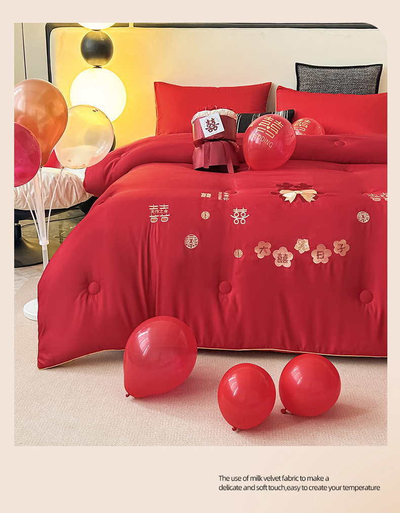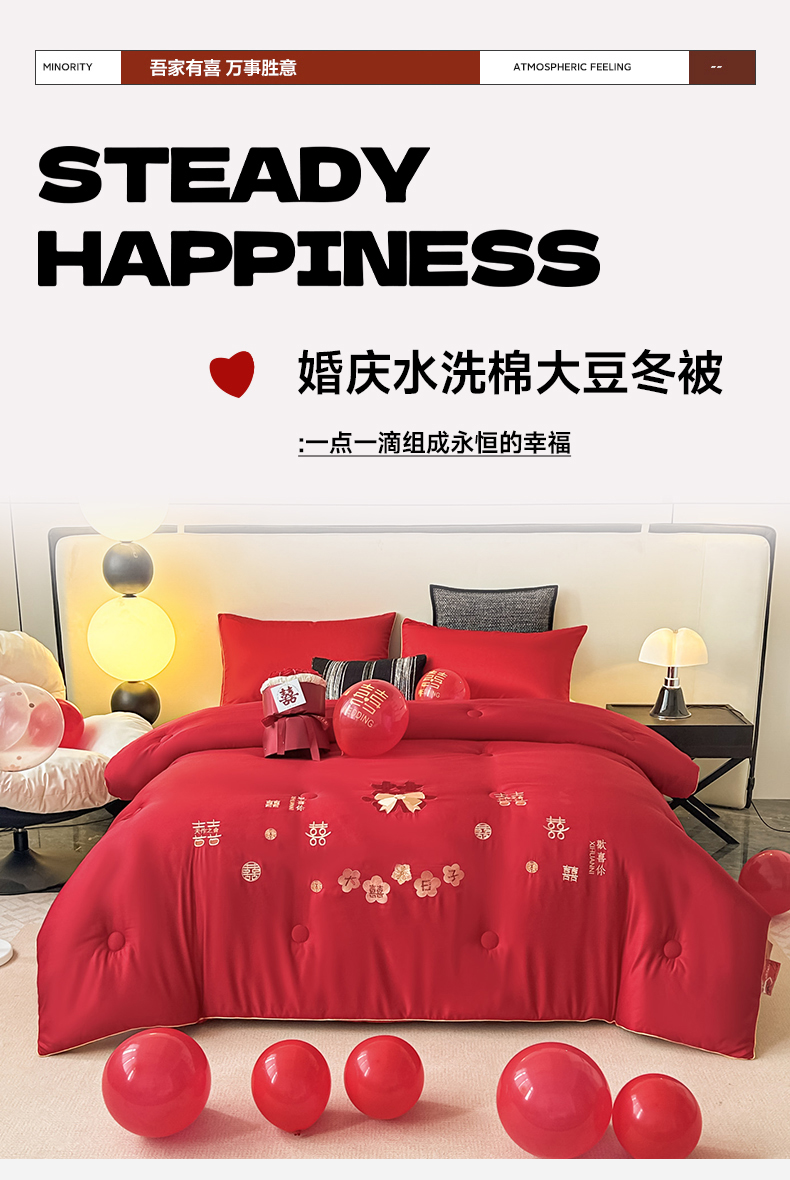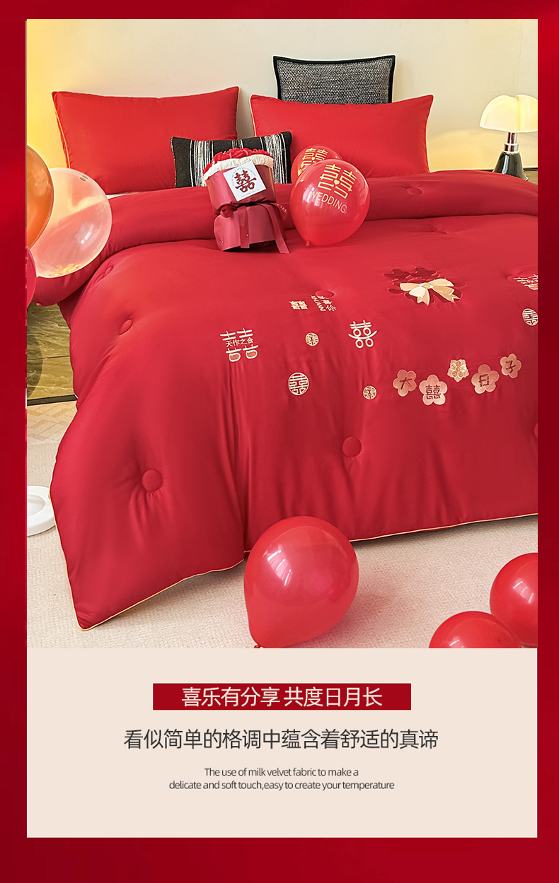 (总)壹张床2025新款婚庆水洗棉大豆冬被,大喜日子