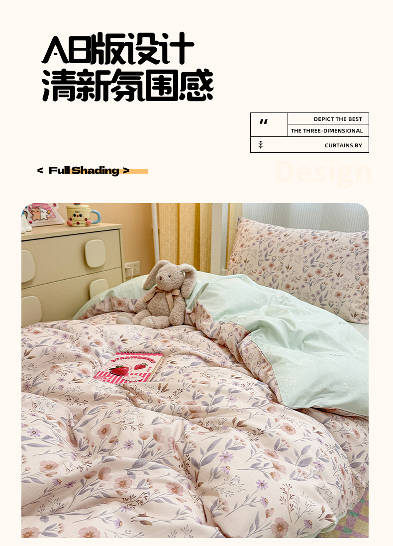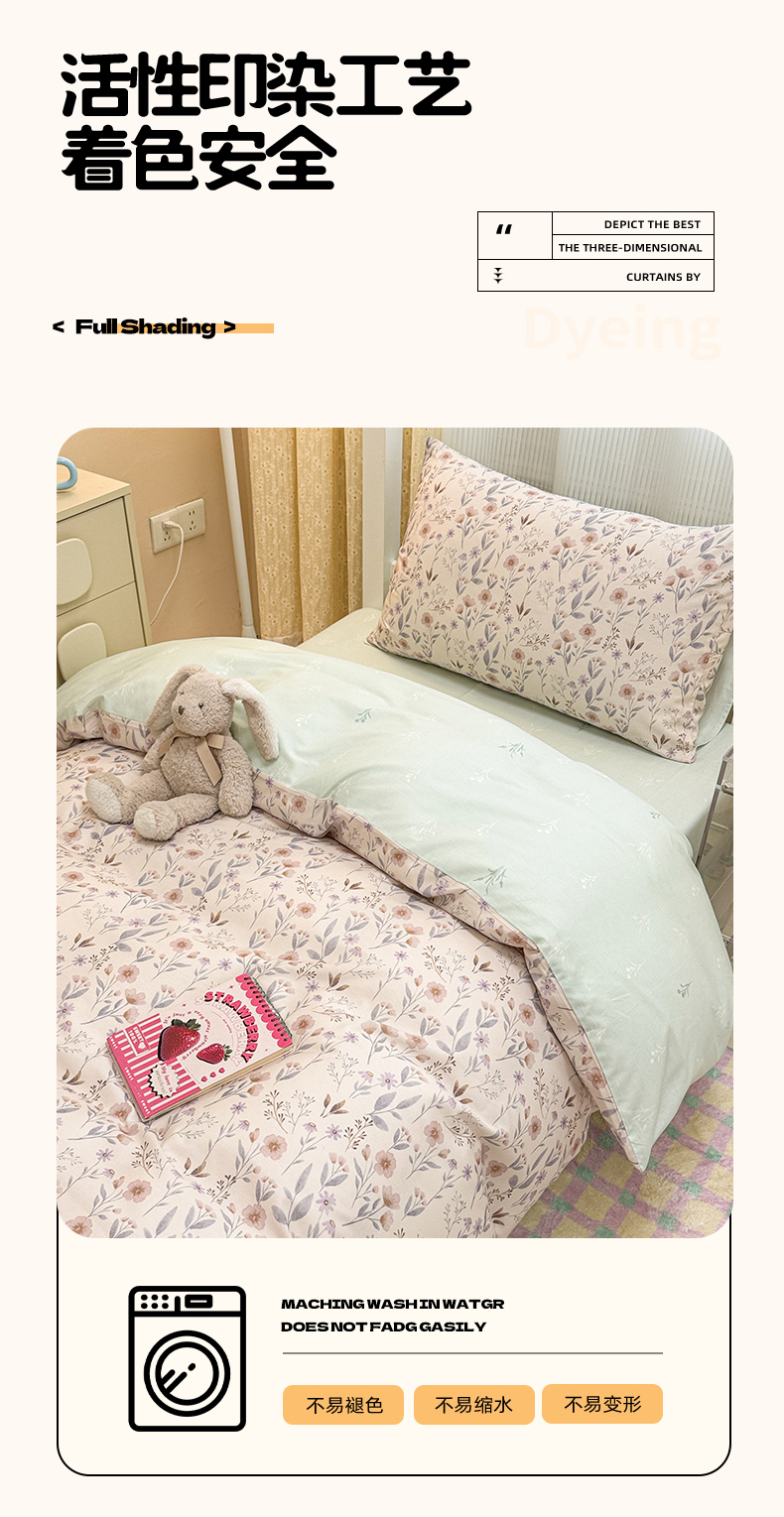 当前位置: 91家纺网 > 商品网购 > 床品套件 > 三件套 > 小懒猪 2025新款ins风小红书同款卡通小清新13372全棉纯棉AB版学生上下铺三件套 浅花枝香