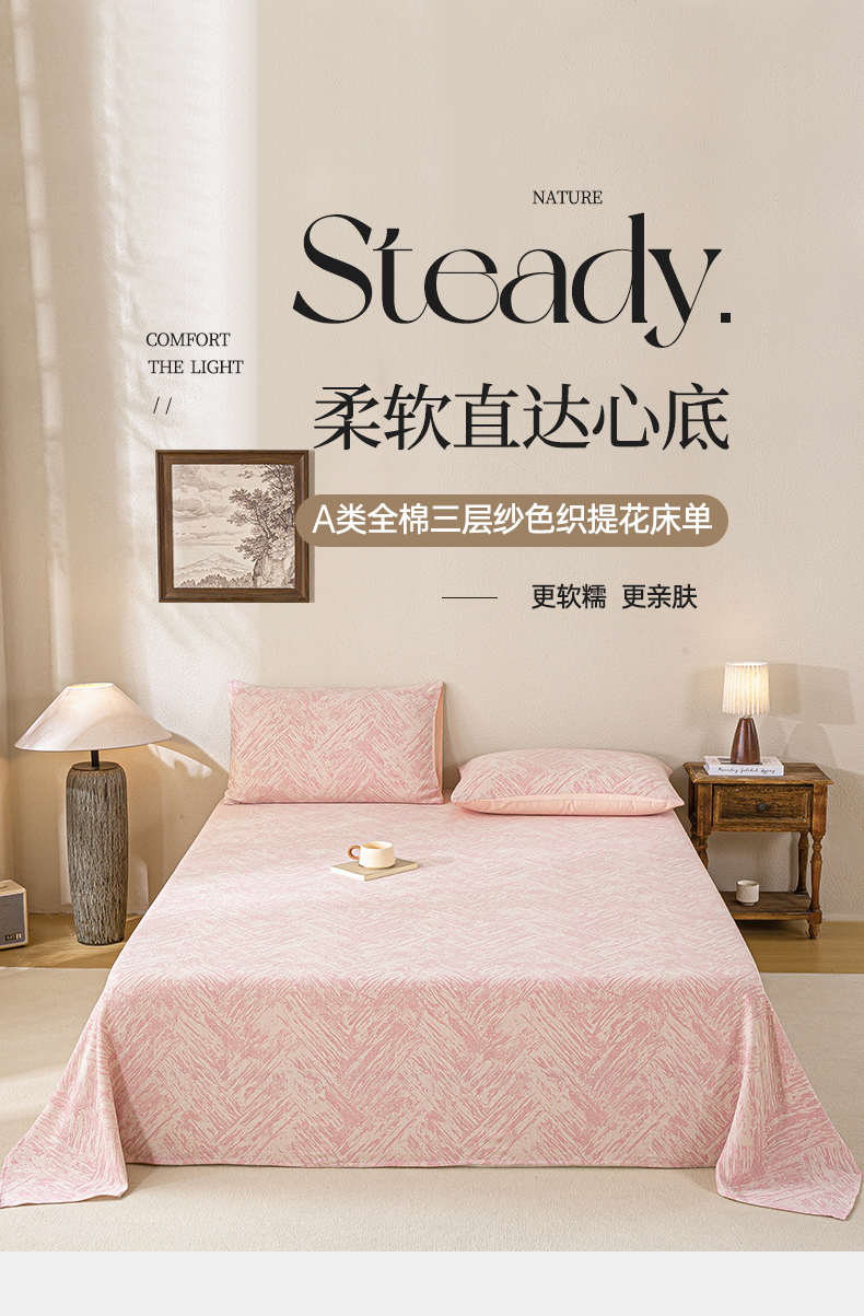 • 91家纺网 家纺一手货源 找家纺 灰鲸 2025新款全棉纯棉三层纱色织提花床单 本色-粉 91家纺网 家纺一手货源 找家纺 灰鲸 2025新款全棉纯棉三层纱色织提花床单 本色-粉