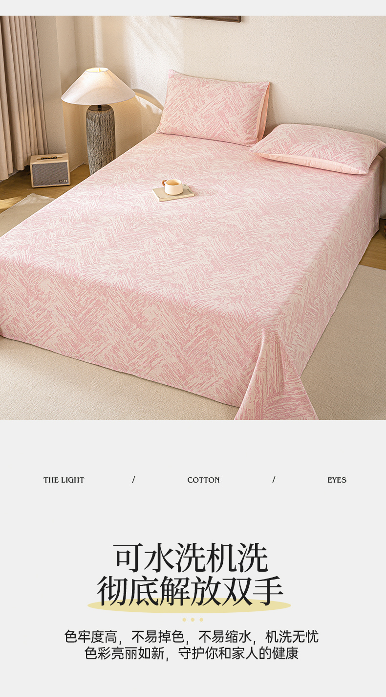 • 91家纺网 家纺一手货源 找家纺 灰鲸 2025新款全棉纯棉三层纱色织提花床单 本色-粉