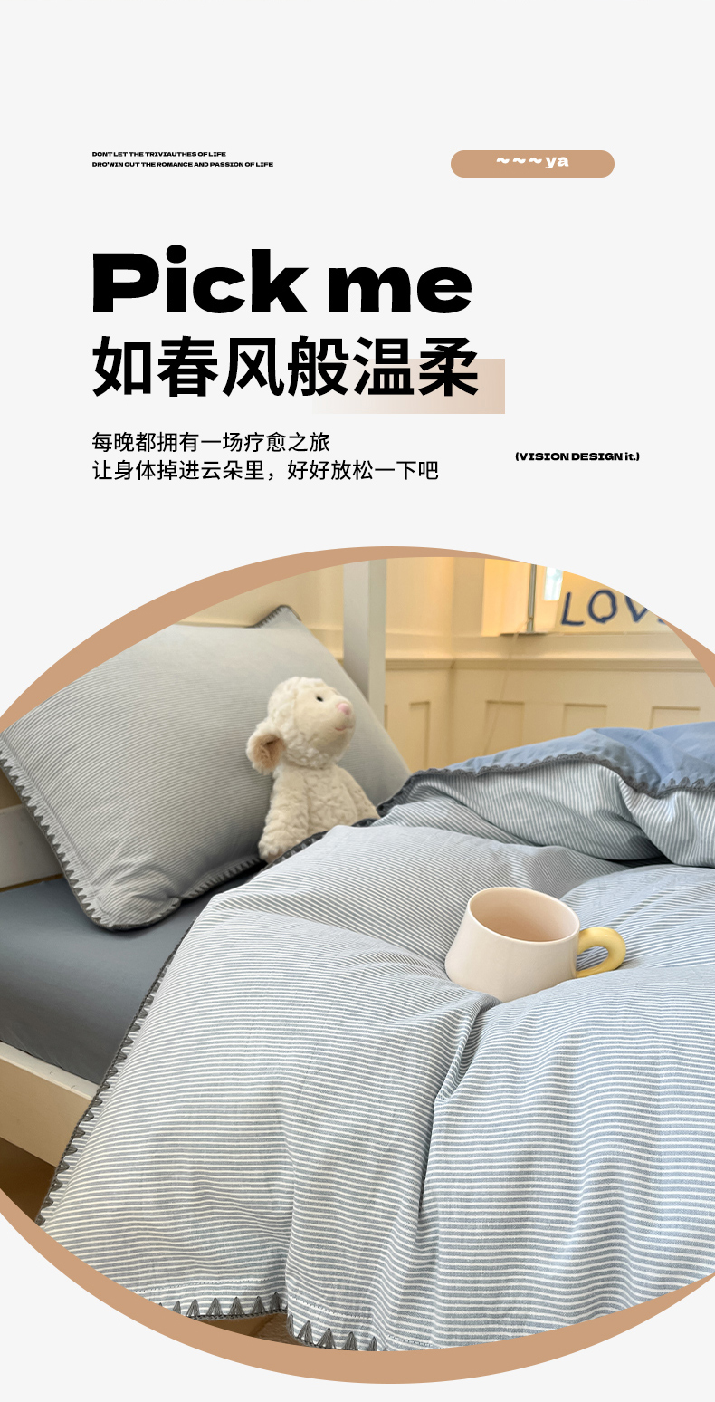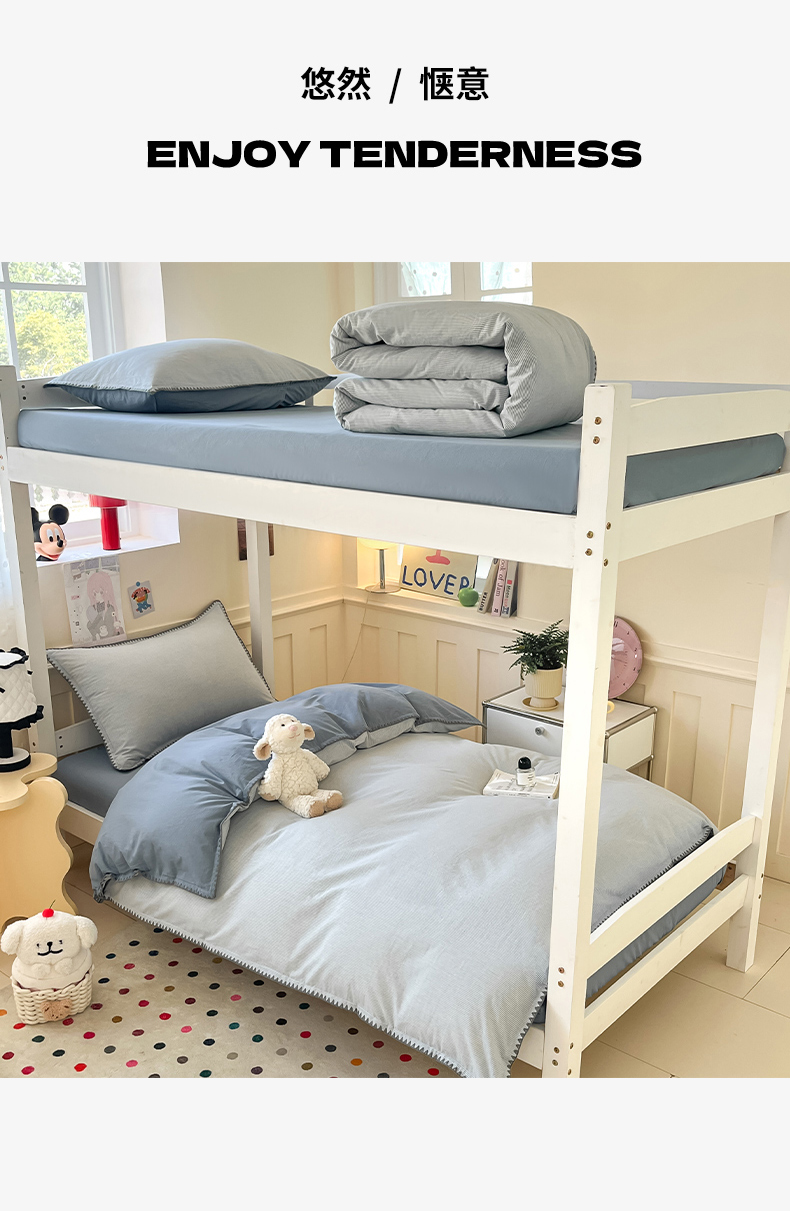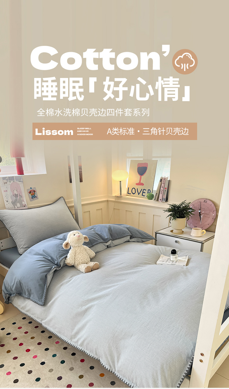 当前位置: 91家纺网 > 商品网购 > 床品套件 > 四件套 > 全棉普通四件套 > 蓝邻家纺 2025新款全棉水洗棉贝壳边三件套四件套-学生床 兰竖条