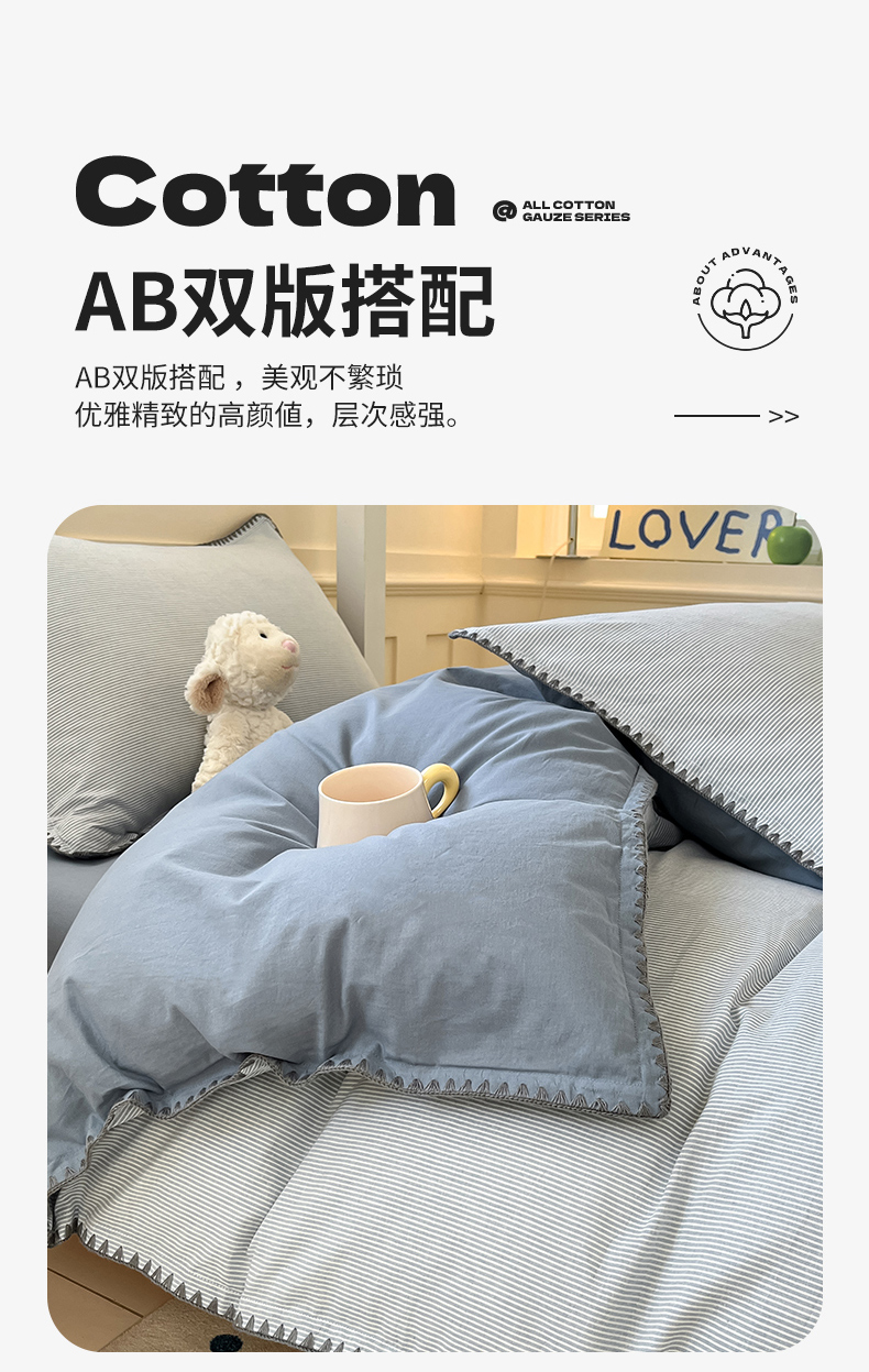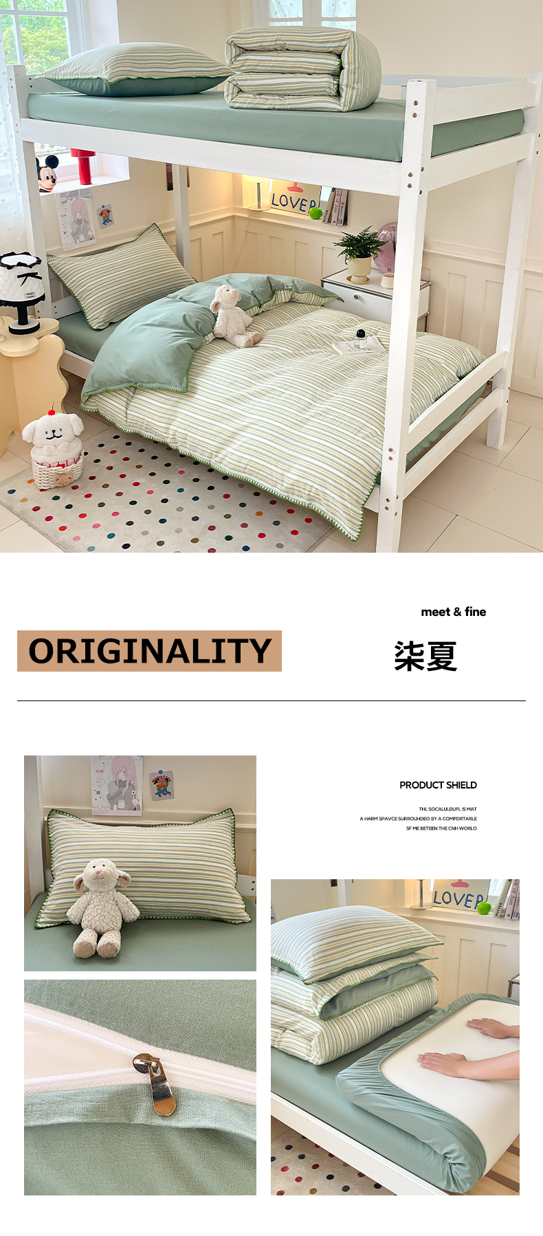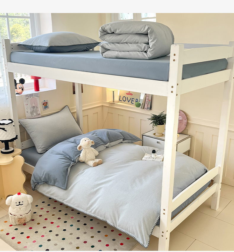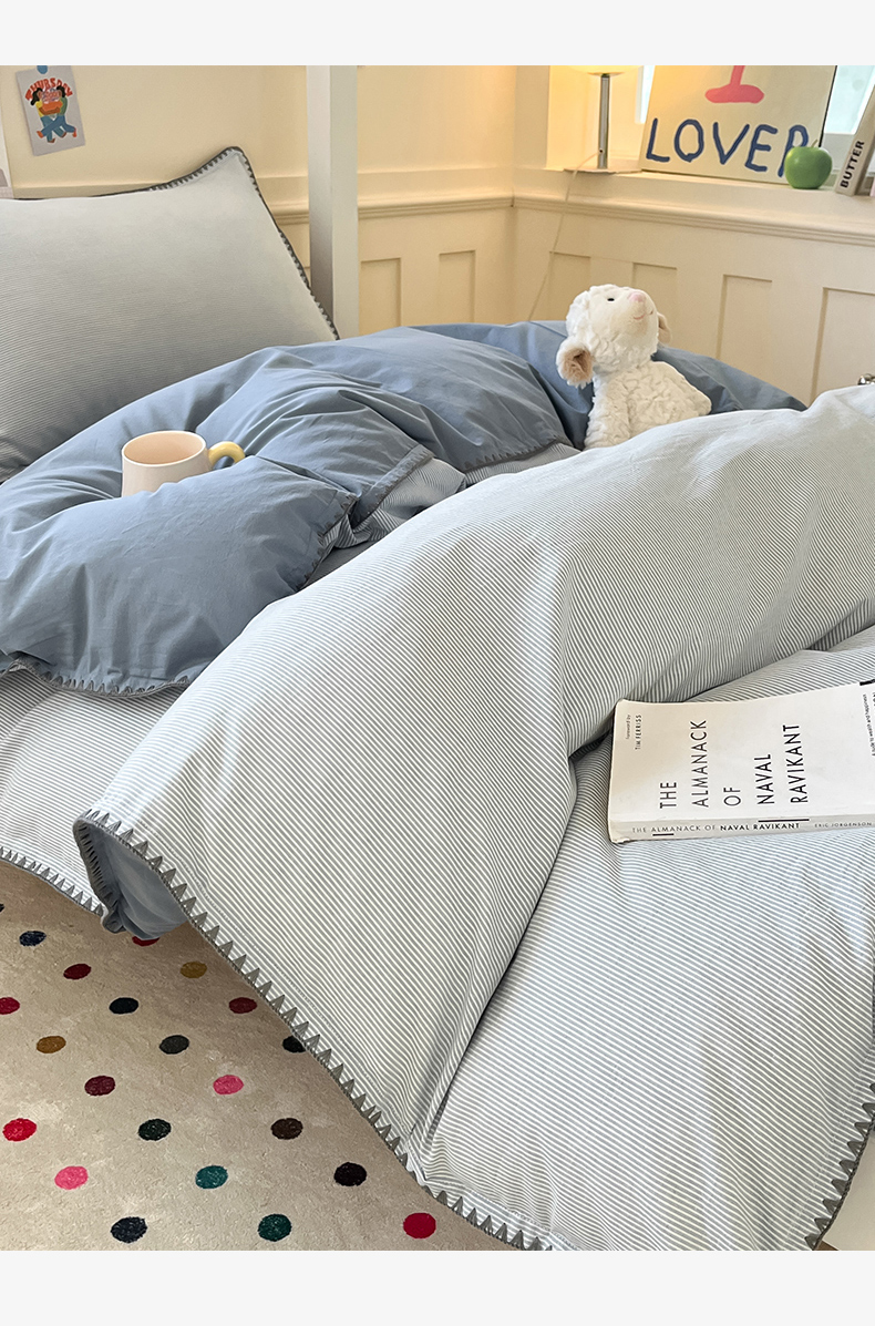 当前位置: 91家纺网 > 商品网购 > 床品套件 > 四件套 > 全棉普通四件套 > 蓝邻家纺 2025新款全棉水洗棉贝壳边三件套四件套-学生床 兰竖条