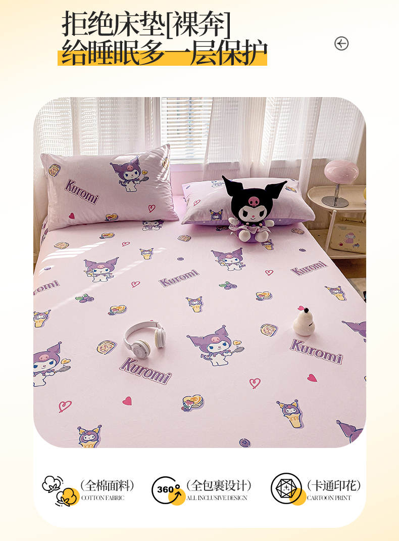 名兮家居 2025新款全棉纯棉13372经典奥特曼-三丽鸥成人床床笠单件单床笠【含防伪标】 甜筒库洛米