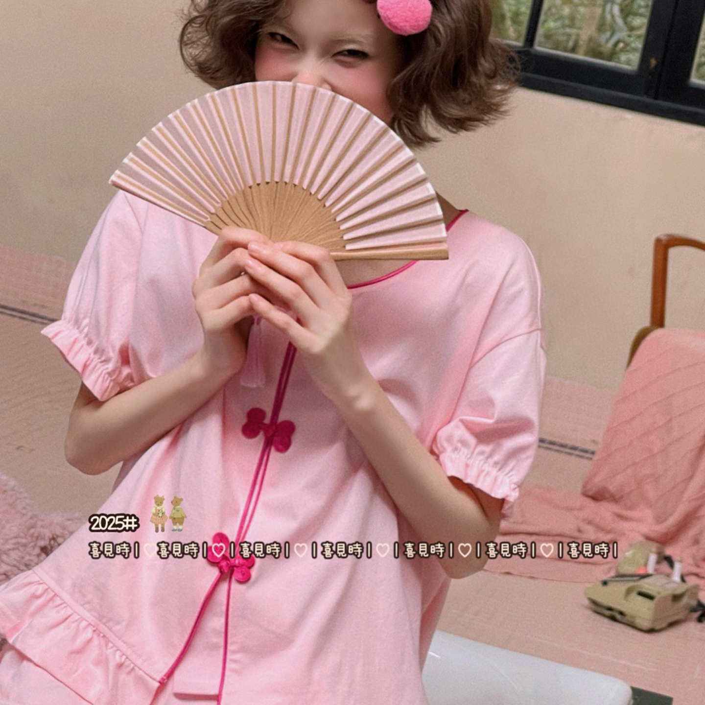 当前位置: 91家纺网 > 商品网购 > 居家日用 > 睡衣/家居服套装 > 妍景家居生活馆 2025新款小熊家-新中式风盘口套装 黄色