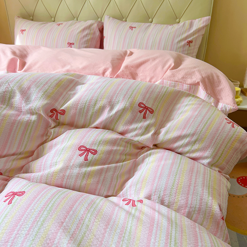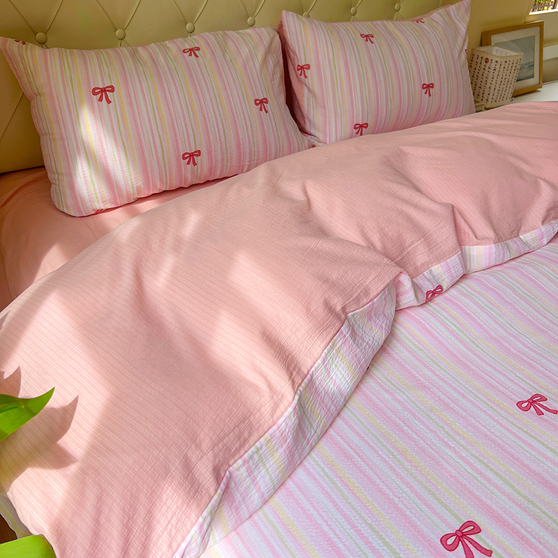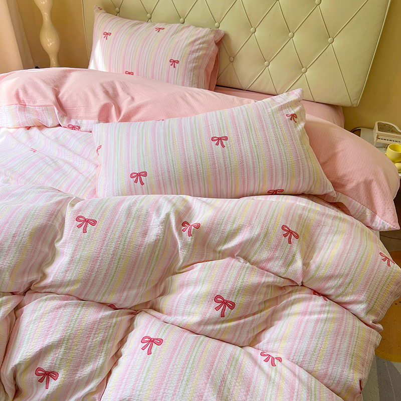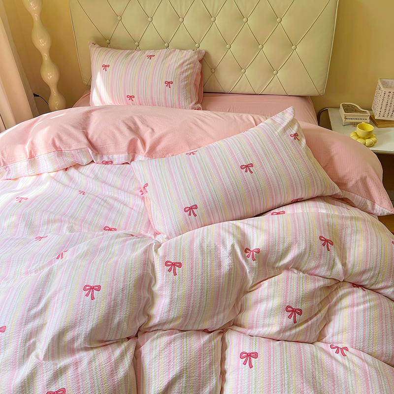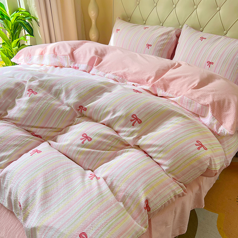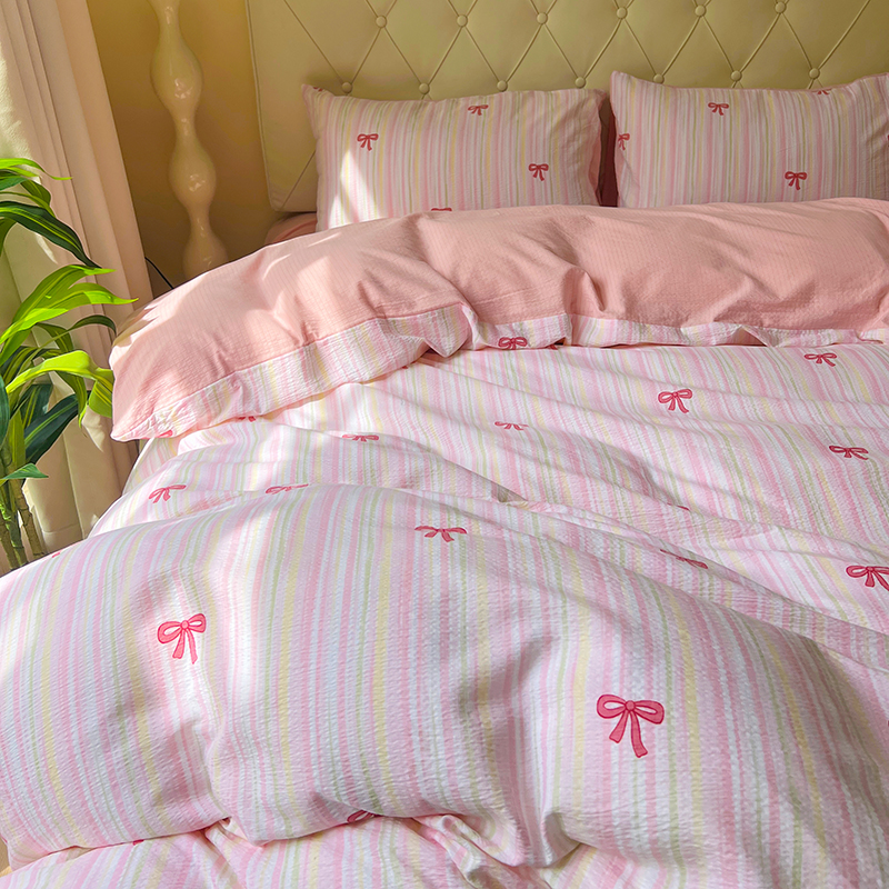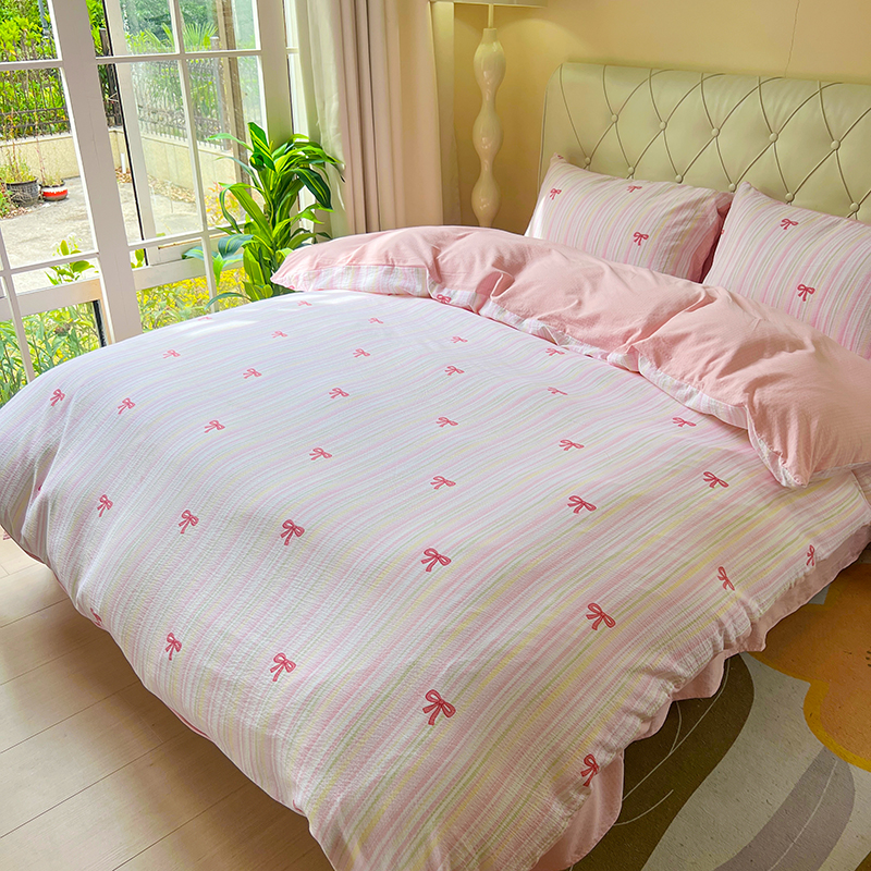 当前位置: 91家纺网 > 商品网购 > 床品套件 > 四件套 > 双层纱四件套 > 森璐家纺 2025新款针织双层纱四件套-系列二 精致蝴蝶结