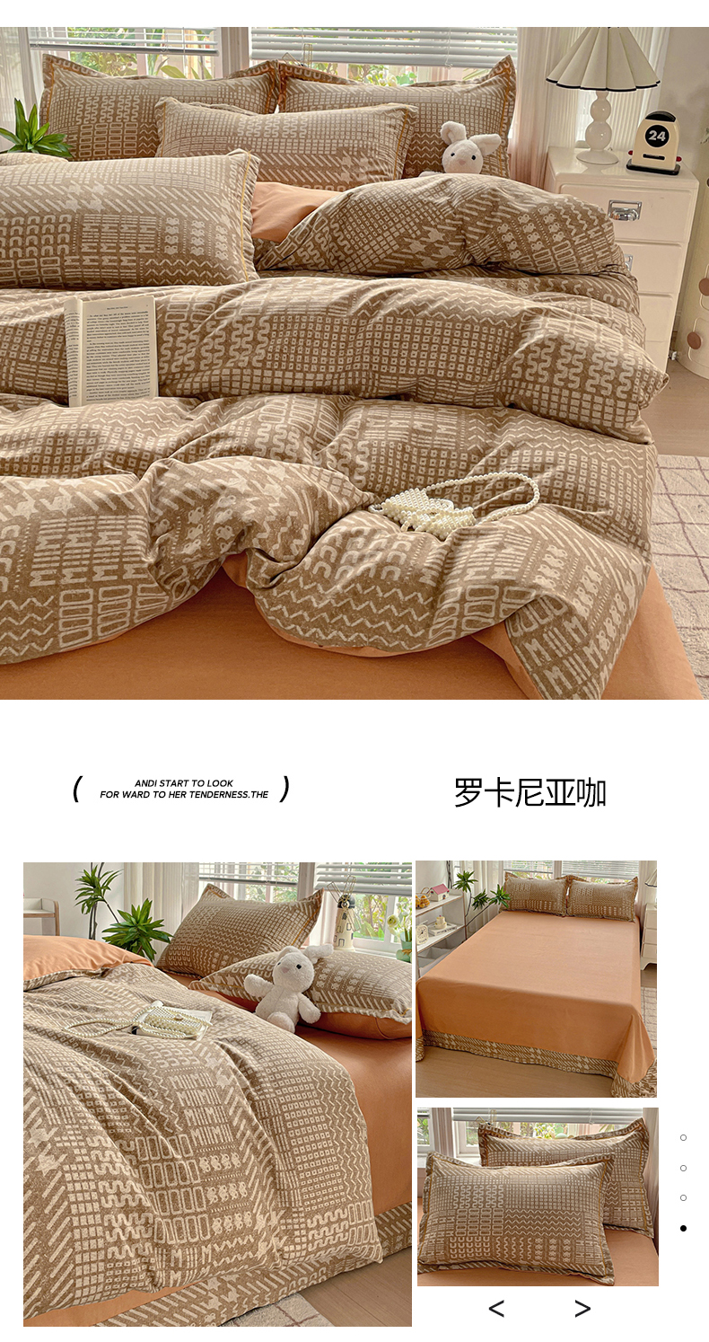 当前位置: 91家纺网 > 商品网购 > 床品套件 > 四件套 > 磨毛活性四件套 > 纽缦家纺 2025新款全棉纯棉磨毛印花四件套 叶之舞咖