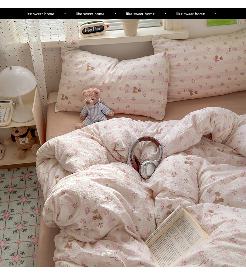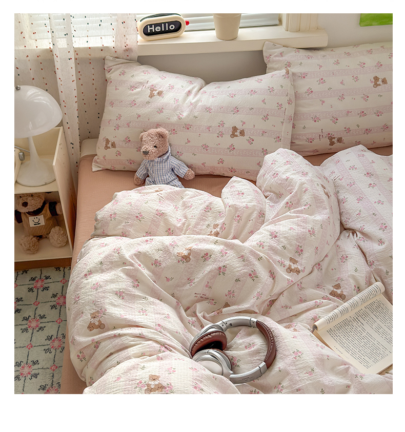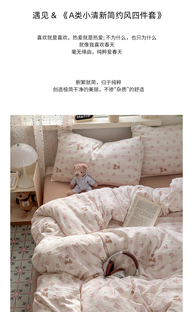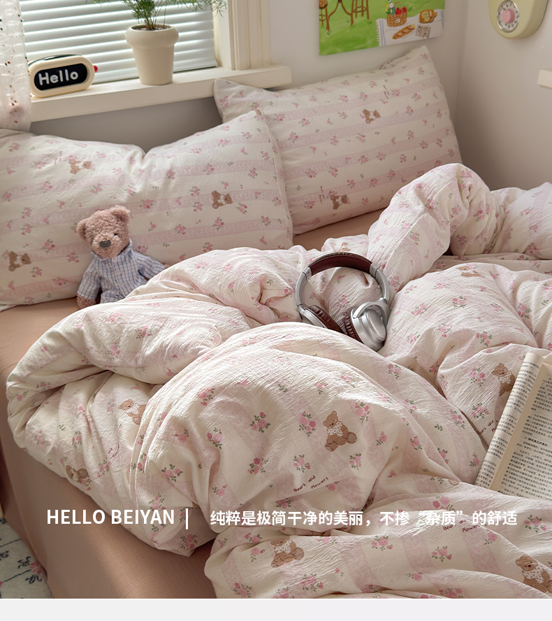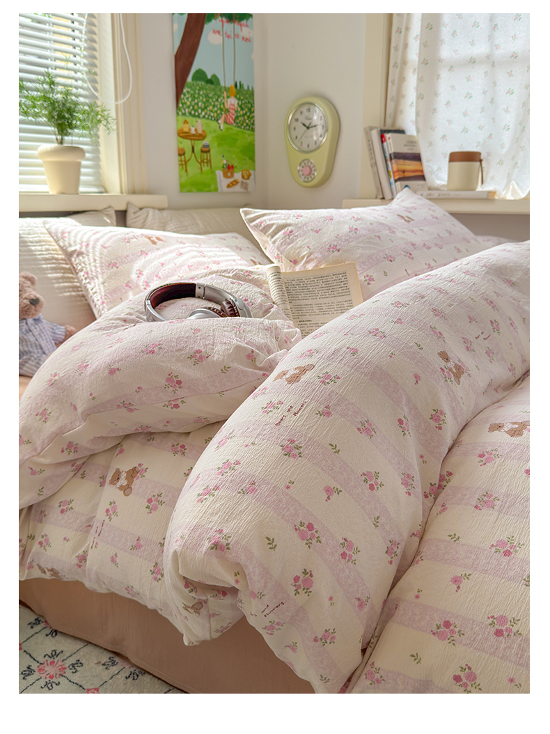 当前位置: 91家纺网 > 商品网购 > 床品套件 > 四件套 > 双层纱四件套 > 沐芷 2025 A类木棉双层纱简约风床上四件套柔软手感宿舍三件套 玫瑰熊