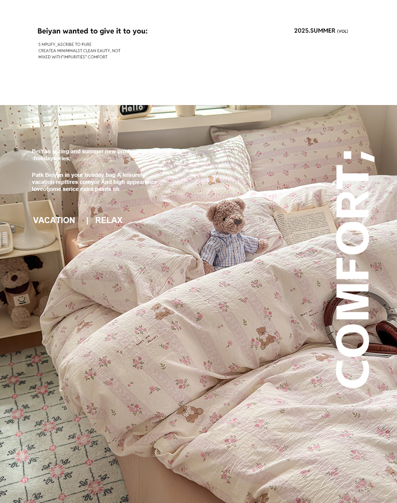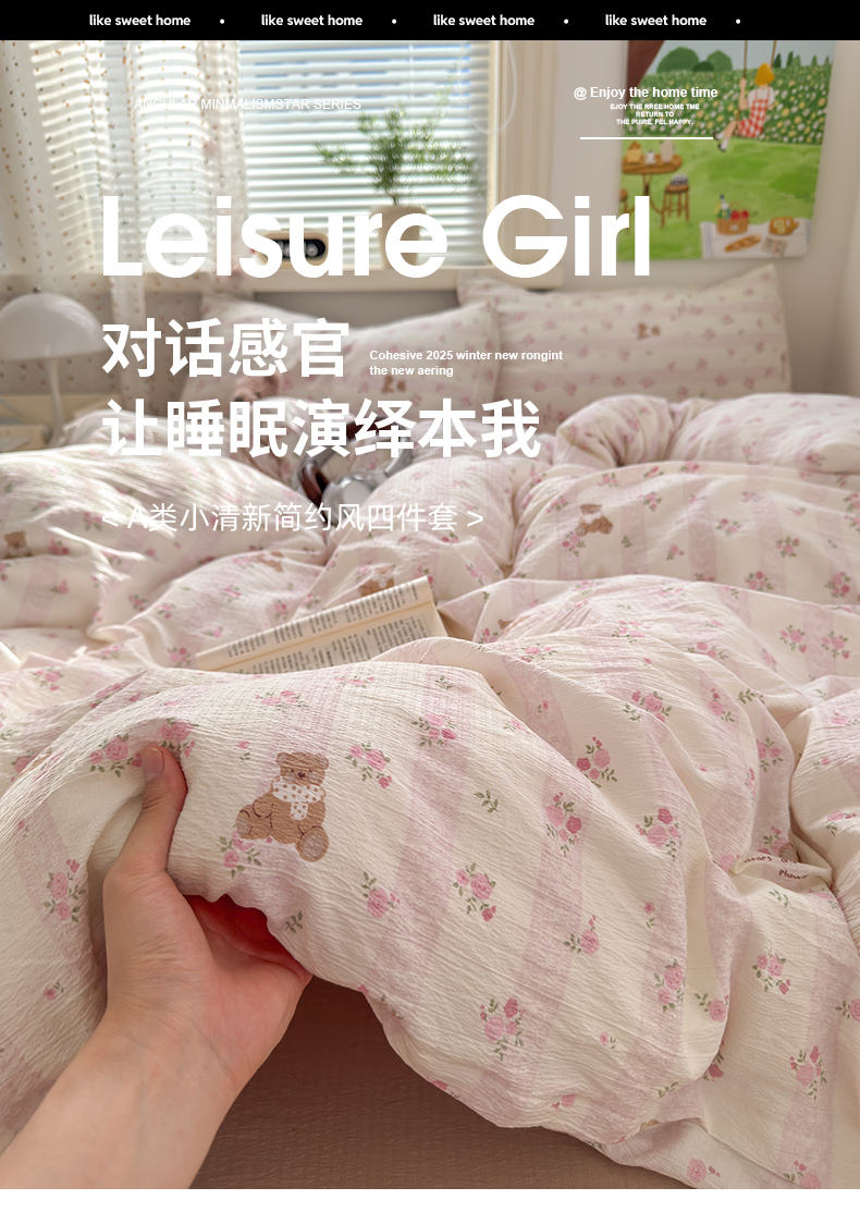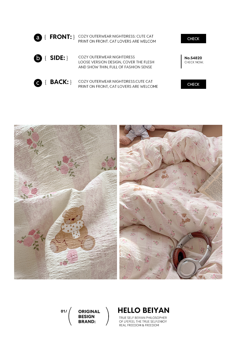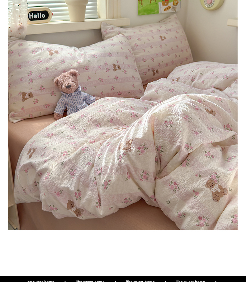 当前位置: 91家纺网 > 商品网购 > 床品套件 > 四件套 > 双层纱四件套 > 沐芷 2025 A类木棉双层纱简约风床上四件套柔软手感宿舍三件套 玫瑰熊