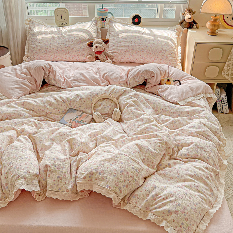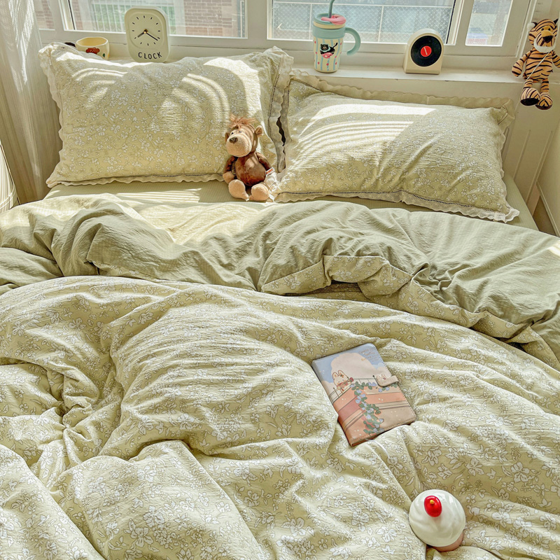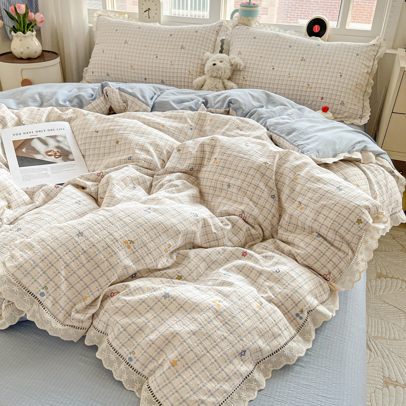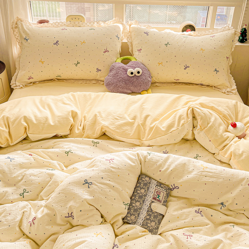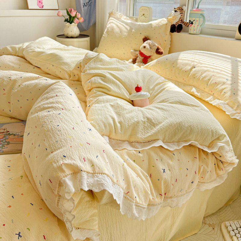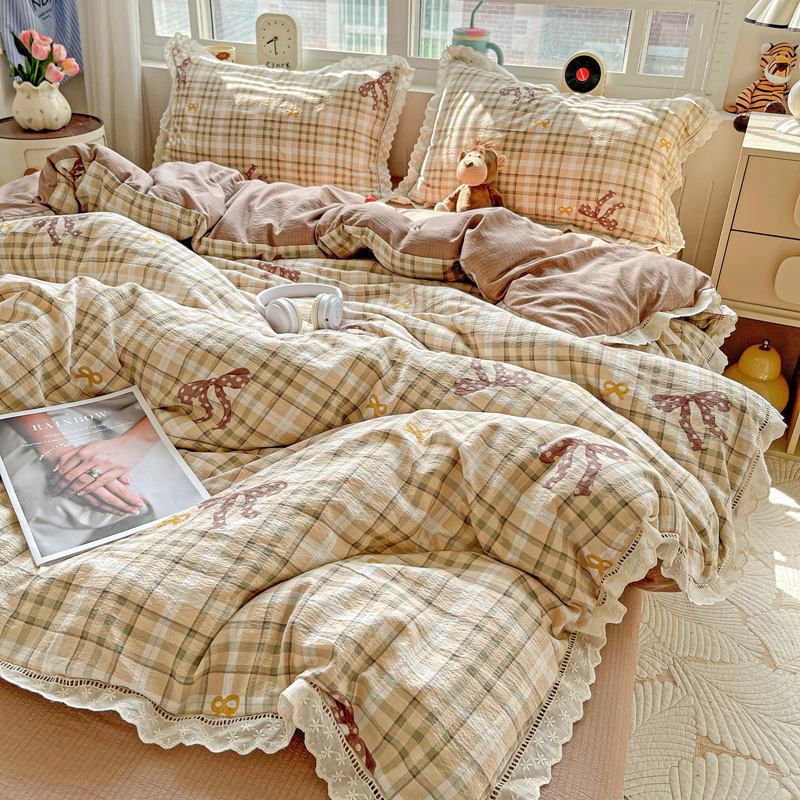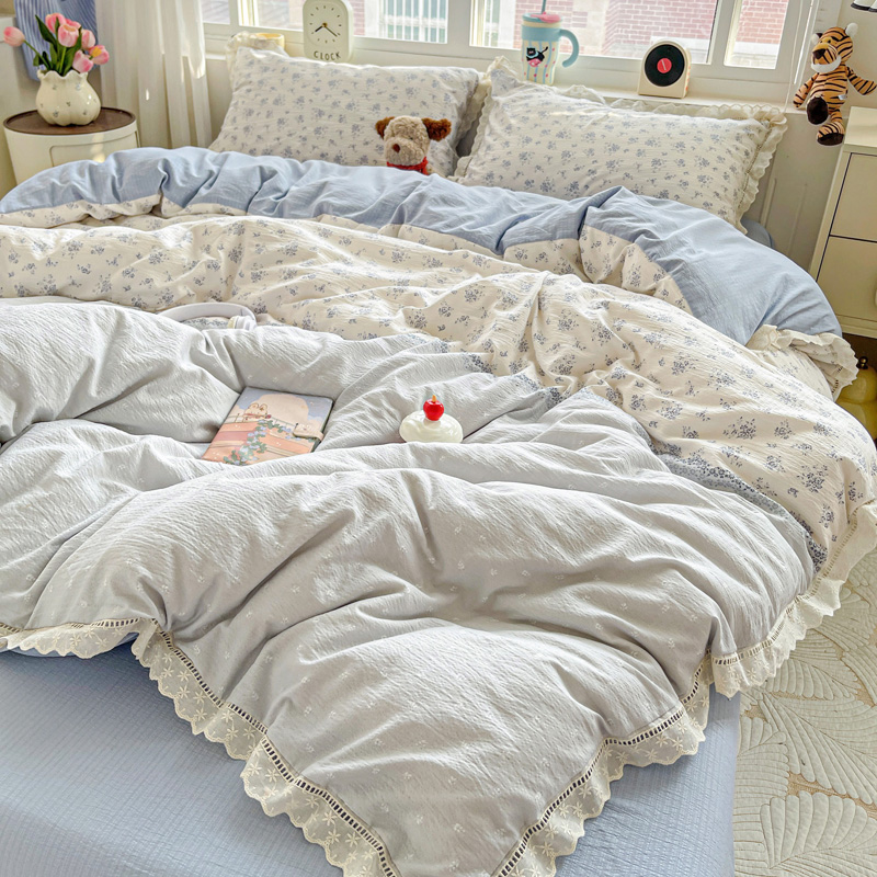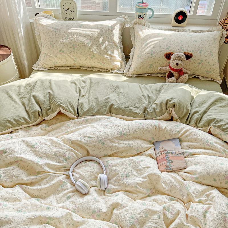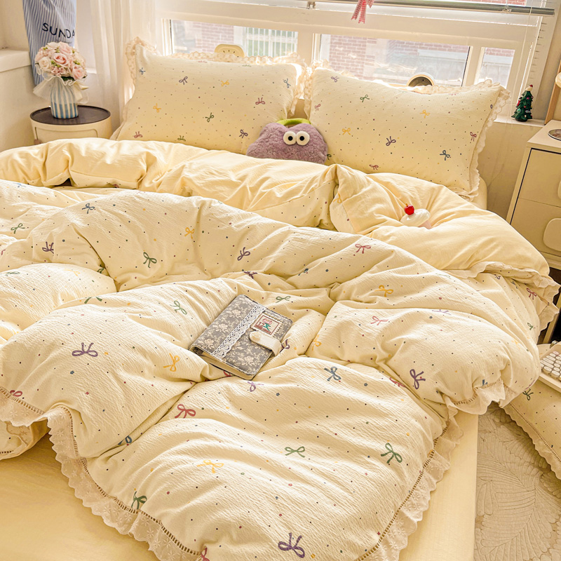 典曼家纺 2025新款云感皱皱双层纱花边四件套 薄荷微凉