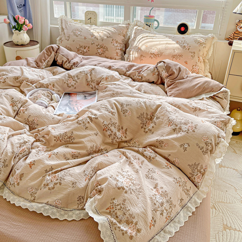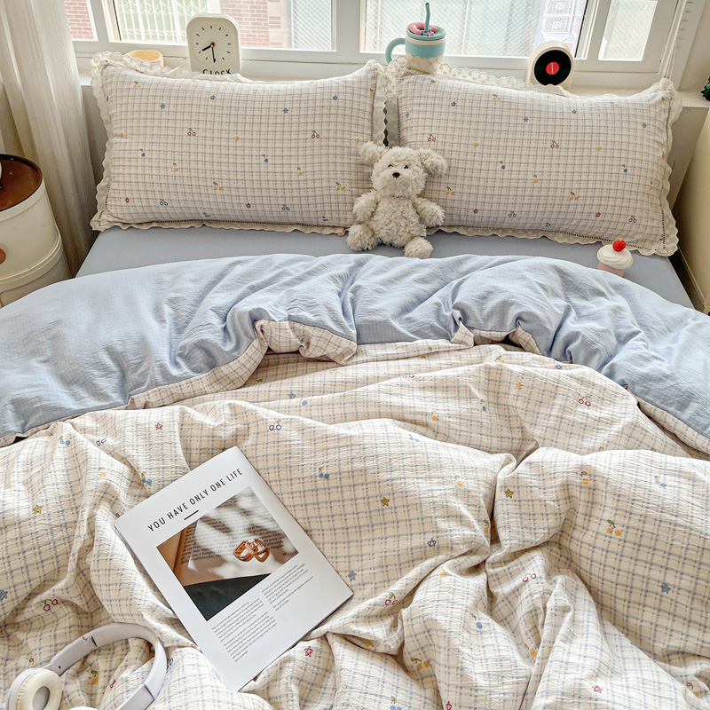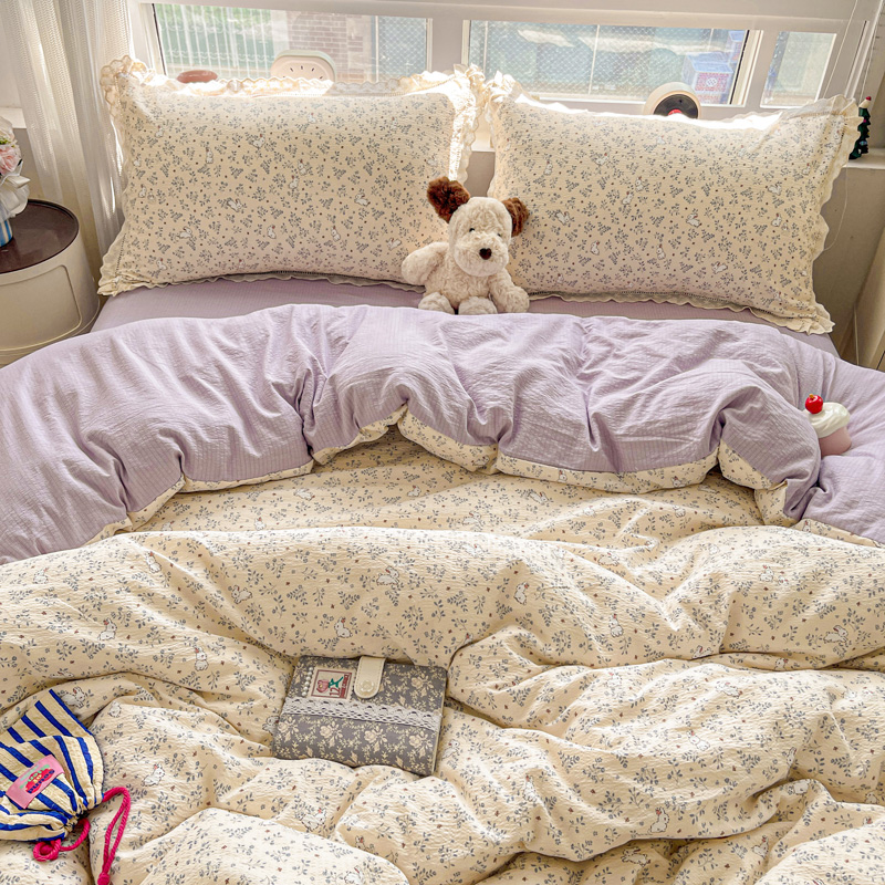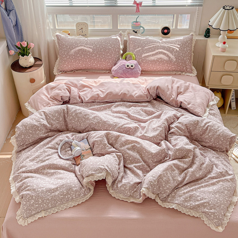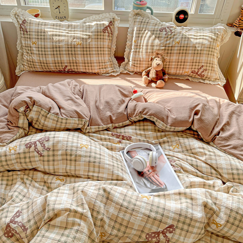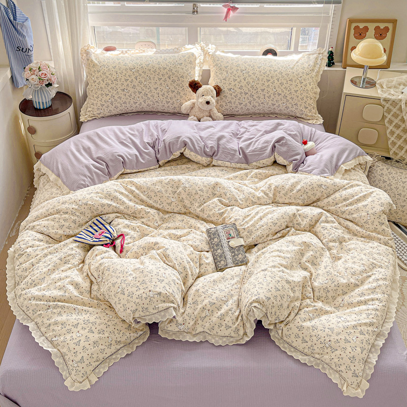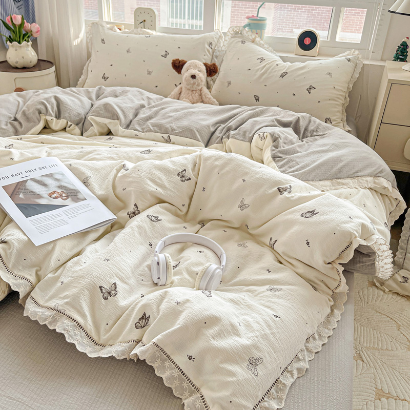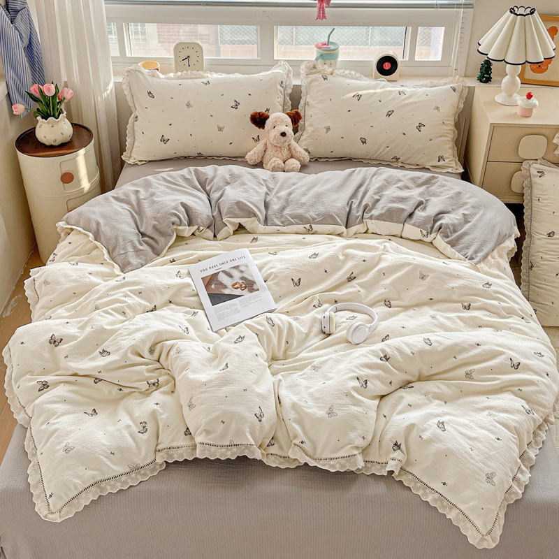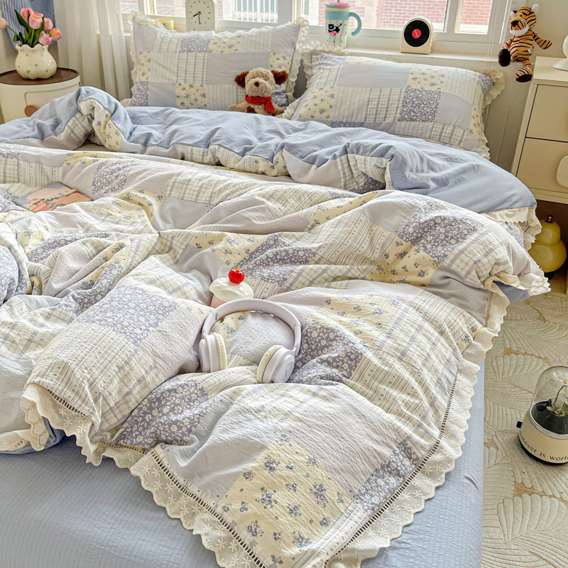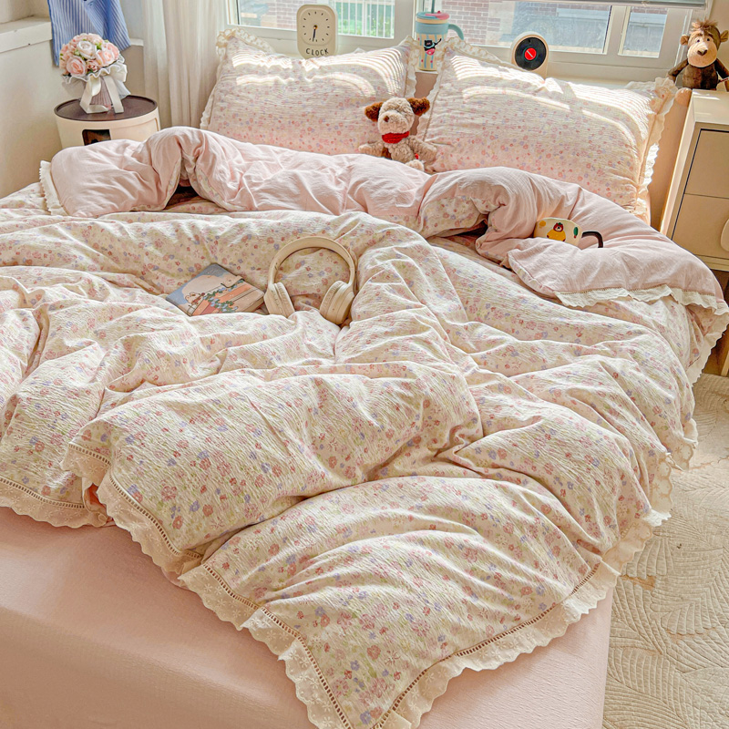 典曼家纺 2025新款云感皱皱双层纱花边四件套 薄荷微凉