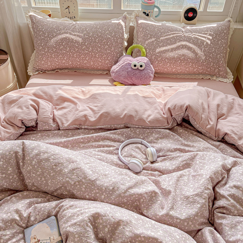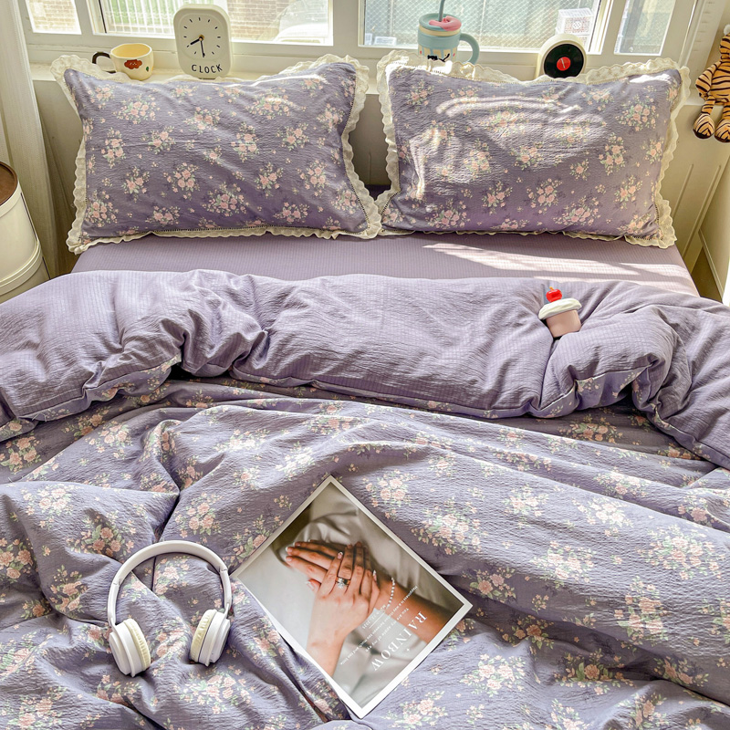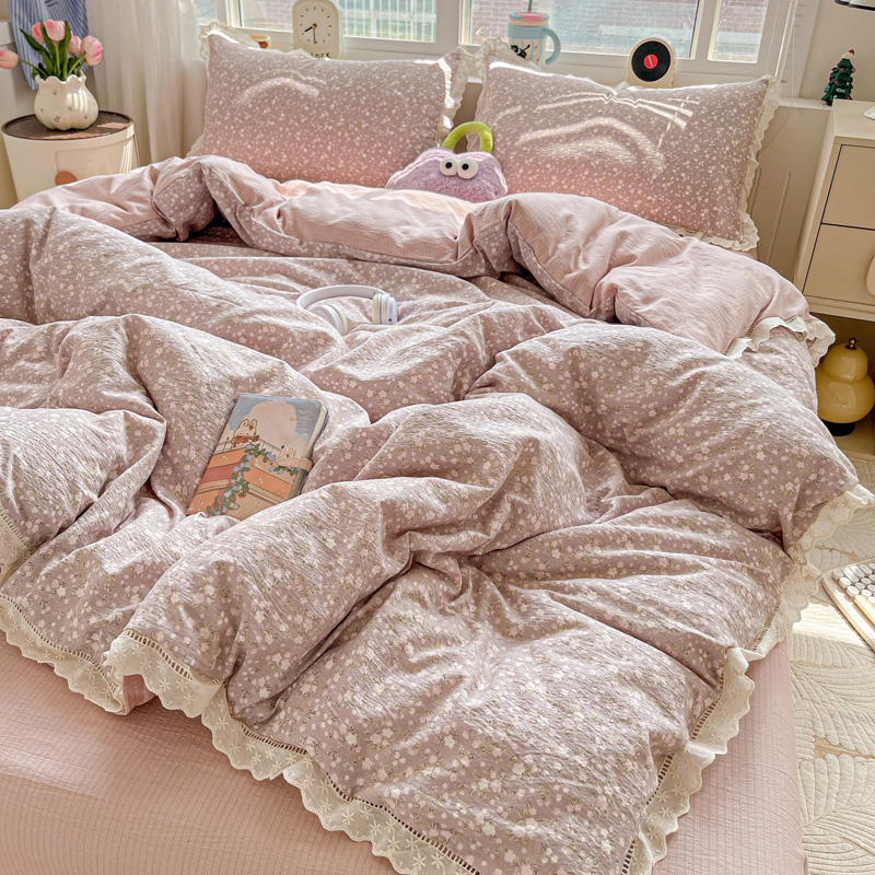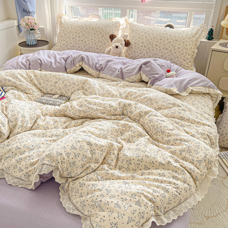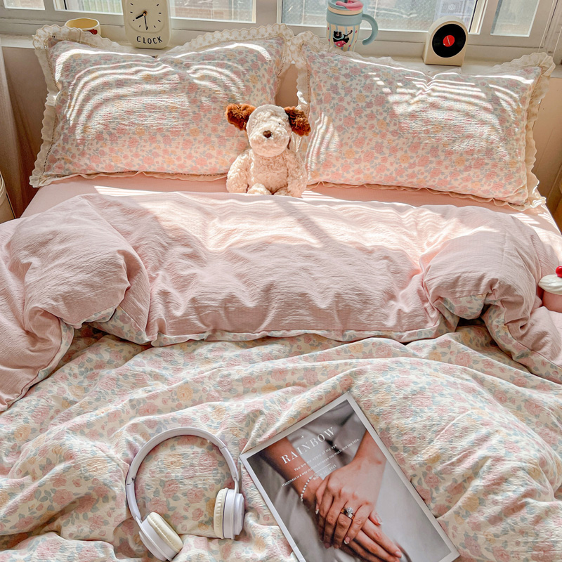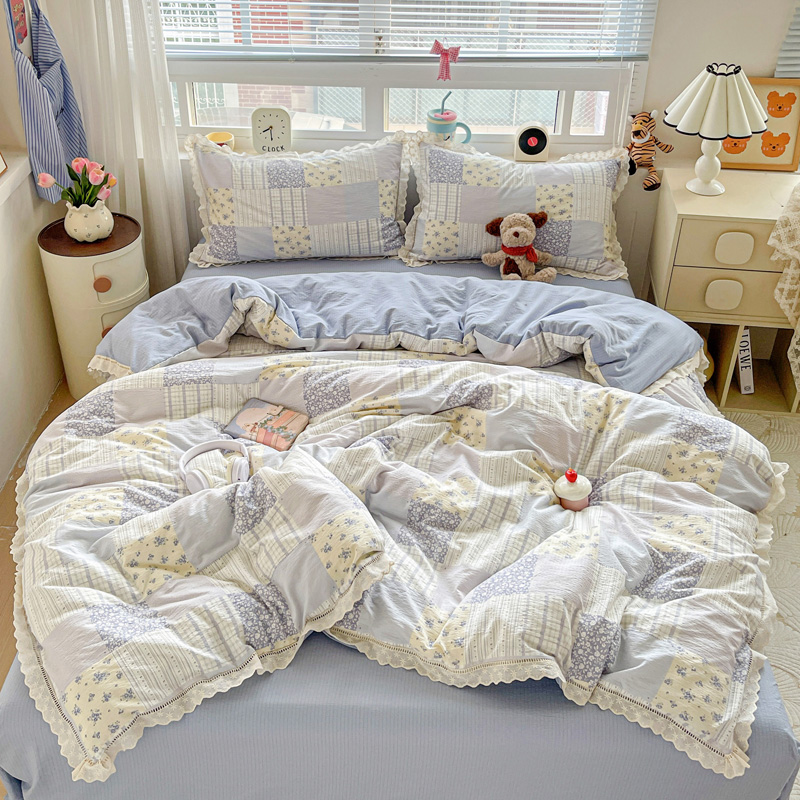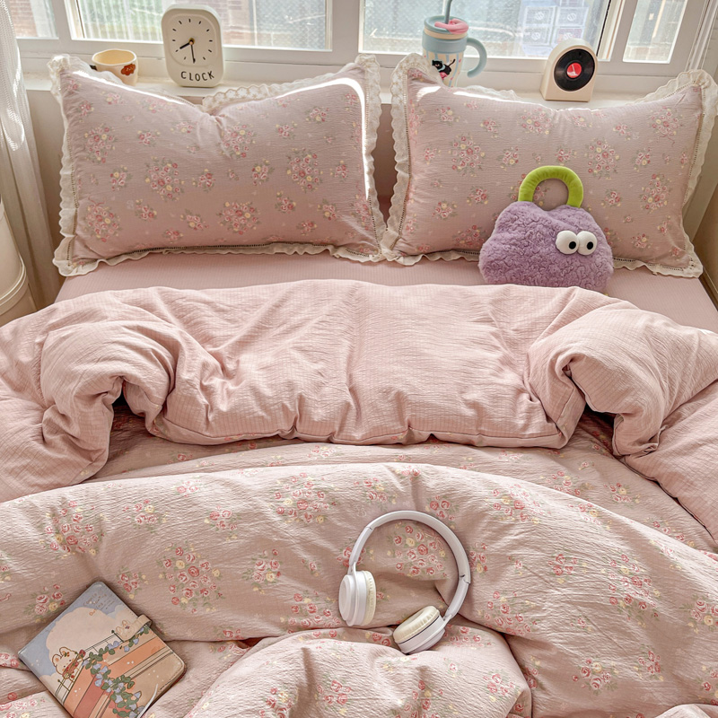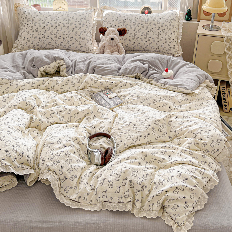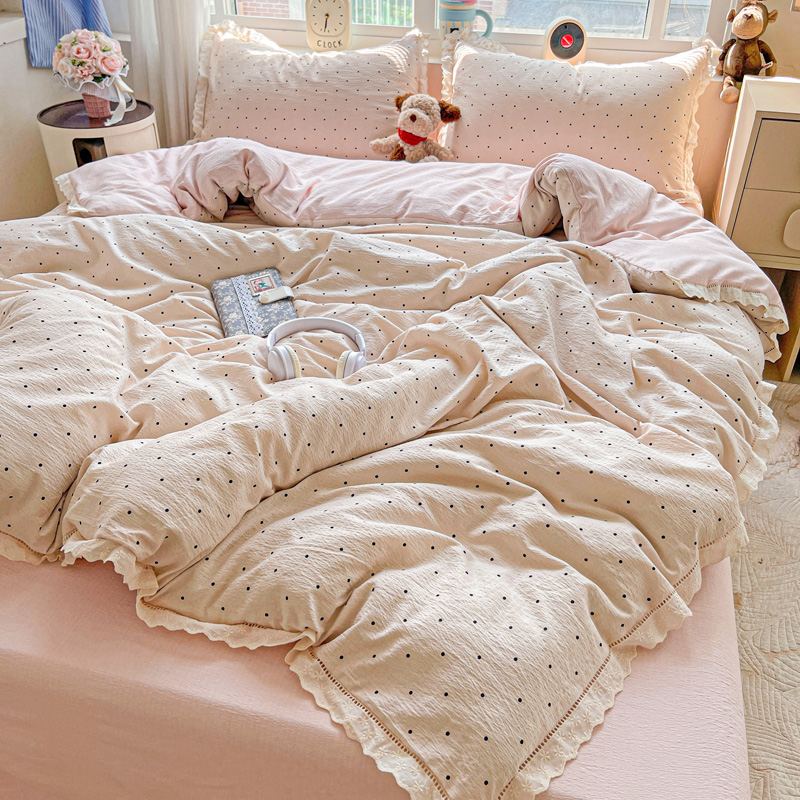 典曼家纺 2025新款云感皱皱双层纱花边四件套 薄荷微凉