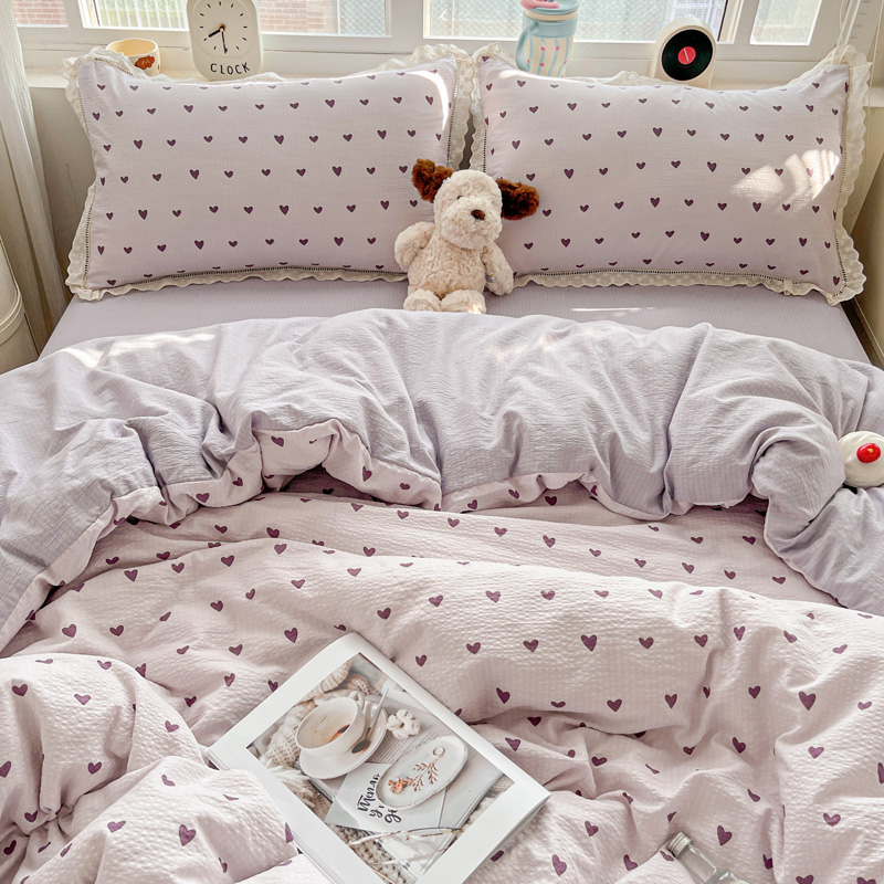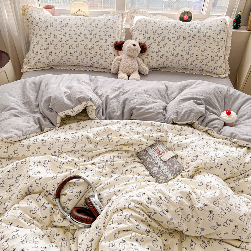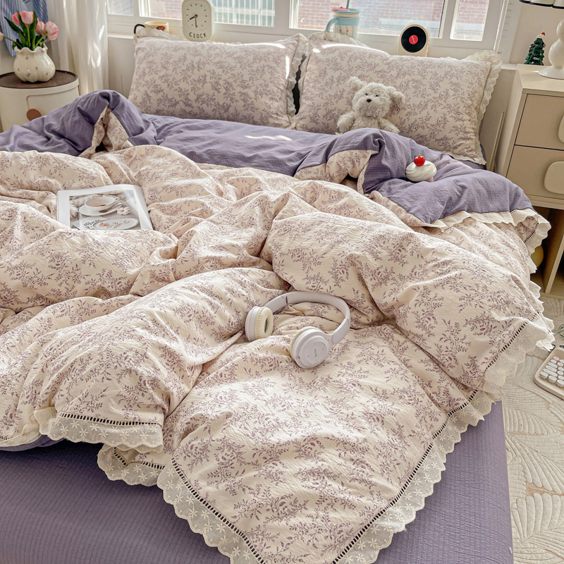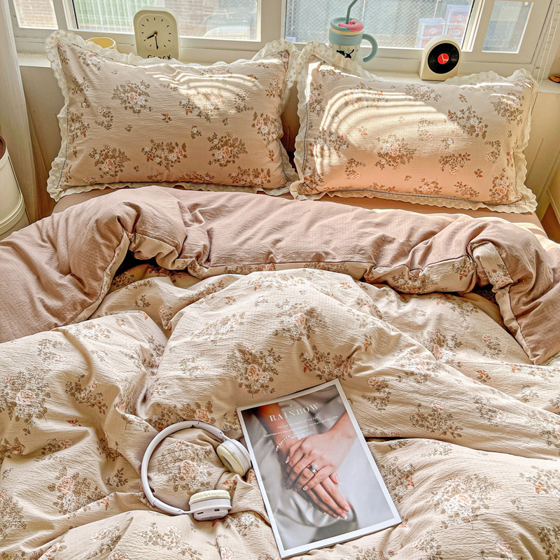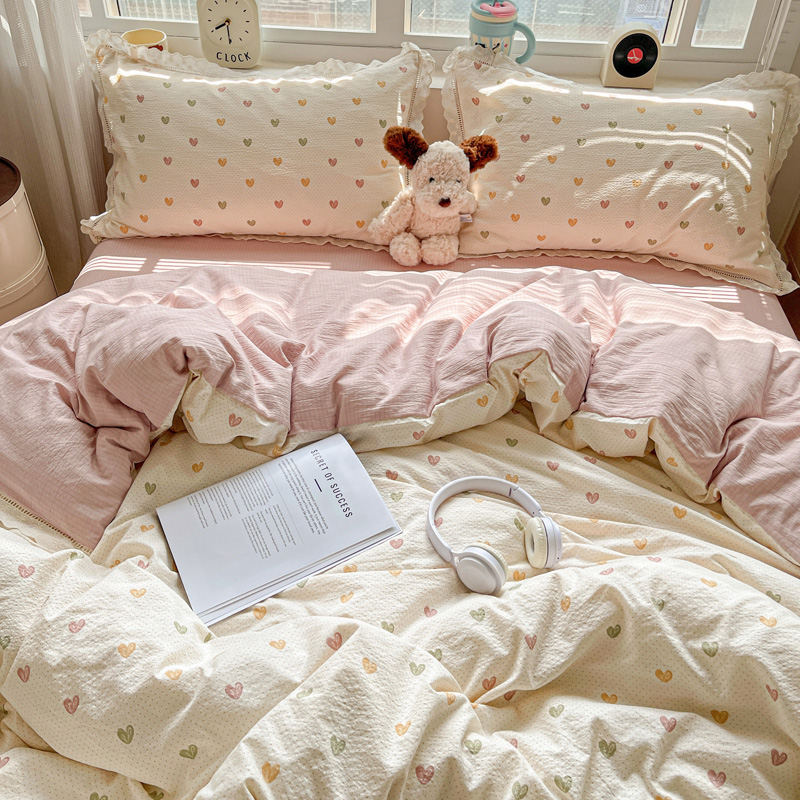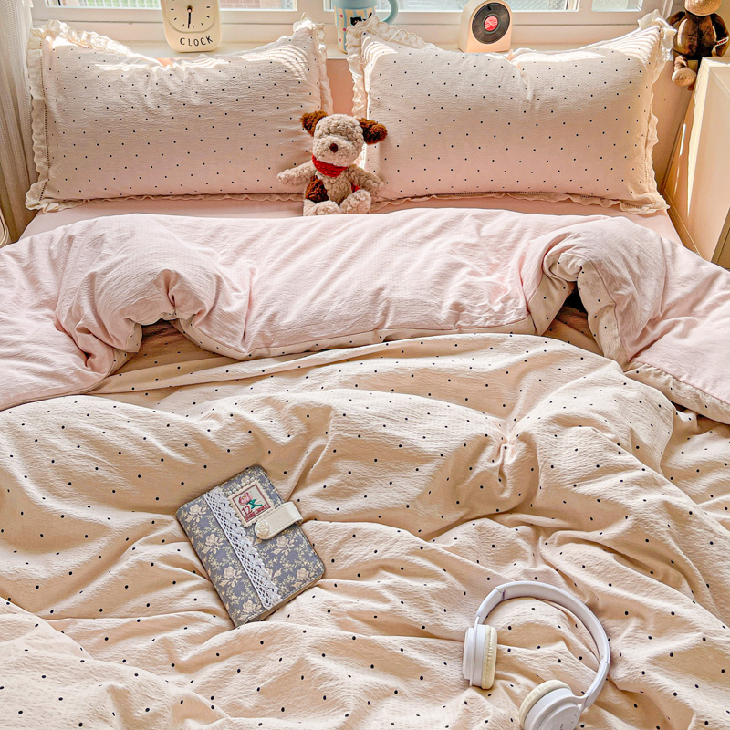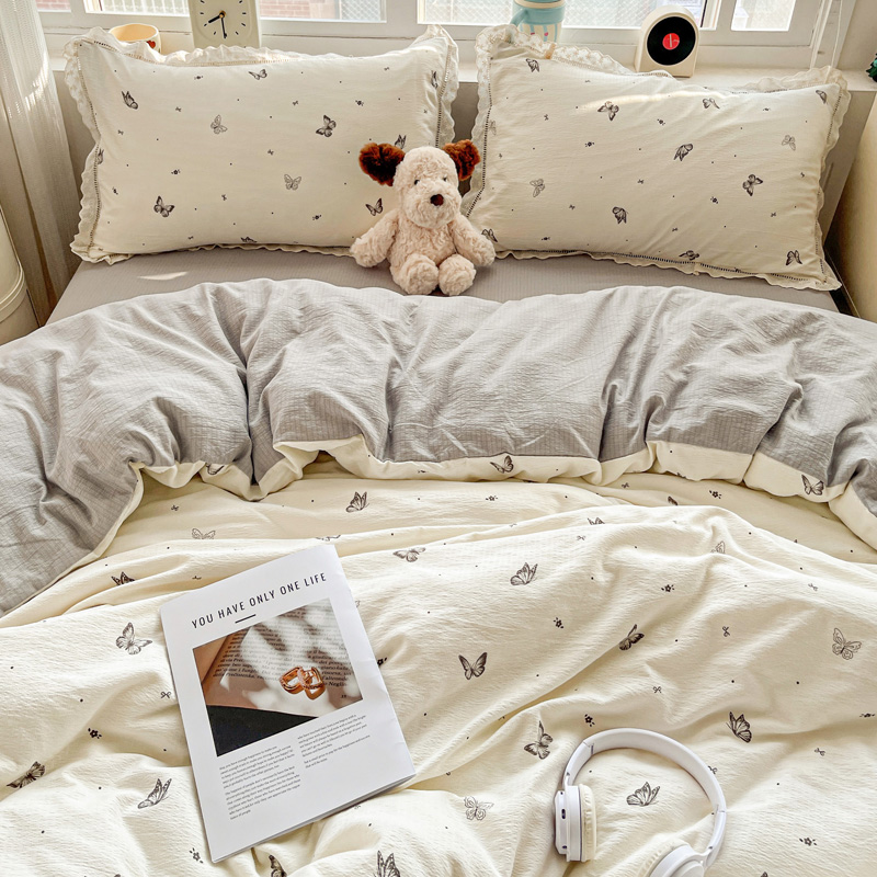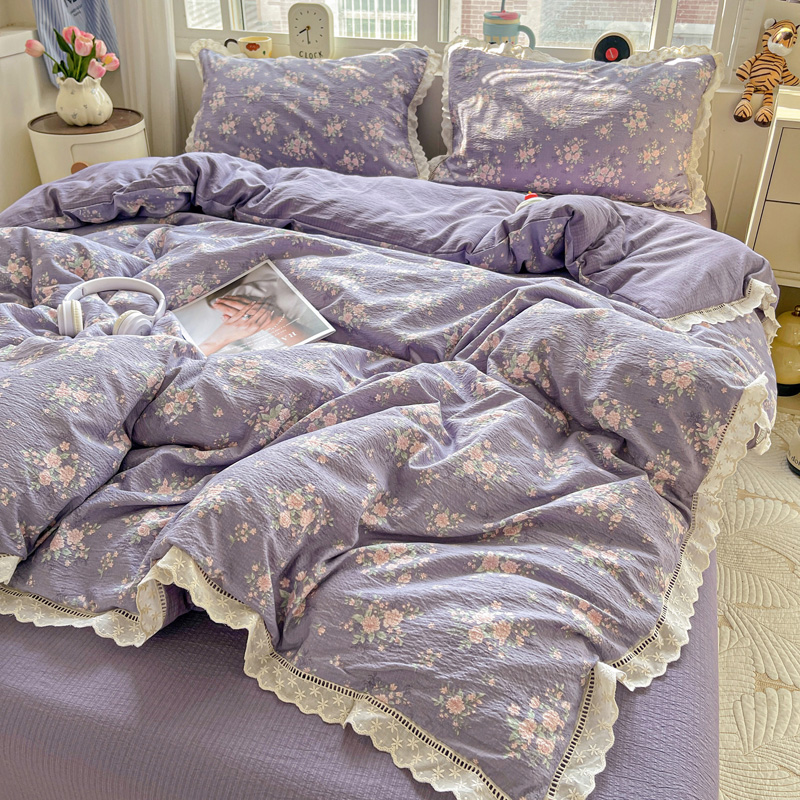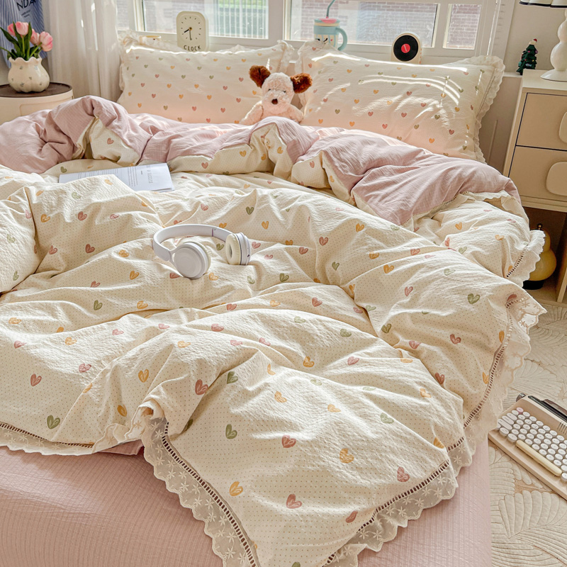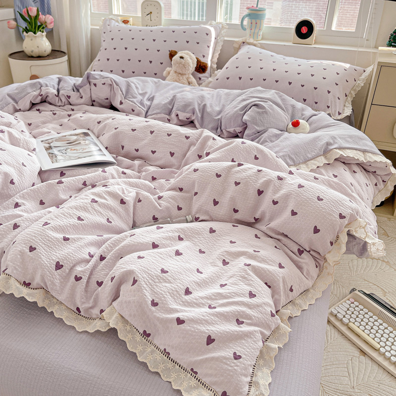 典曼家纺 2025新款云感皱皱双层纱花边四件套 薄荷微凉