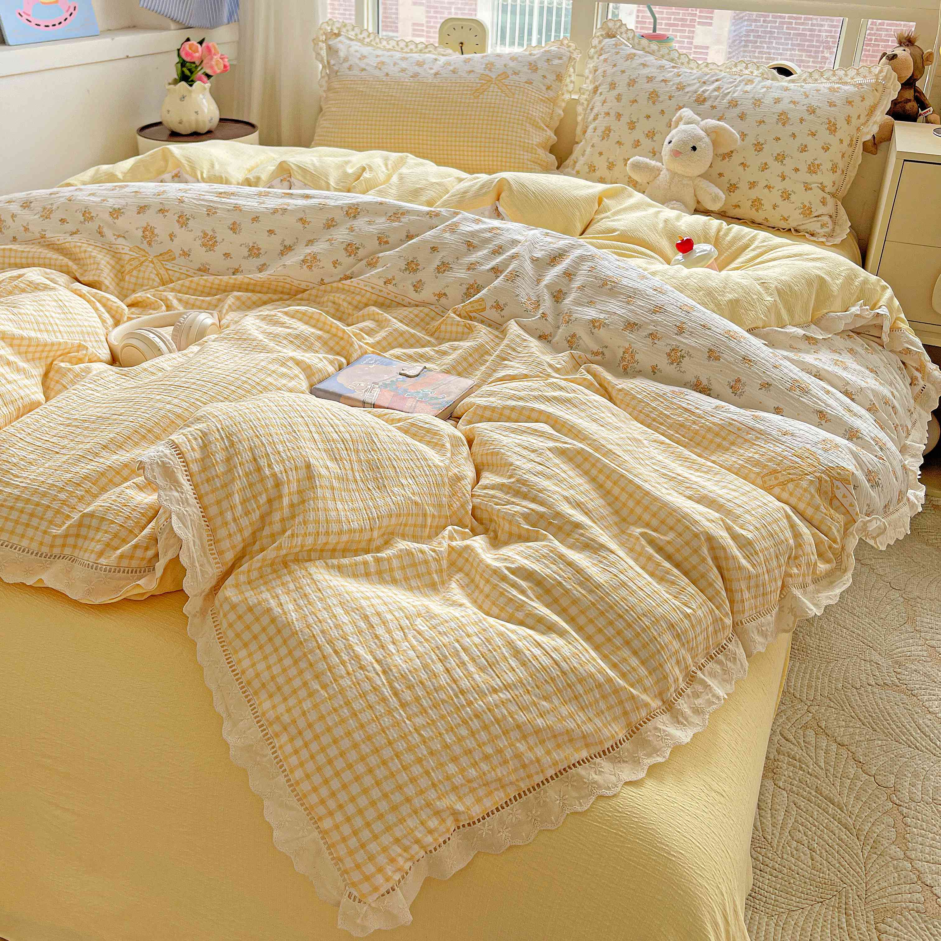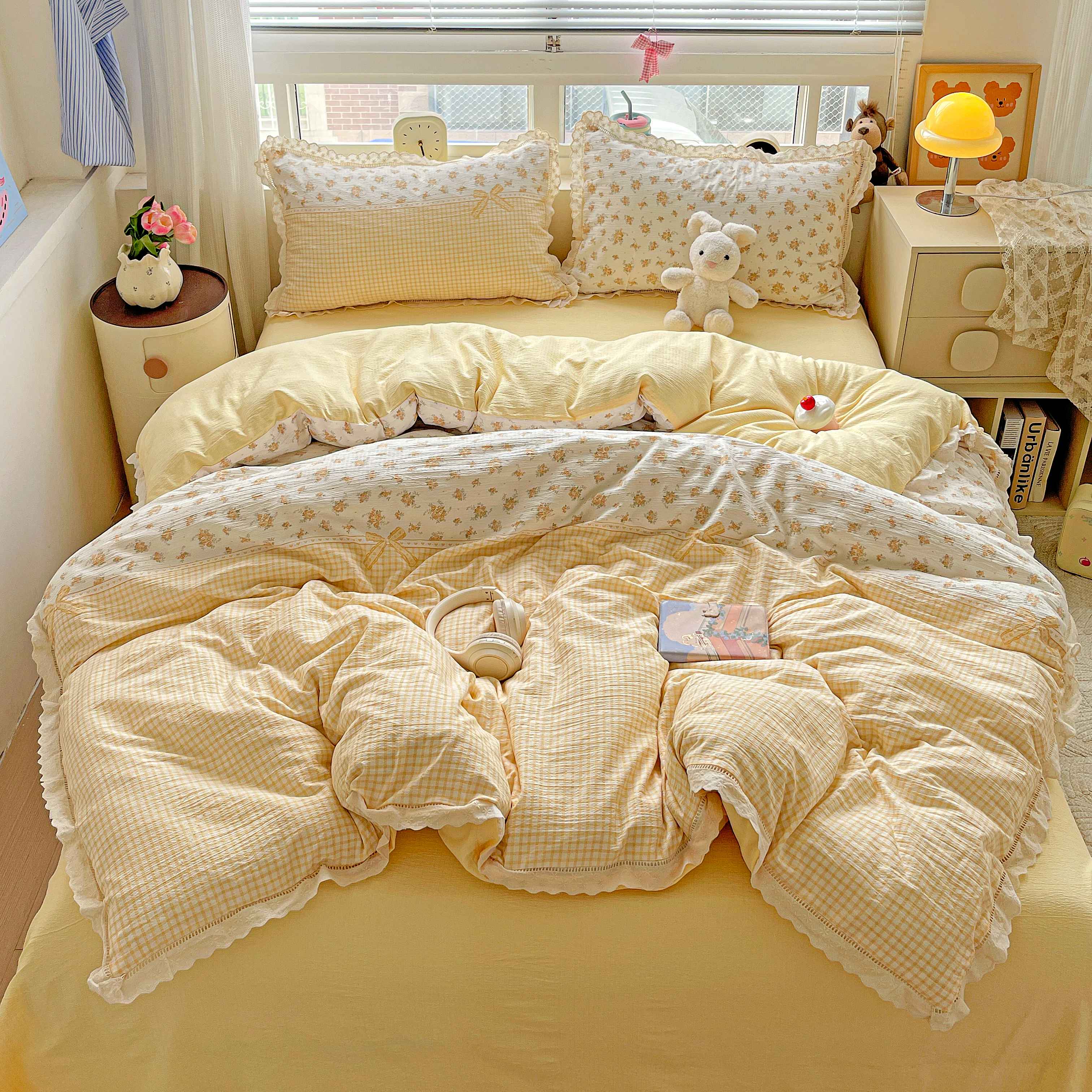 商品名称:典曼家纺 2025新款云感皱皱双层纱花边四件套 薄荷微凉