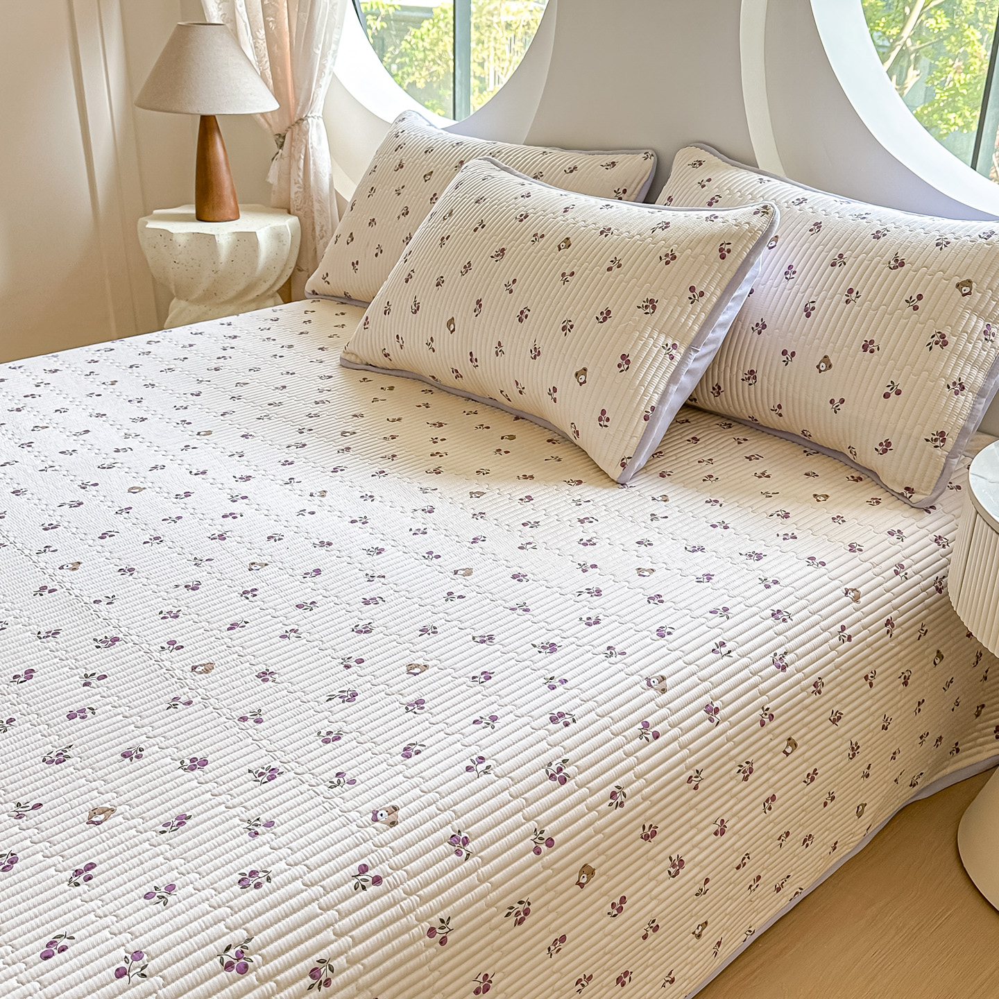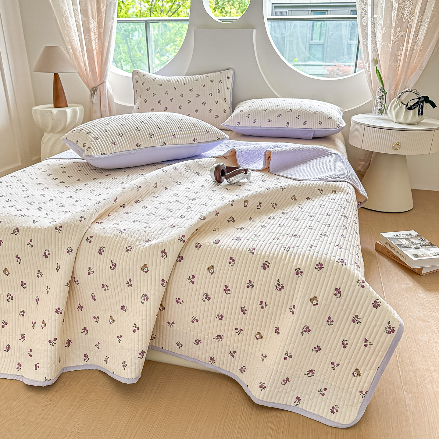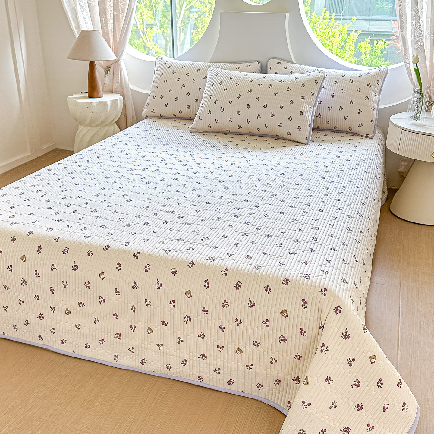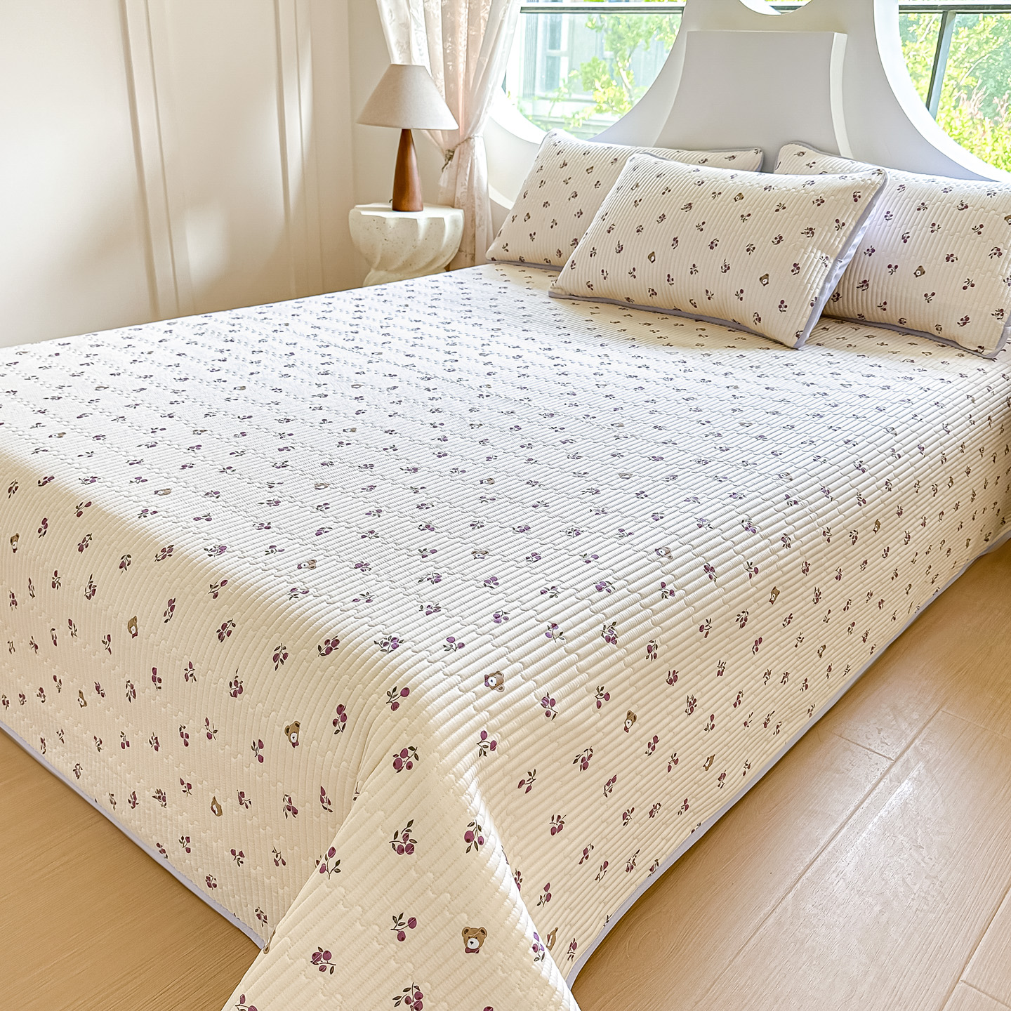 橘夏家纺 2025新款全棉床盖三件套 樱桃小熊