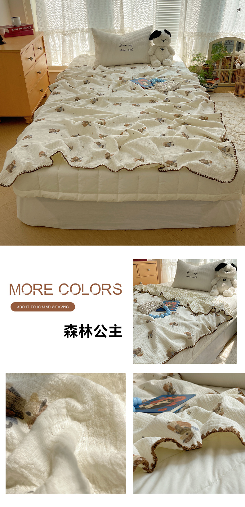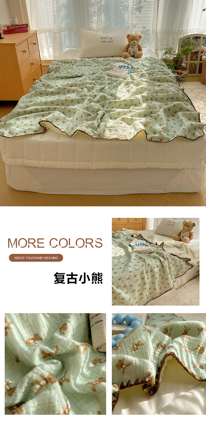 商品名称:三朵家纺 2025新款全棉纯棉绉绉纱+宝宝绒多功能毯盖毯毯子 开心花园