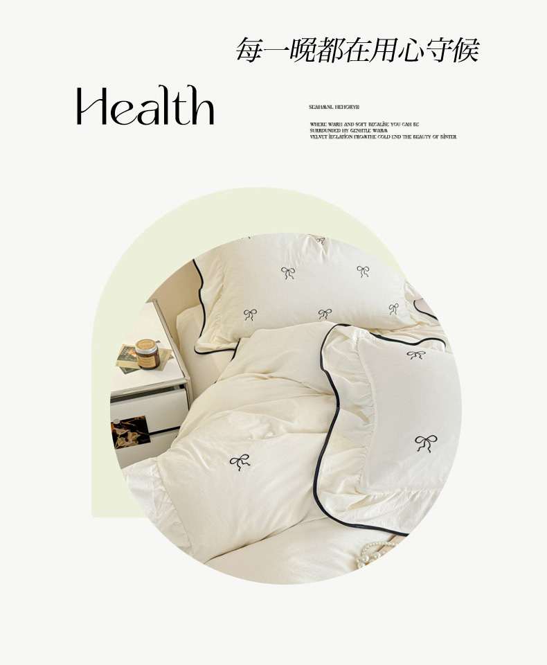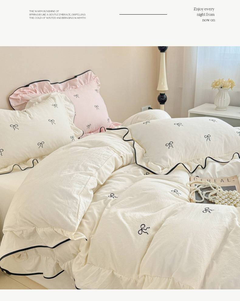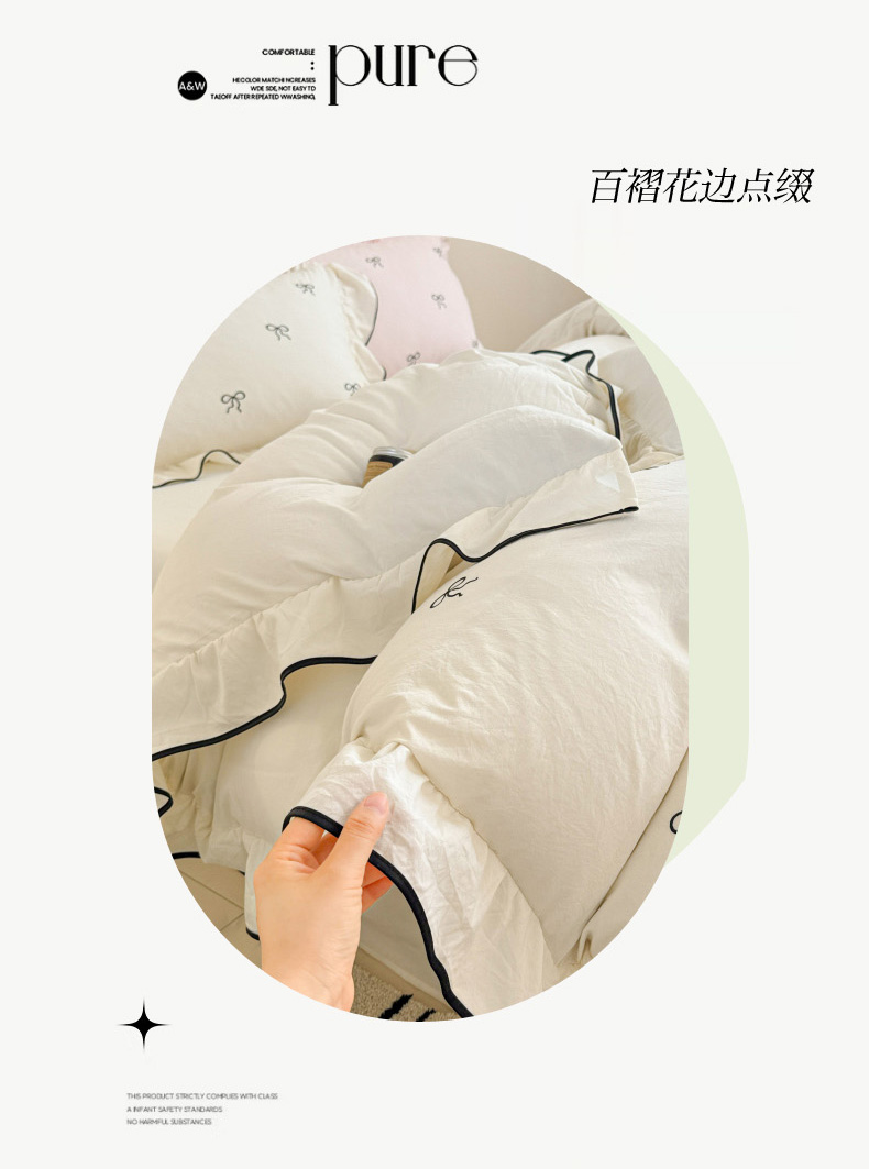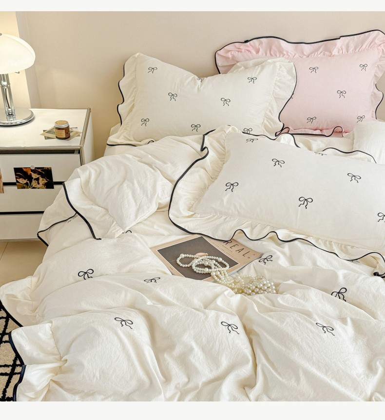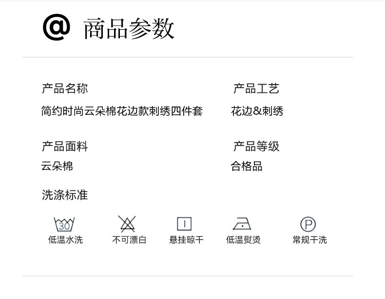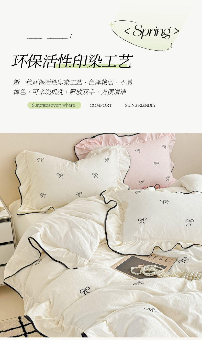 当前位置: 91家纺网 > 商品网购 > 床品套件 > 四件套 > 其它四件套 > 米可 2025新款云朵棉刺绣花边款四件套 心动-白