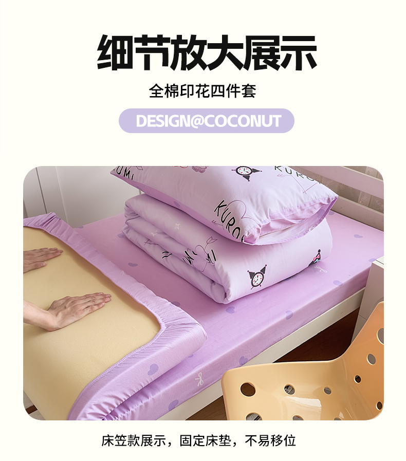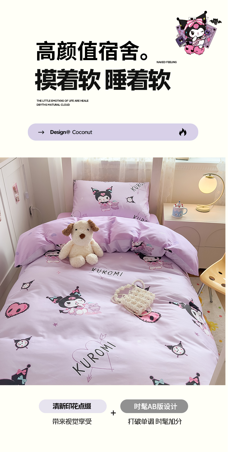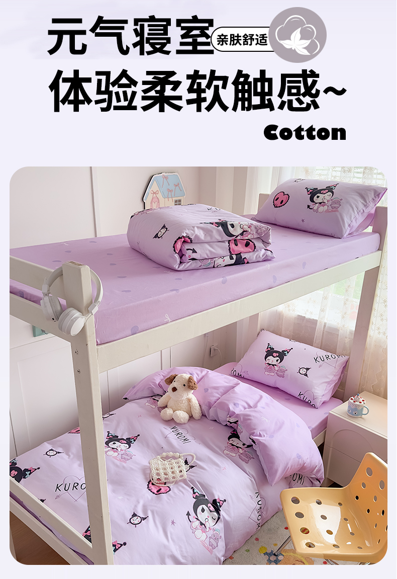 当前位置: 91家纺网 > 商品网购 > 床品套件 > 四件套 > 全棉普通四件套 > 浩诚 2025新款三丽鸥专版花型全棉纯棉学生三件套四件套 甜语