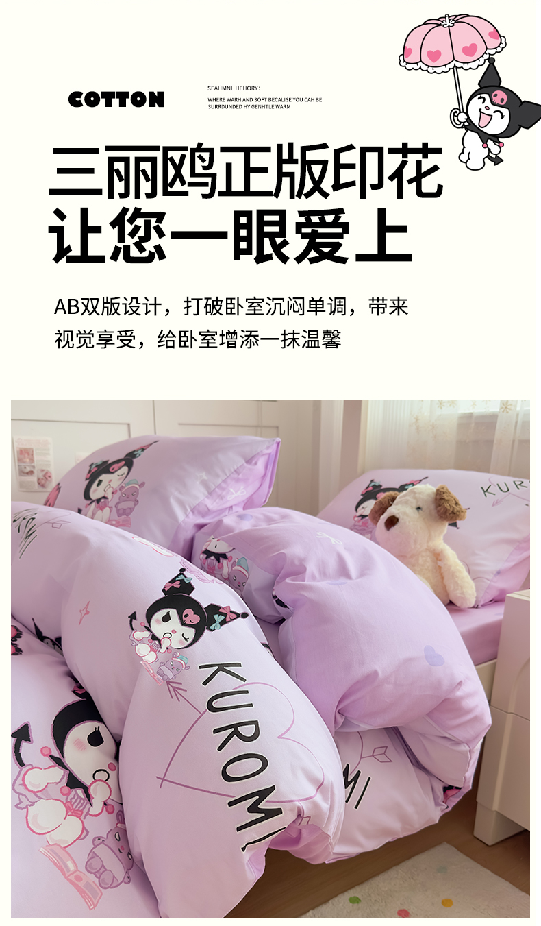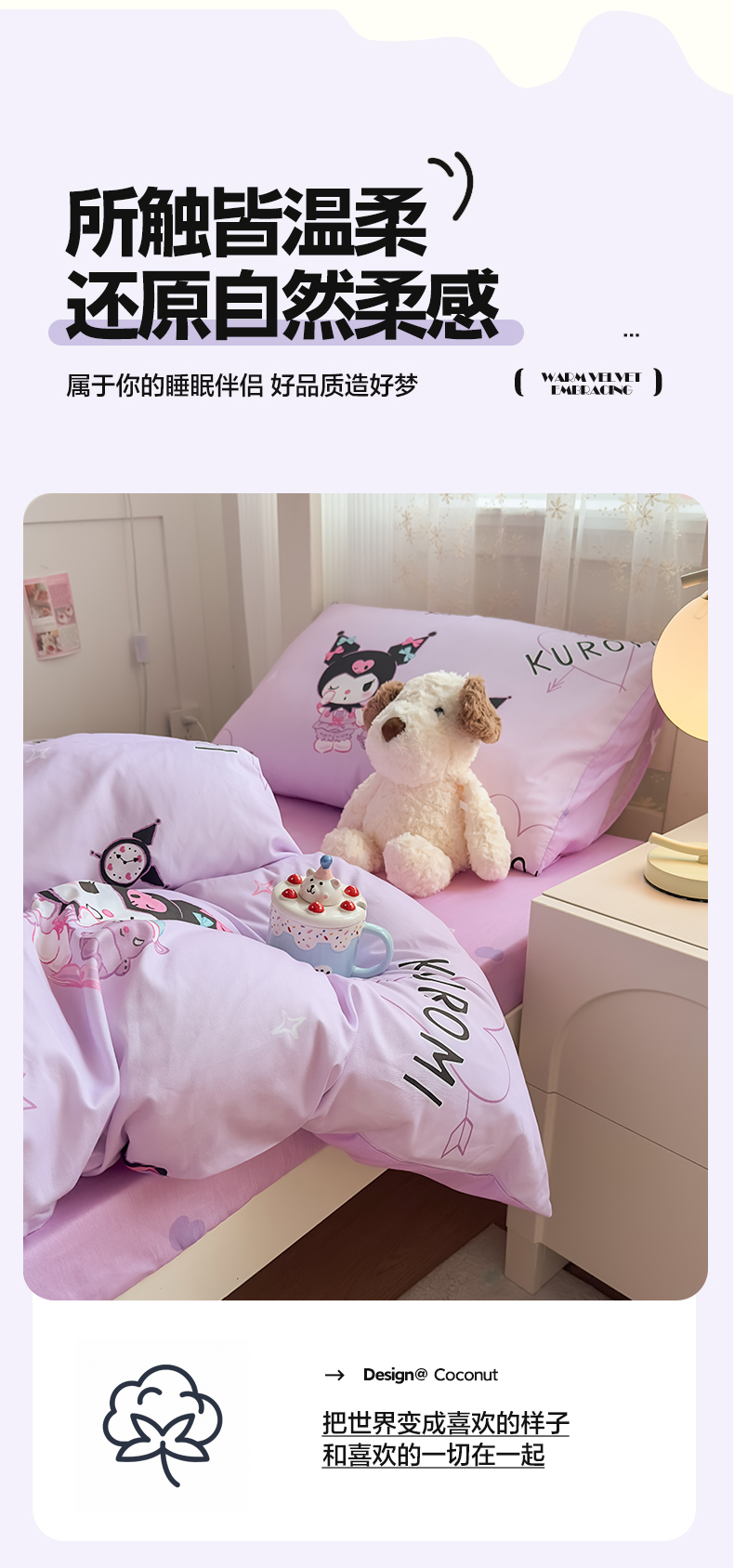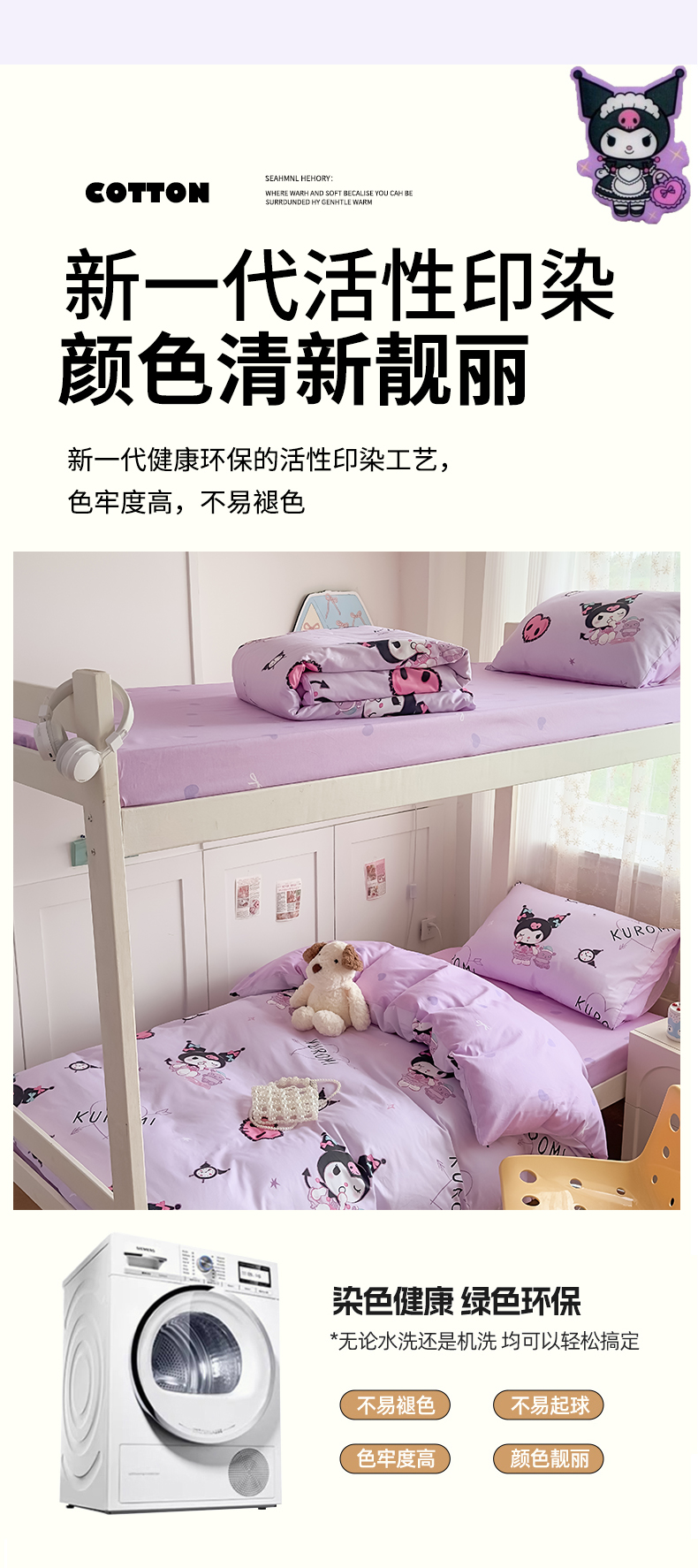 当前位置: 91家纺网 > 商品网购 > 床品套件 > 四件套 > 全棉普通四件套 > 浩诚 2025新款三丽鸥专版花型全棉纯棉学生三件套四件套 甜语