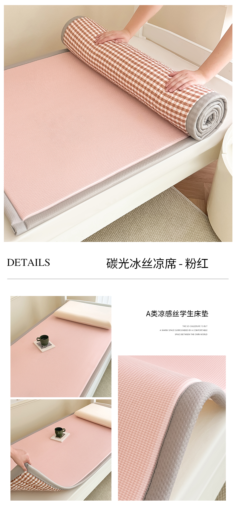 商品名称:卡罗兰 2025新款碳光冰丝按摩学生床垫床褥 双面 四季通用 嫩粉