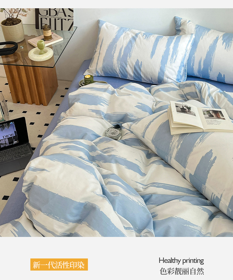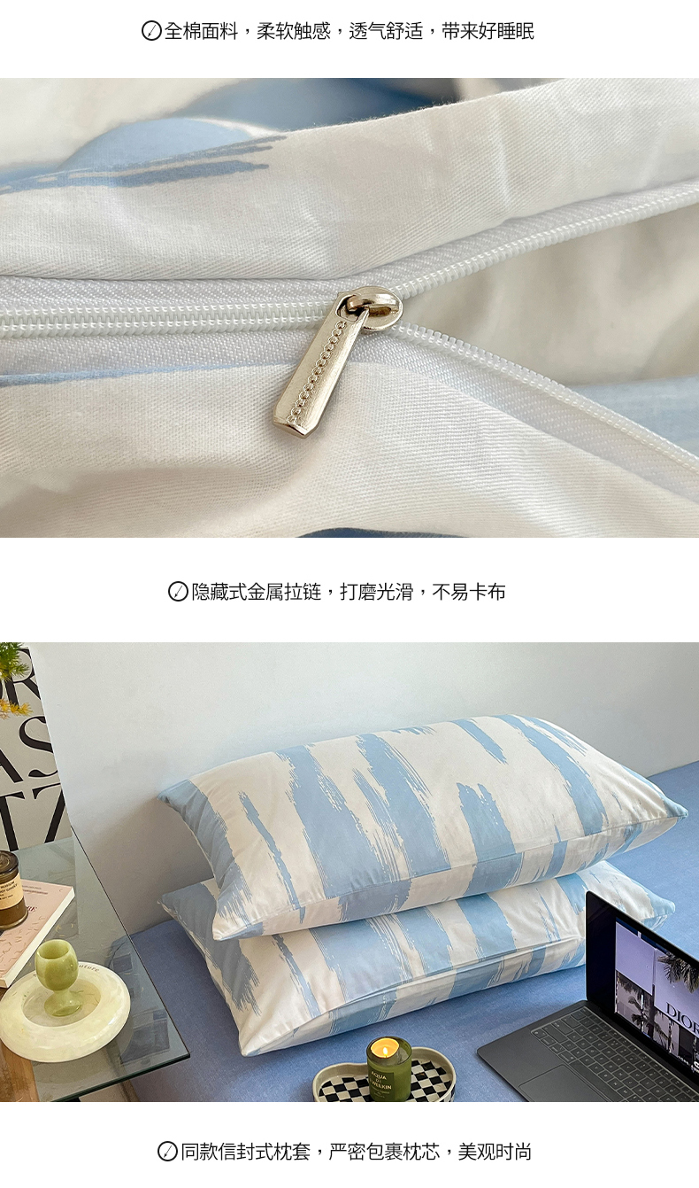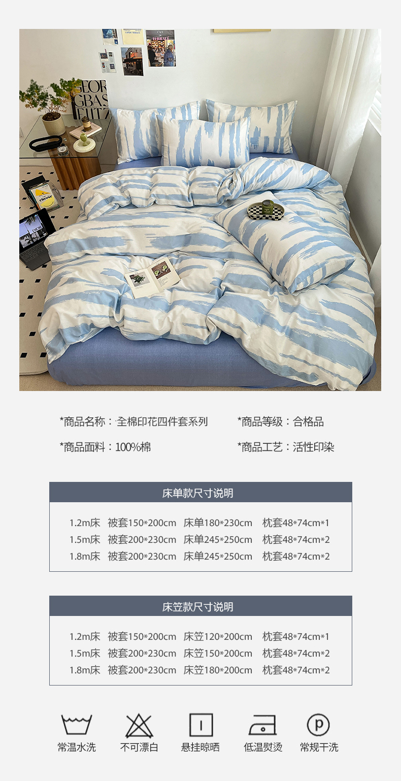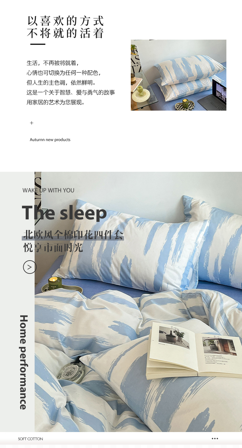 当前位置: 91家纺网 > 商品网购 > 床品套件 > 四件套 > 全棉普通四件套 > 吉象家纺 2025新款全棉纯棉印花北欧简约系列四件套 文艺蓝