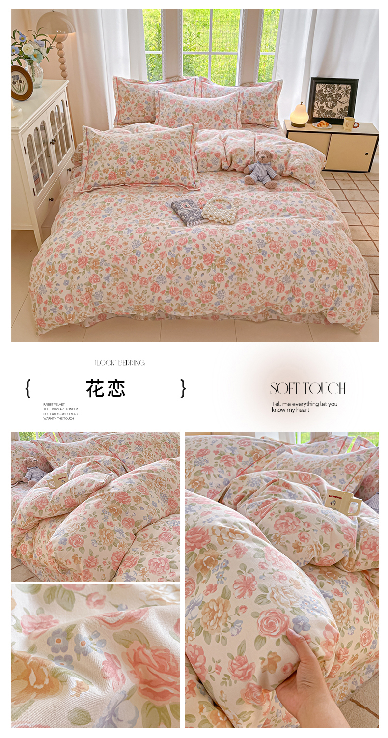 当前位置: 91家纺网 > 商品网购 > 床品套件 > 四件套 > 普通磨毛四件套 > 莱通家纺 2025新款新疆棉加厚生态磨毛印花四件套 花恋