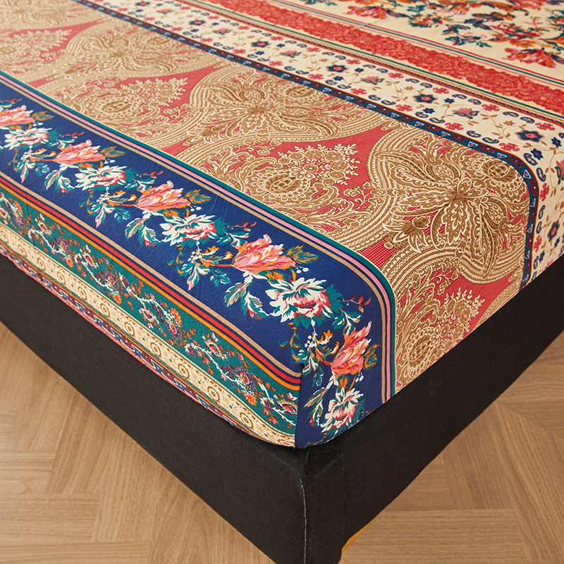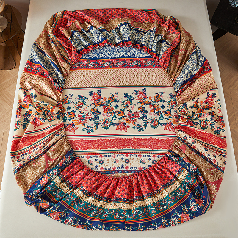 (总)艾裙海2025新款印花床笠三件套 -可跨境,斑马豹纹,波西米亚,春园花海,蝶舞葵花,国色牡丹,牡丹花开