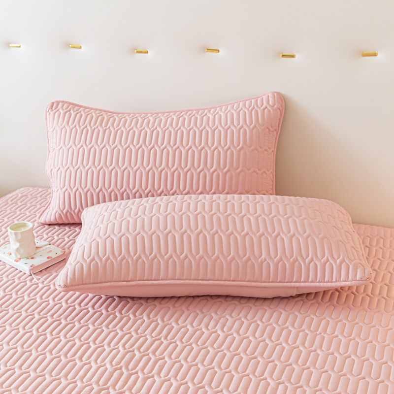 商品名称:卡伦家纺 2025新款四季款夹棉绗绣纯色枕套枕芯 几何灰