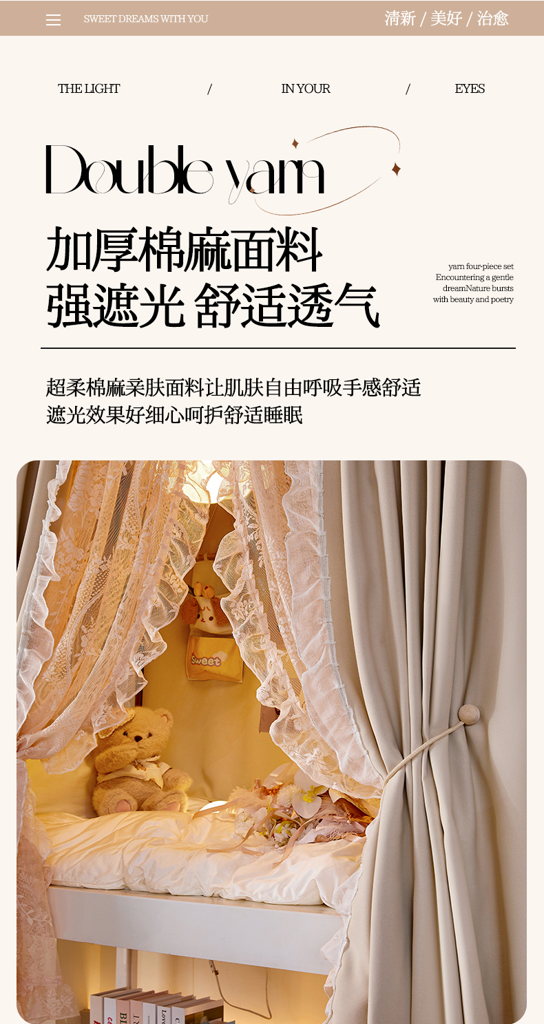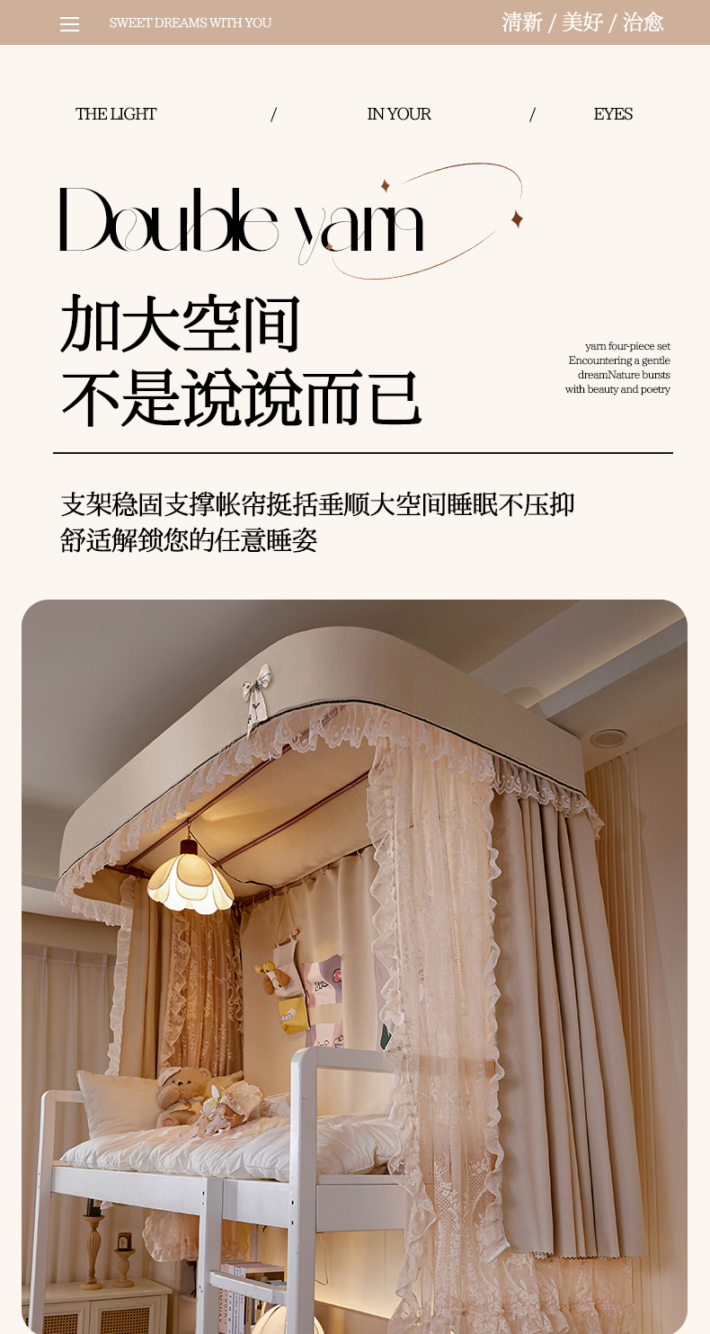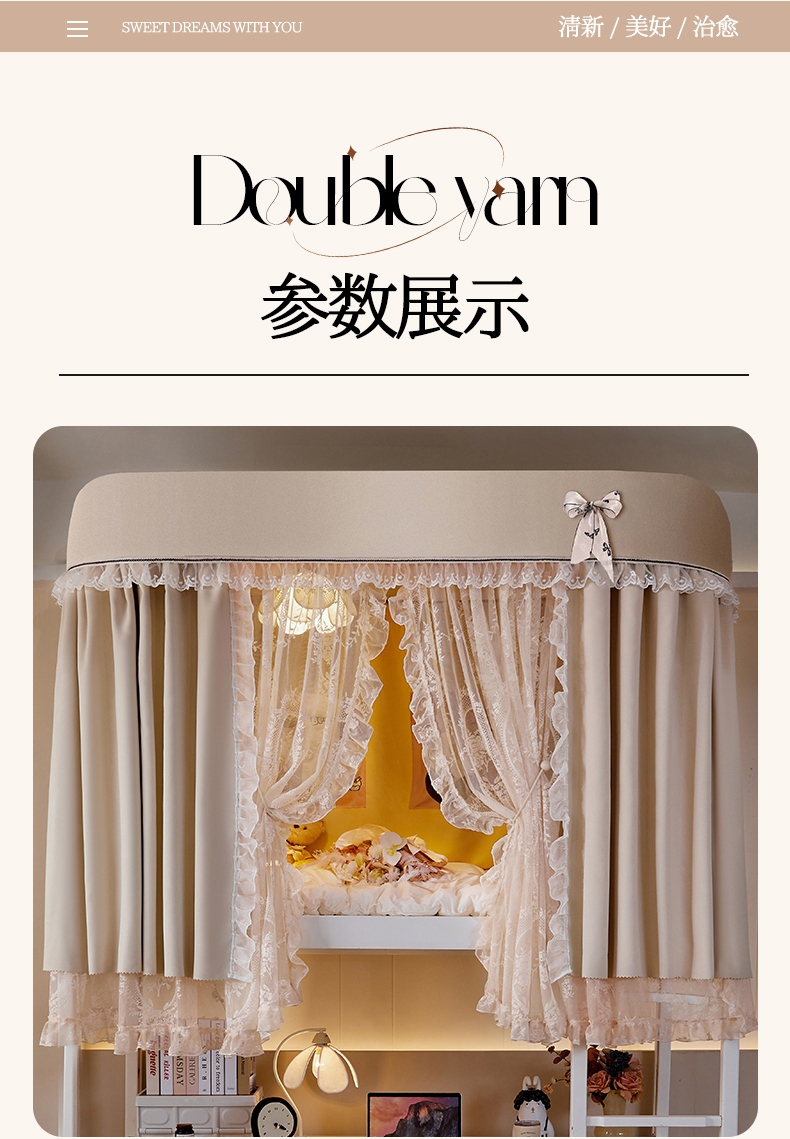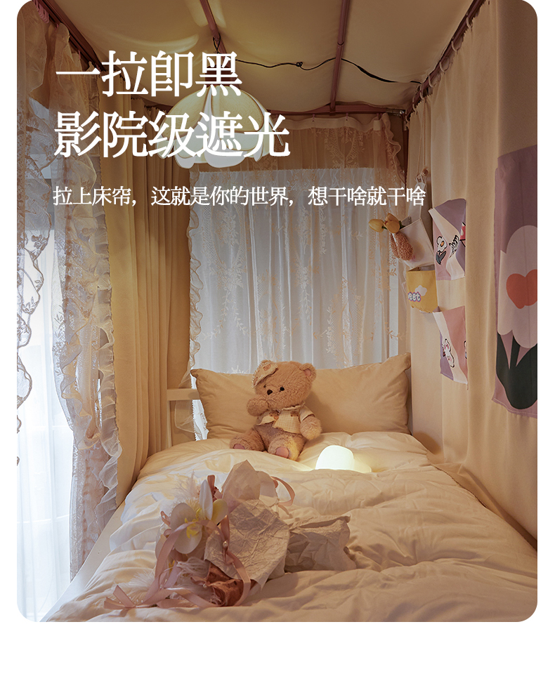当前位置: 91家纺网 > 商品网购 > 床上用品 > 蚊帐 > 学生蚊帐 > 夏彩 2025新款学生新款雪纺蕾丝强遮光可升降U型轨道蚊帐 悦色